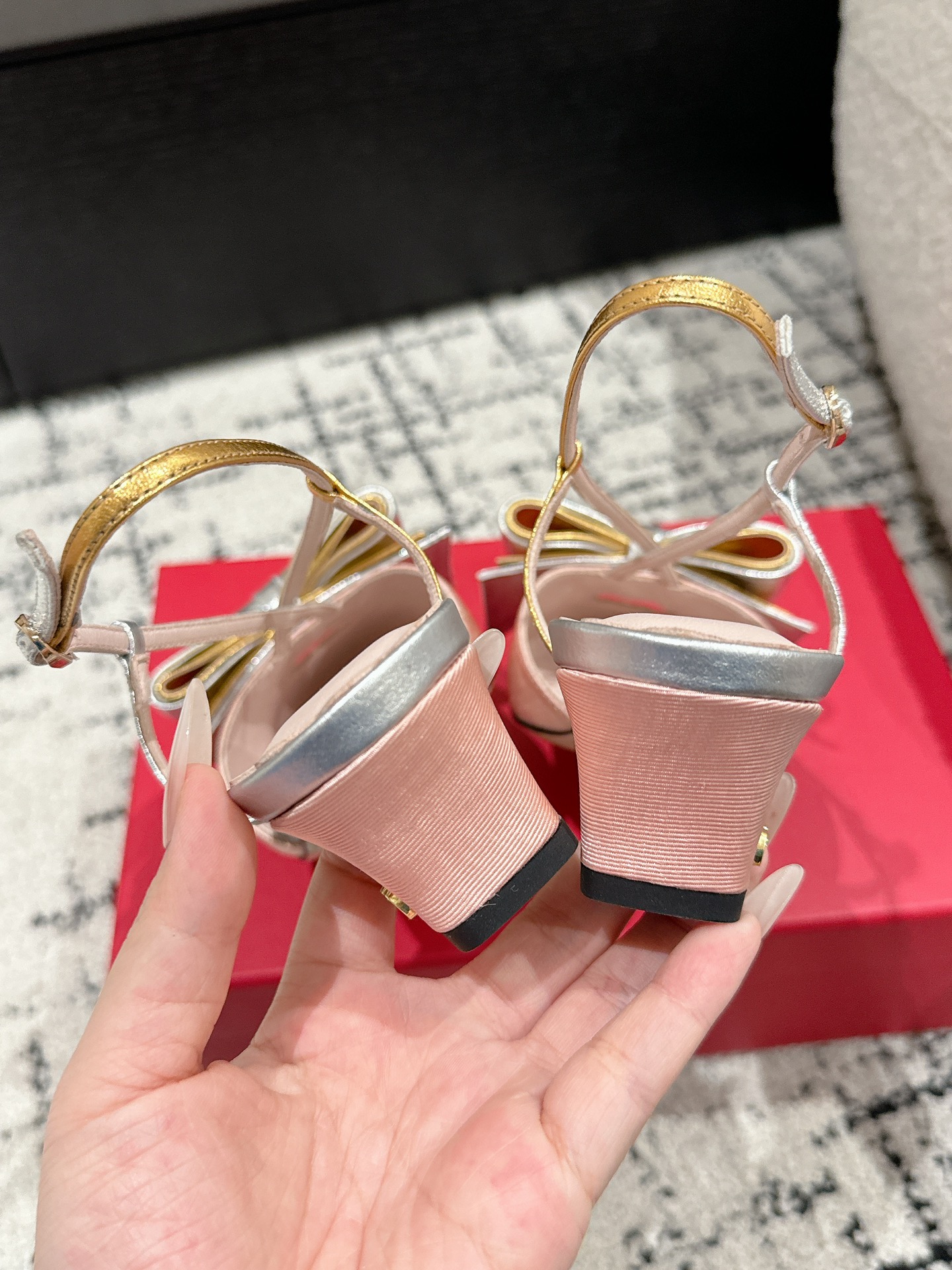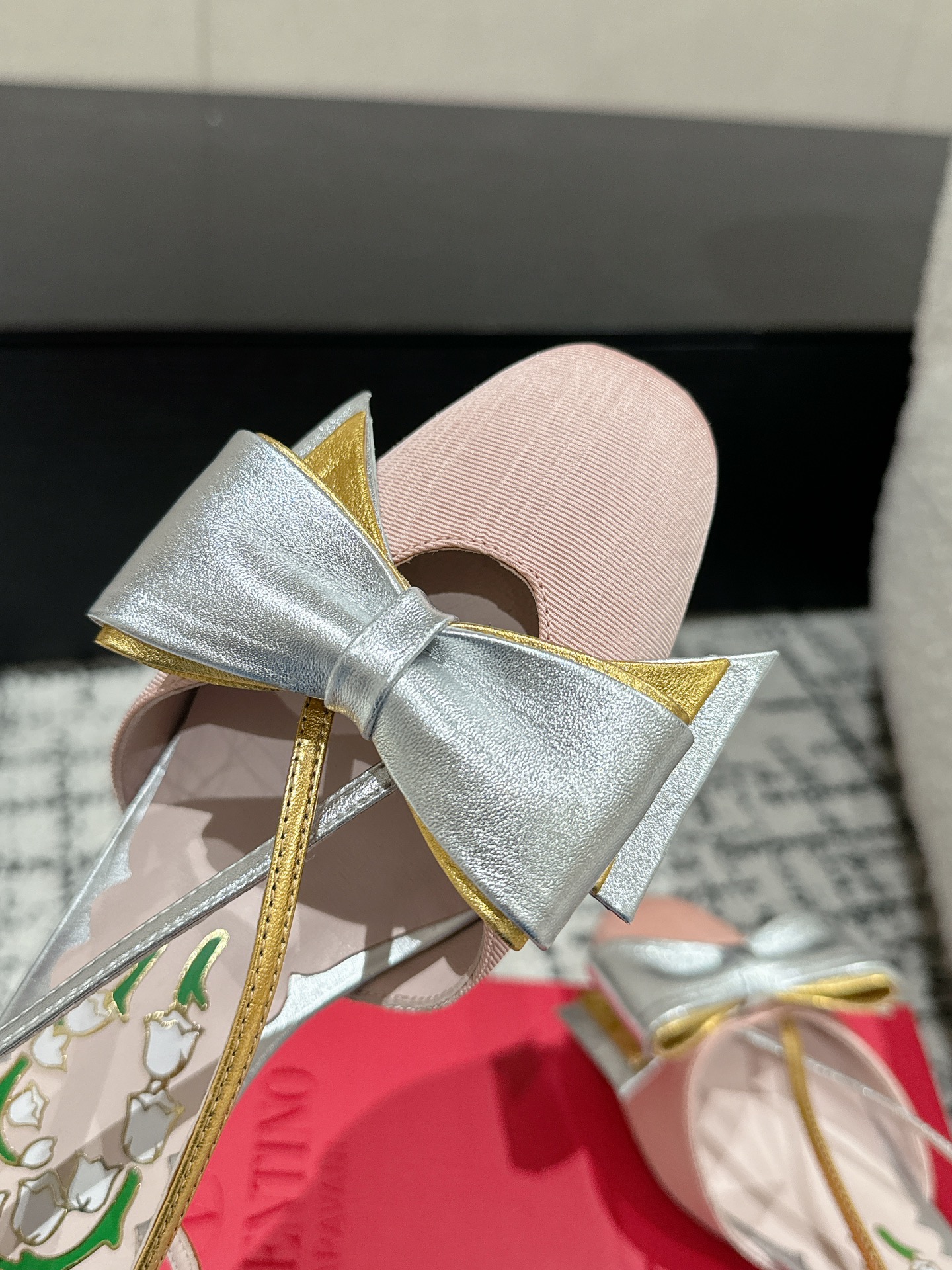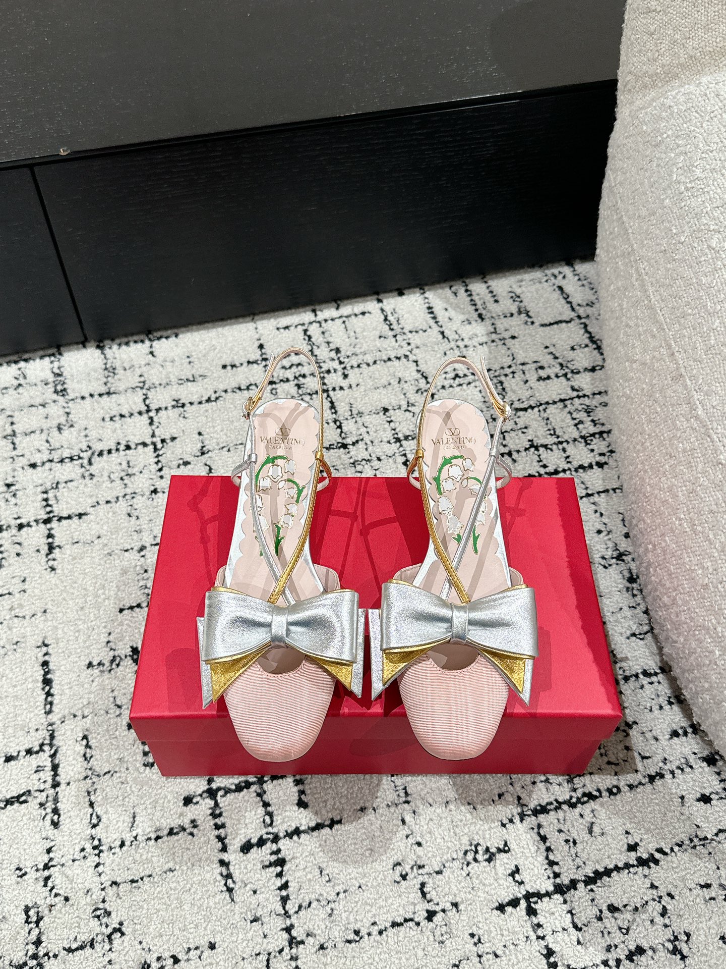 这款鞋子是AAAAA 1:1 质量 (非常棒). 使用了和原版一模一样的材料. 商标部分也保持了和华伦天奴/Valentino一样. 图片拍摄是实物鞋子拍摄, 您所收到的实物保证和我们图片一模一样.