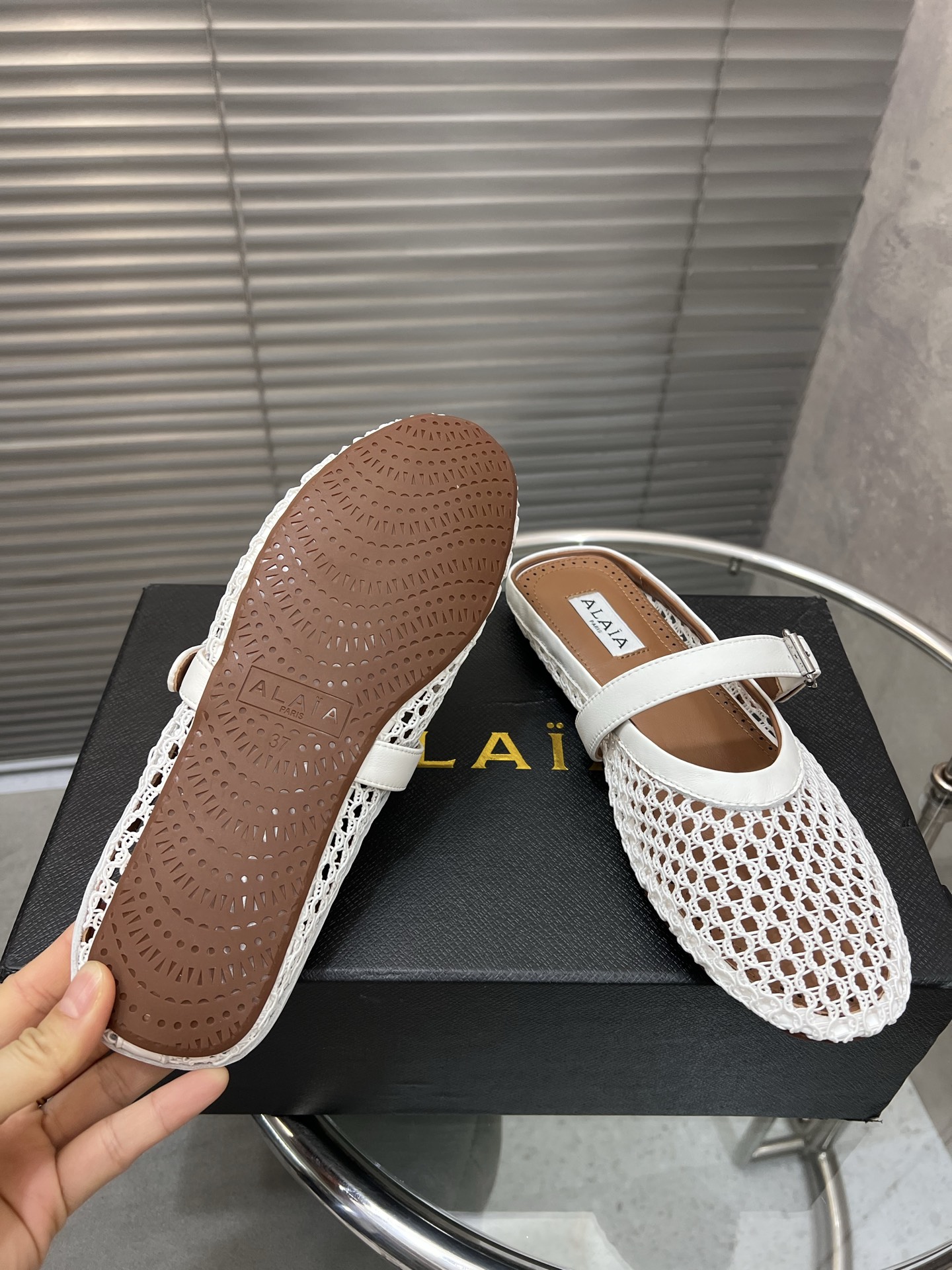 这款鞋子是AAAAA 1:1 质量 (非常棒). 使用了和原版一模一样的材料. 商标部分也保持了和Alaia一样. 图片拍摄是实物鞋子拍摄, 您所收到的实物保证和我们图片一模一样.