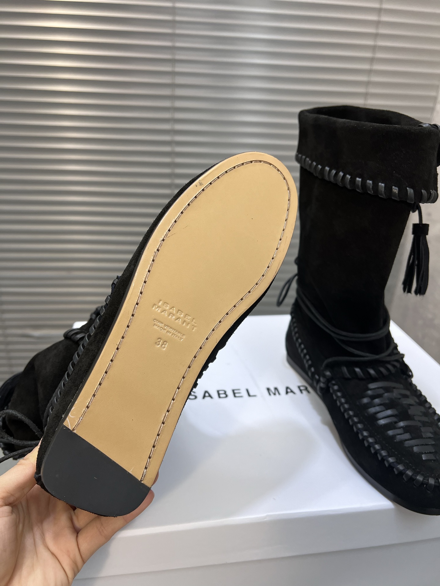 这款鞋子是AAAAA 1:1 质量 (非常棒). 使用了和原版一模一样的材料. 商标部分也保持了和伊莎贝尔·马兰特/Isabel Marant一样. 图片拍摄是实物鞋子拍摄, 您所收到的实物保证和我们图片一模一样.