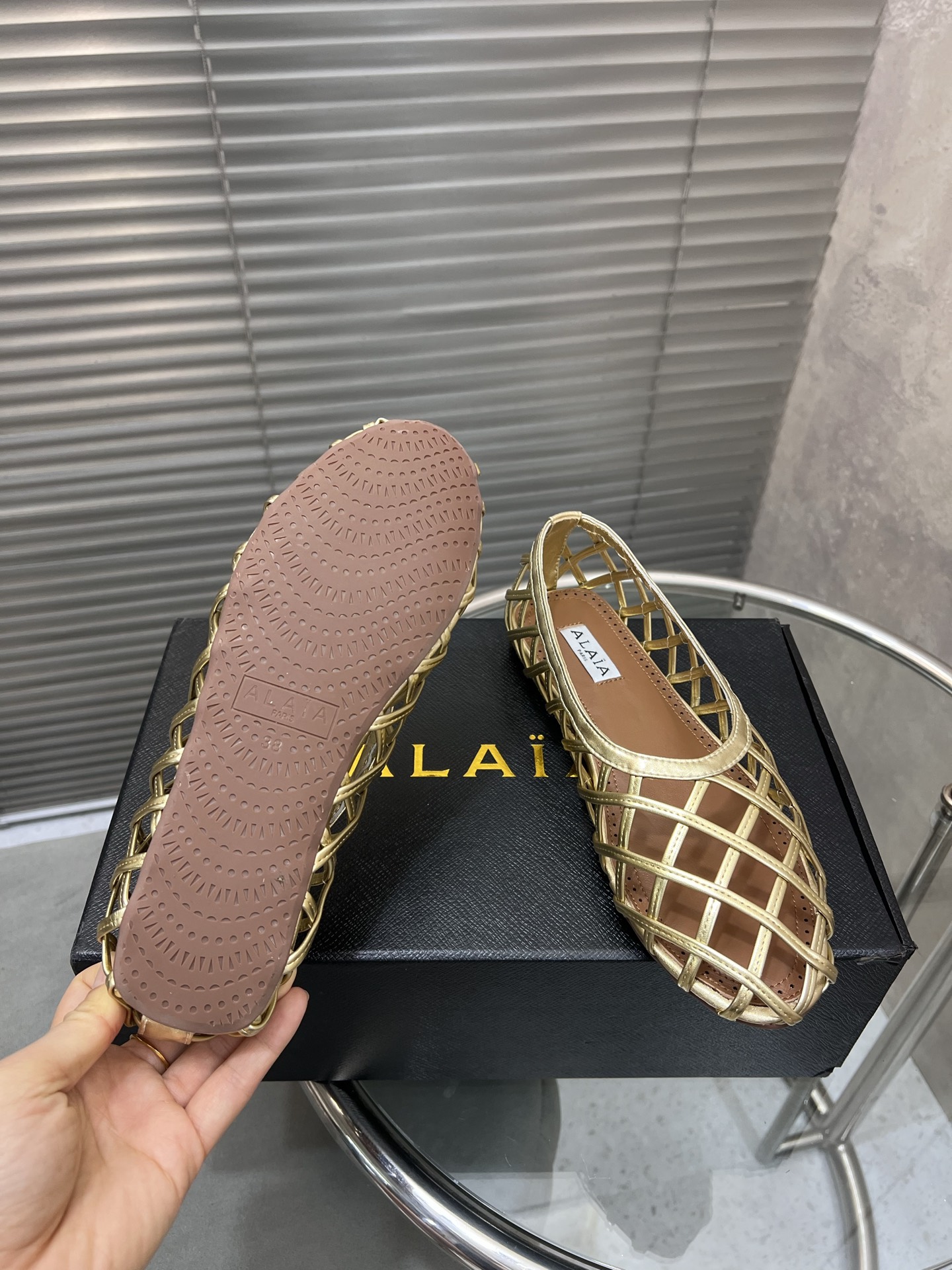 这款鞋子是AAAAA 1:1 质量 (非常棒). 使用了和原版一模一样的材料. 商标部分也保持了和Alaia一样. 图片拍摄是实物鞋子拍摄, 您所收到的实物保证和我们图片一模一样.