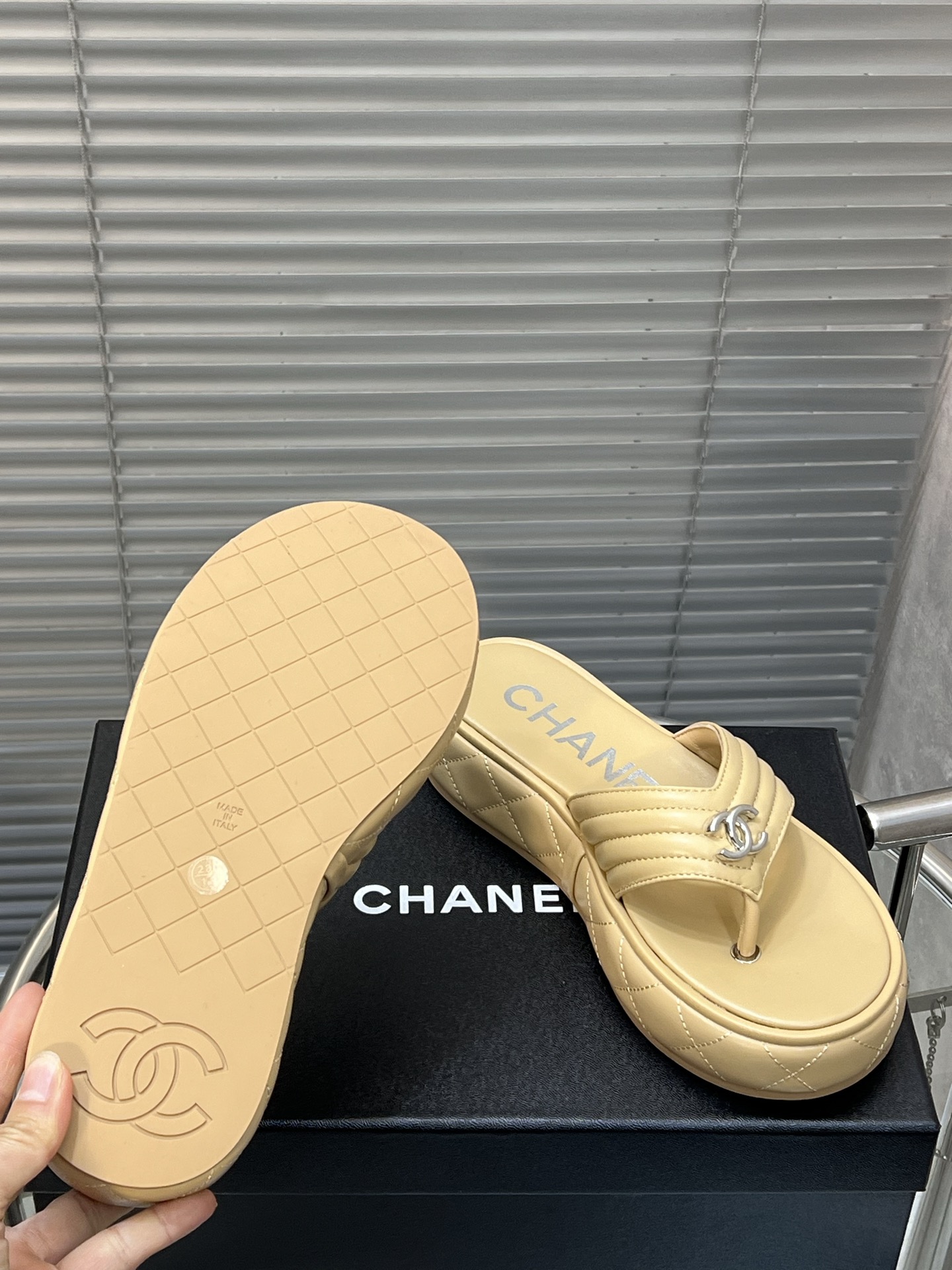 这款鞋子是AAAAA 1:1 质量 (非常棒). 使用了和原版一模一样的材料. 商标部分也保持了和香奈儿/Chanel一样. 图片拍摄是实物鞋子拍摄, 您所收到的实物保证和我们图片一模一样.