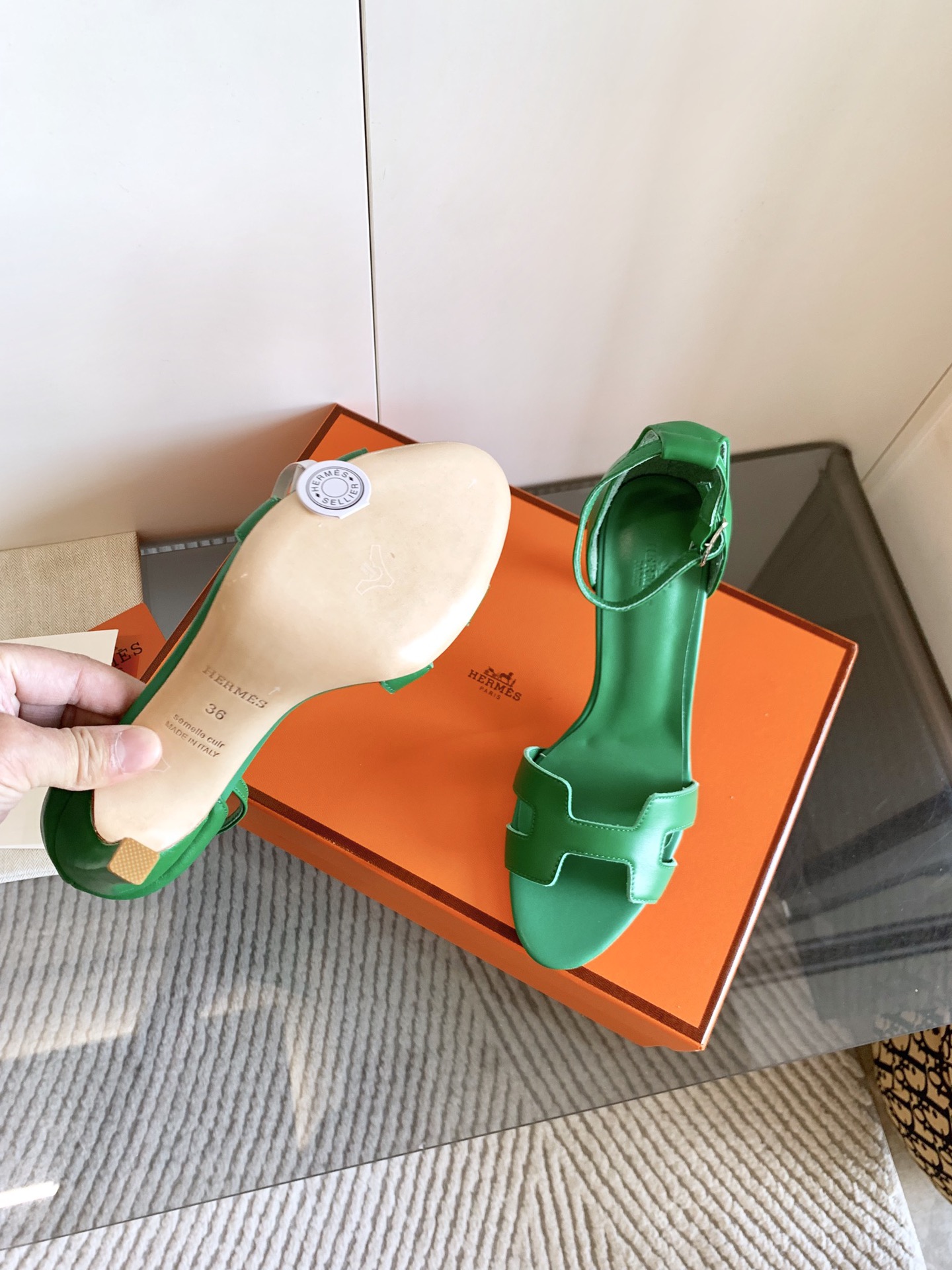 这款鞋子是AAAAA 1:1 质量 (非常棒). 使用了和原版一模一样的材料. 商标部分也保持了和爱马仕/Hermes一样. 图片拍摄是实物鞋子拍摄, 您所收到的实物保证和我们图片一模一样.