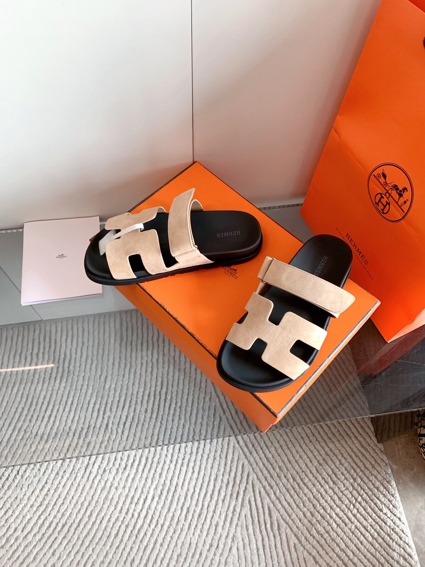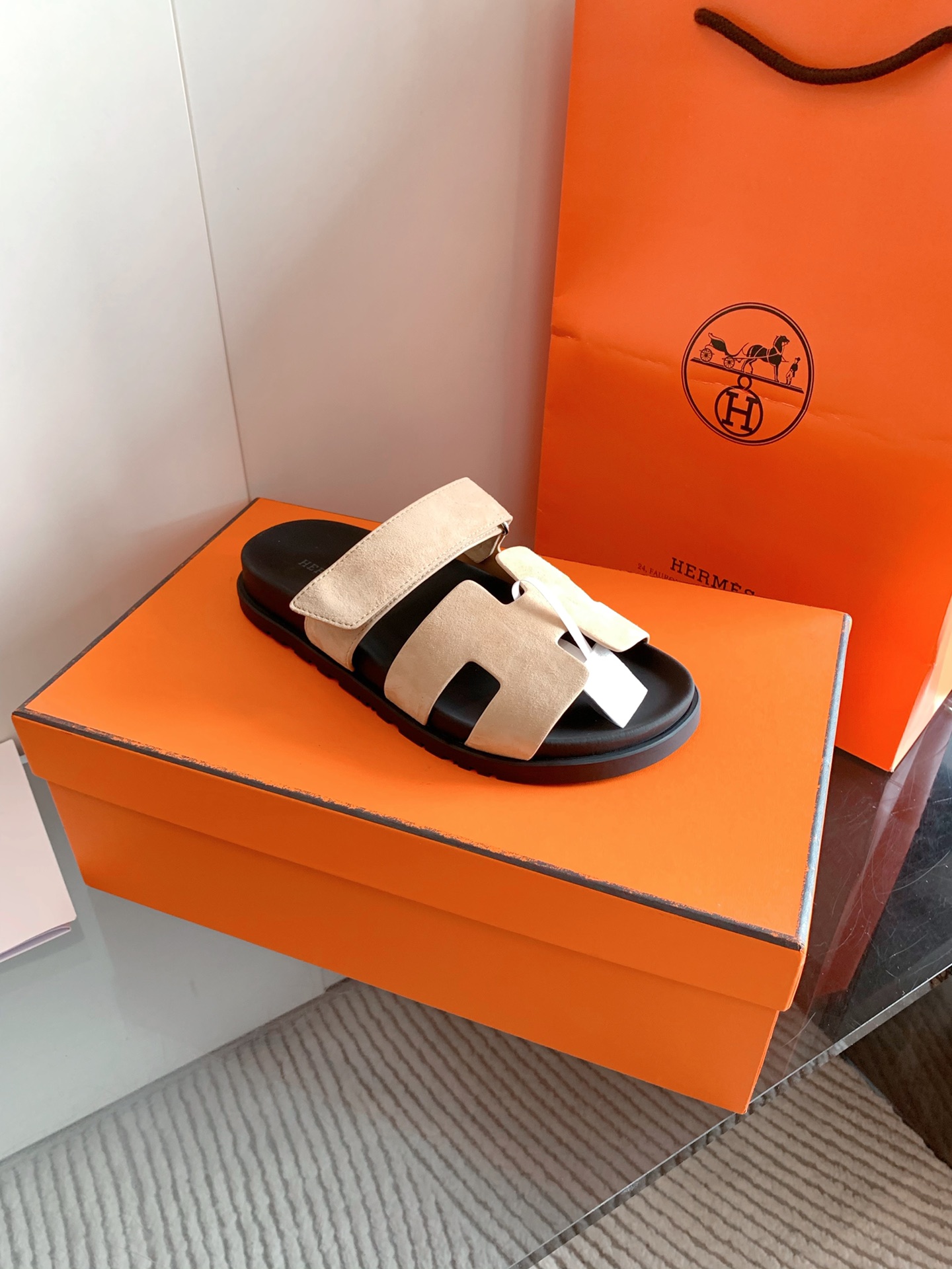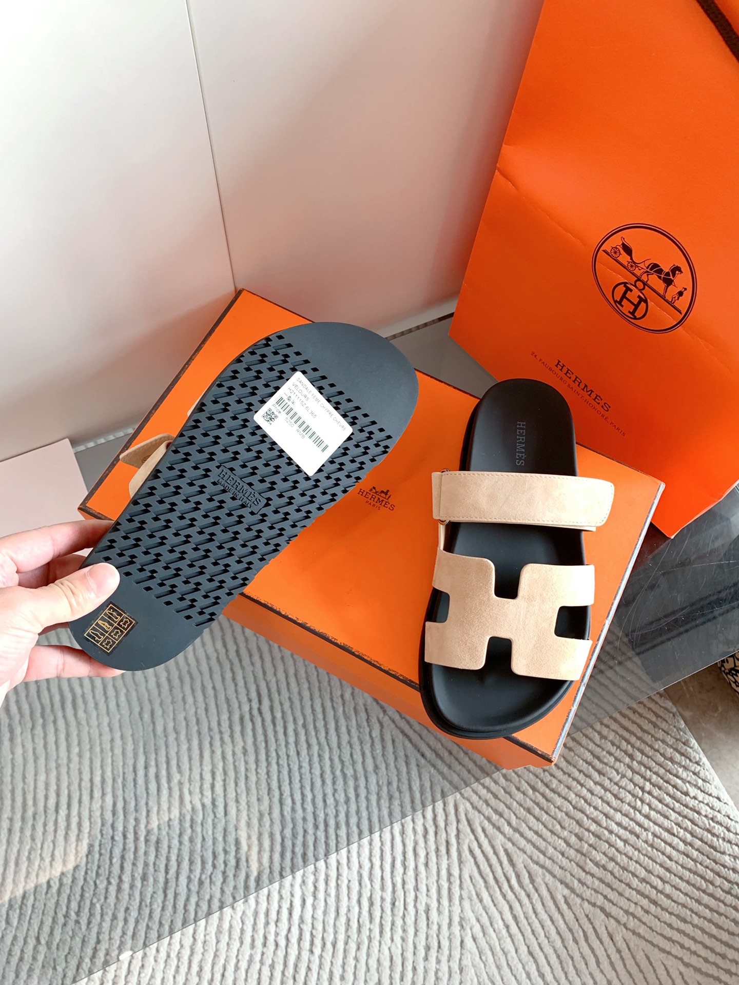 这款鞋子是AAAAA 1:1 质量 (非常棒). 使用了和原版一模一样的材料. 商标部分也保持了和爱马仕/Hermes一样. 图片拍摄是实物鞋子拍摄, 您所收到的实物保证和我们图片一模一样.