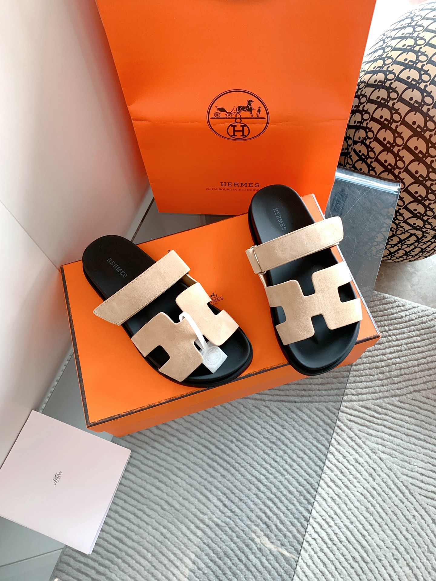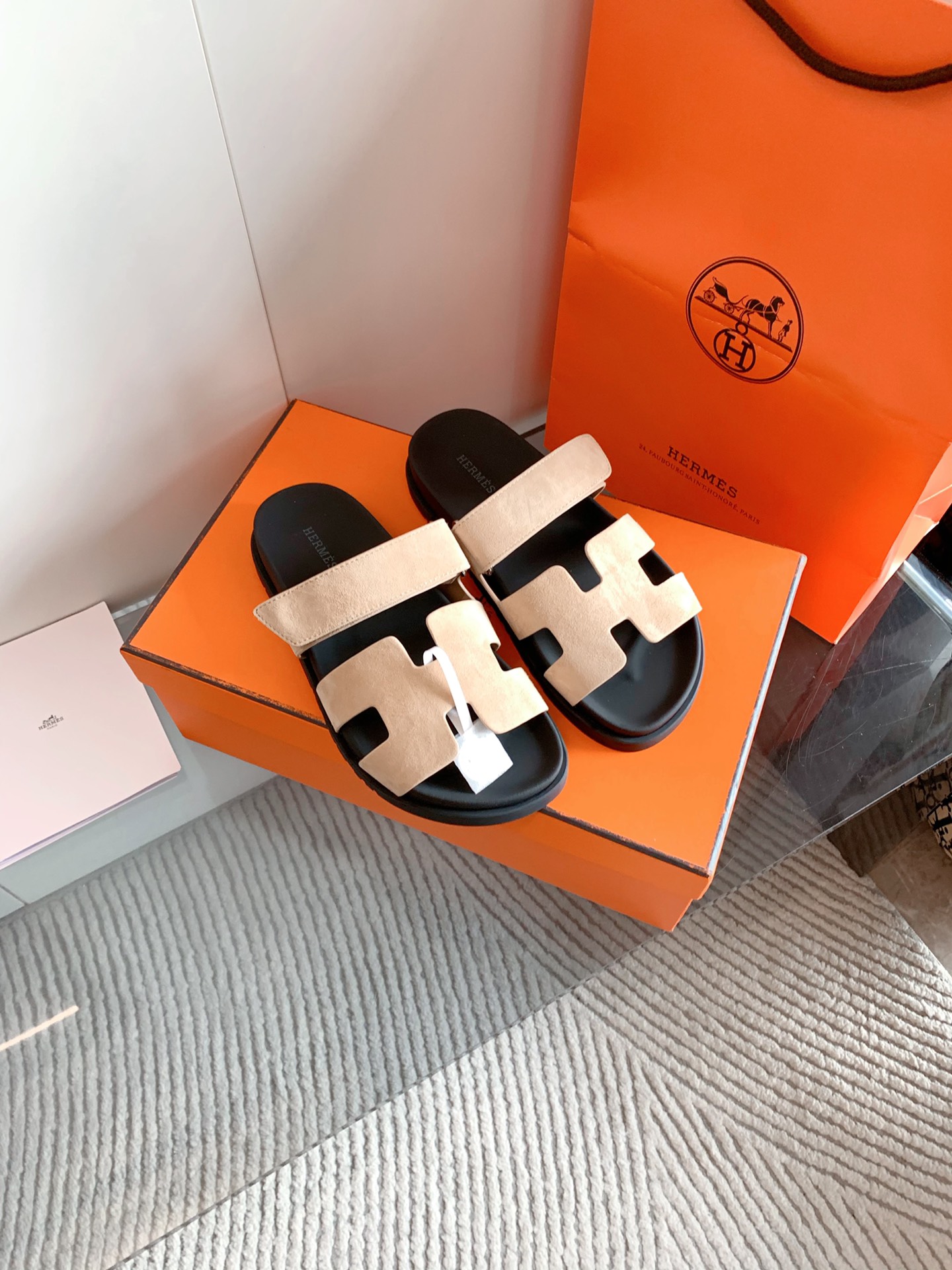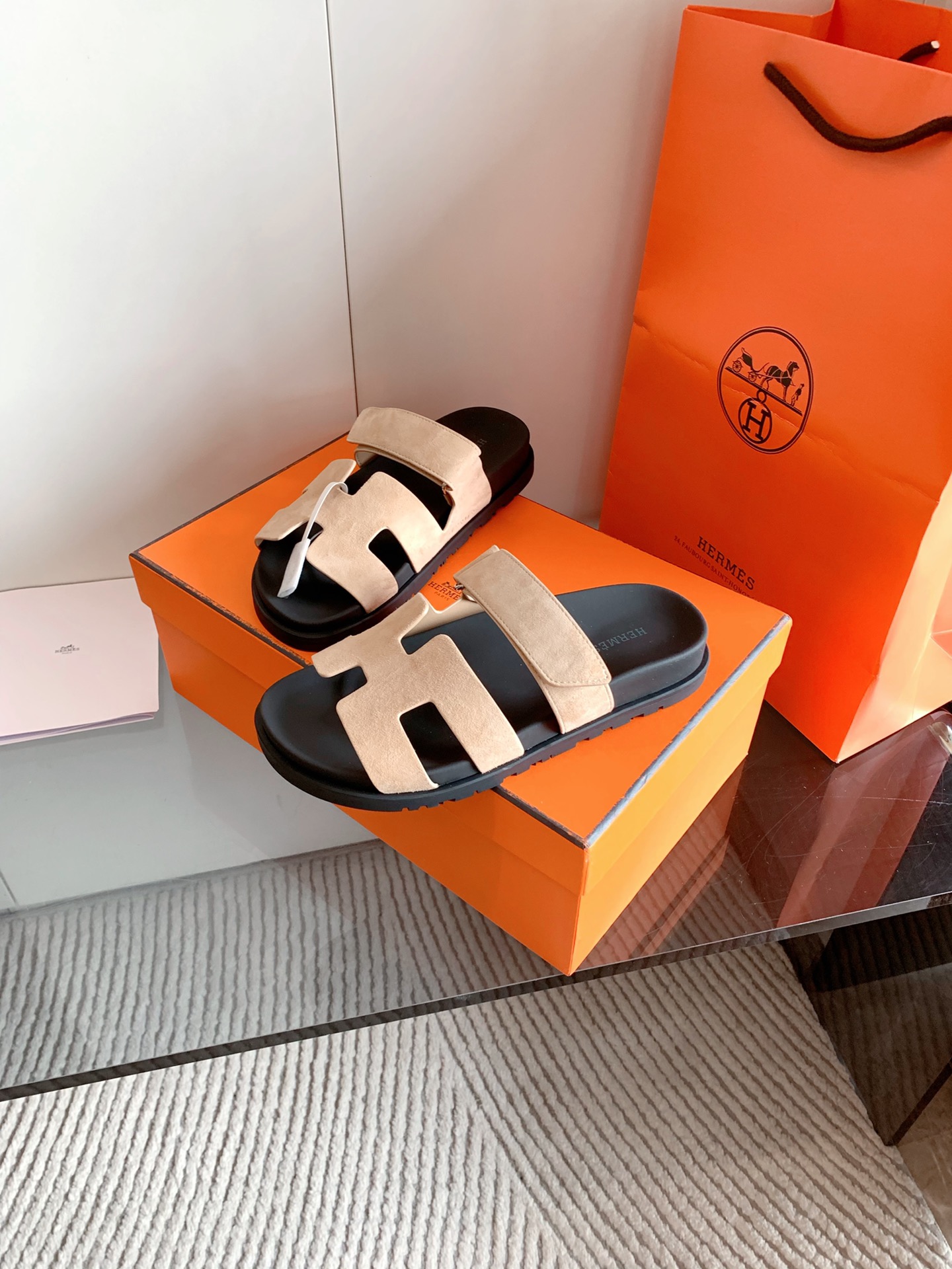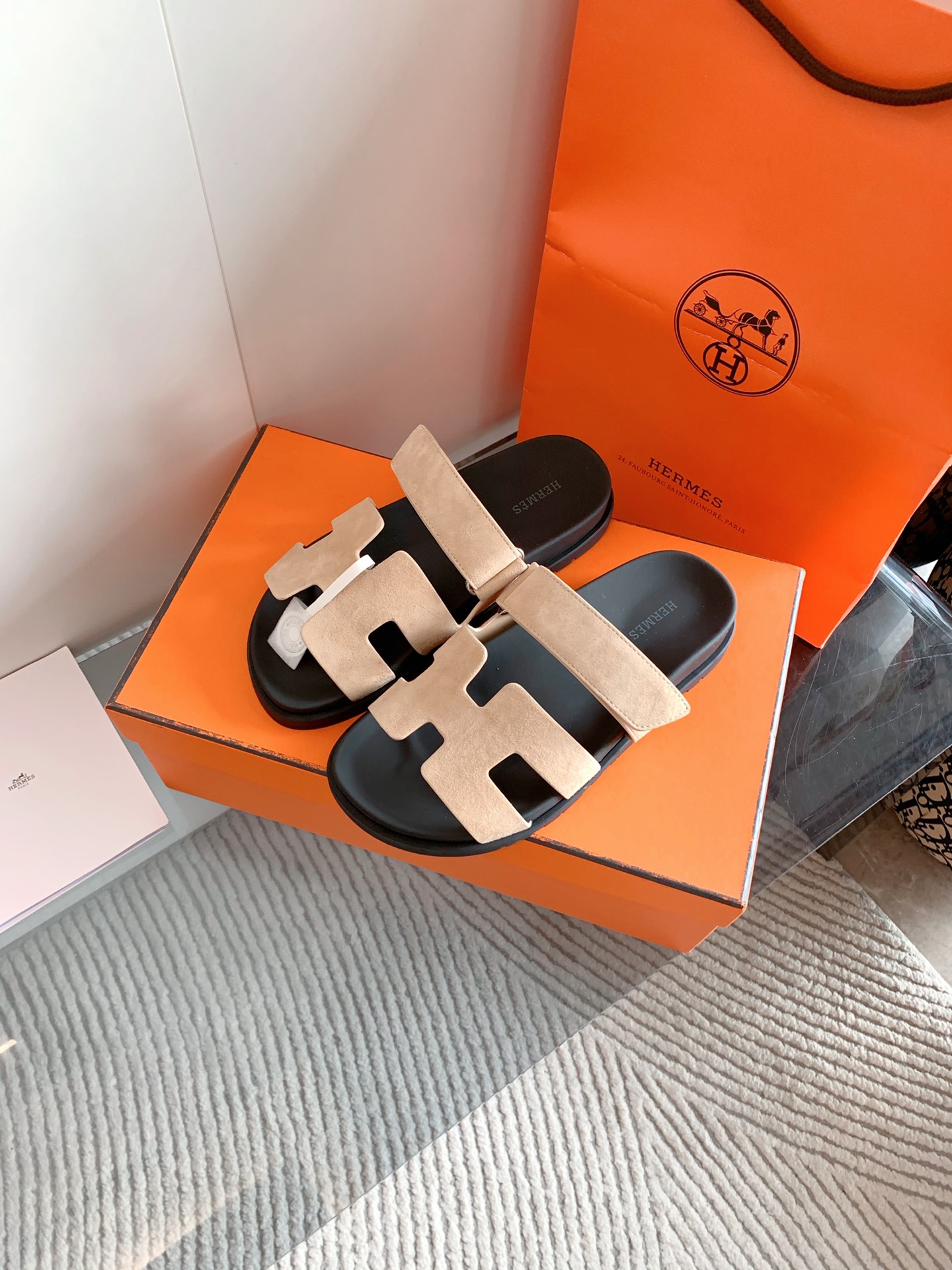 这款鞋子是AAAAA 1:1 质量 (非常棒). 使用了和原版一模一样的材料. 商标部分也保持了和爱马仕/Hermes一样. 图片拍摄是实物鞋子拍摄, 您所收到的实物保证和我们图片一模一样.