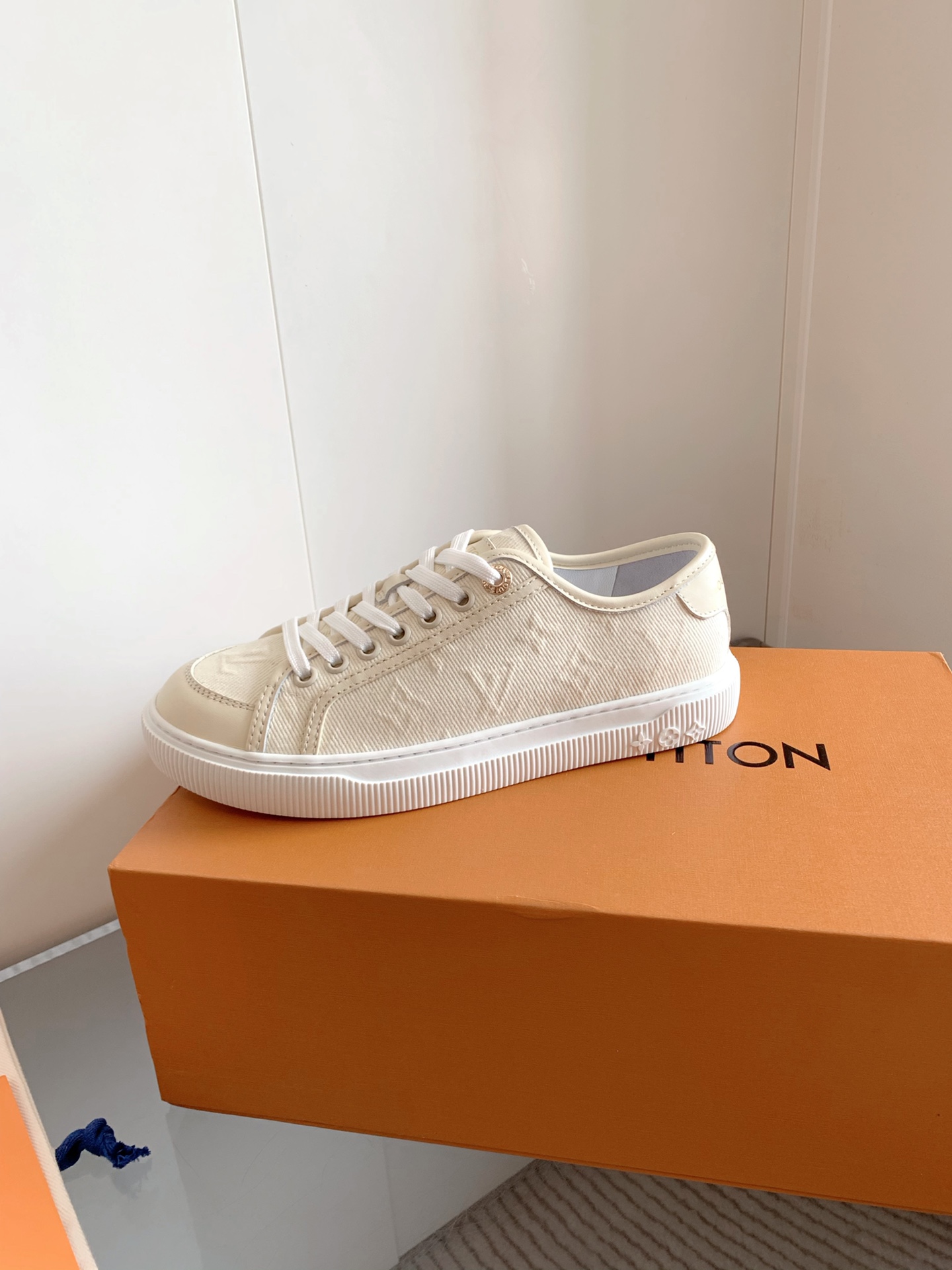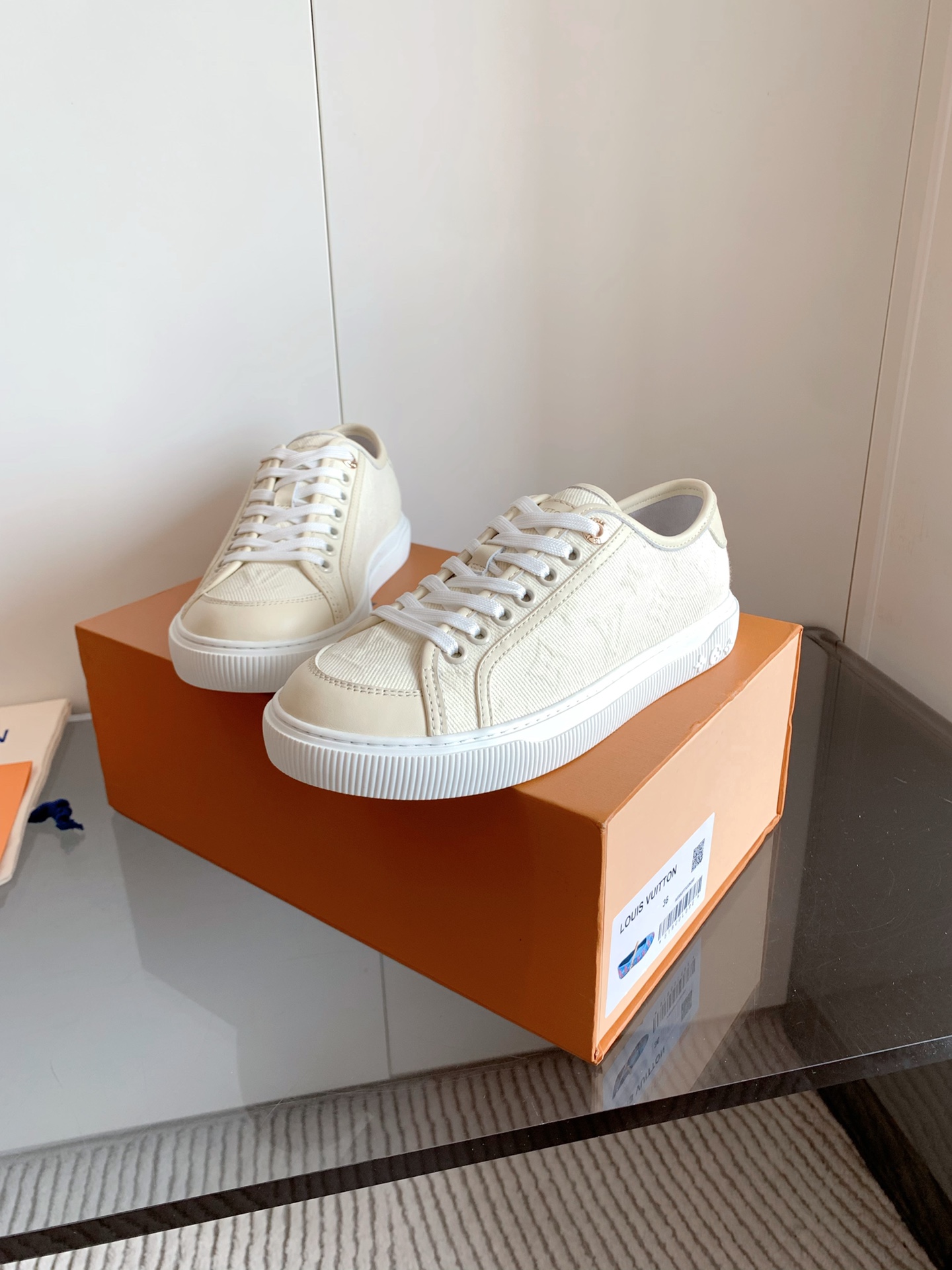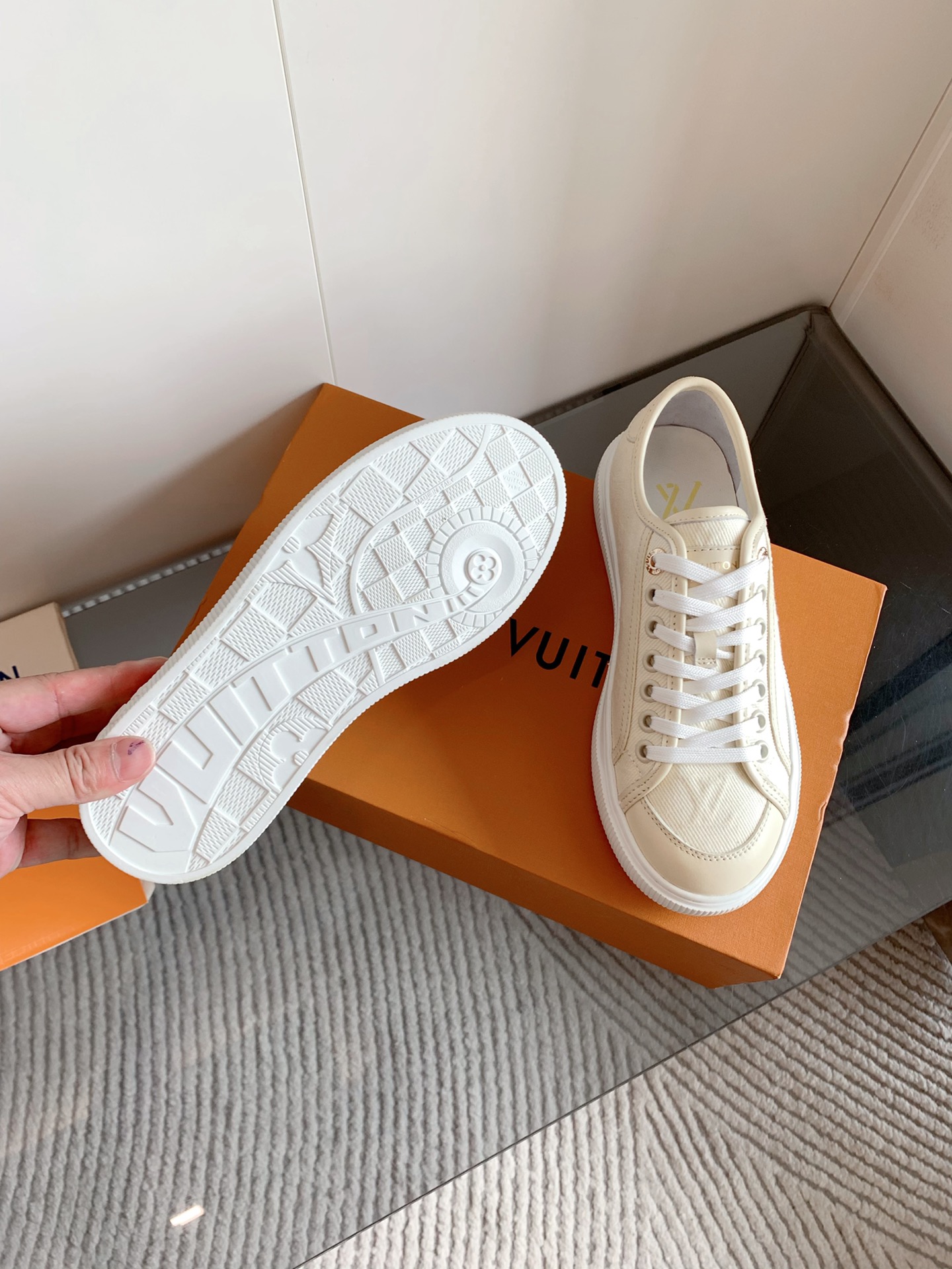 这款鞋子是AAAAA 1:1 质量 (非常棒). 使用了和原版一模一样的材料. 商标部分也保持了和路易威登/Louis Vuitton一样. 图片拍摄是实物鞋子拍摄, 您所收到的实物保证和我们图片一模一样.
