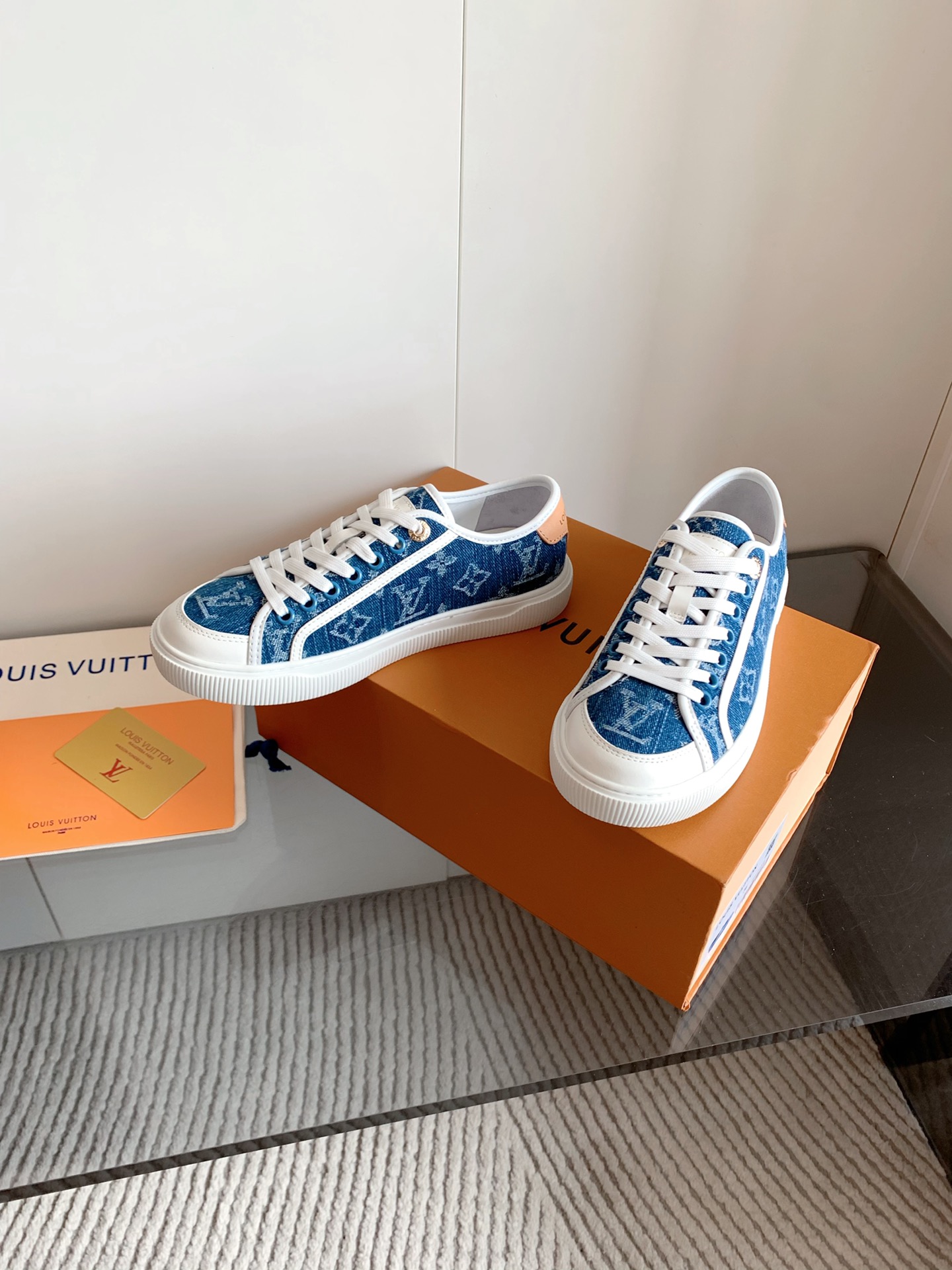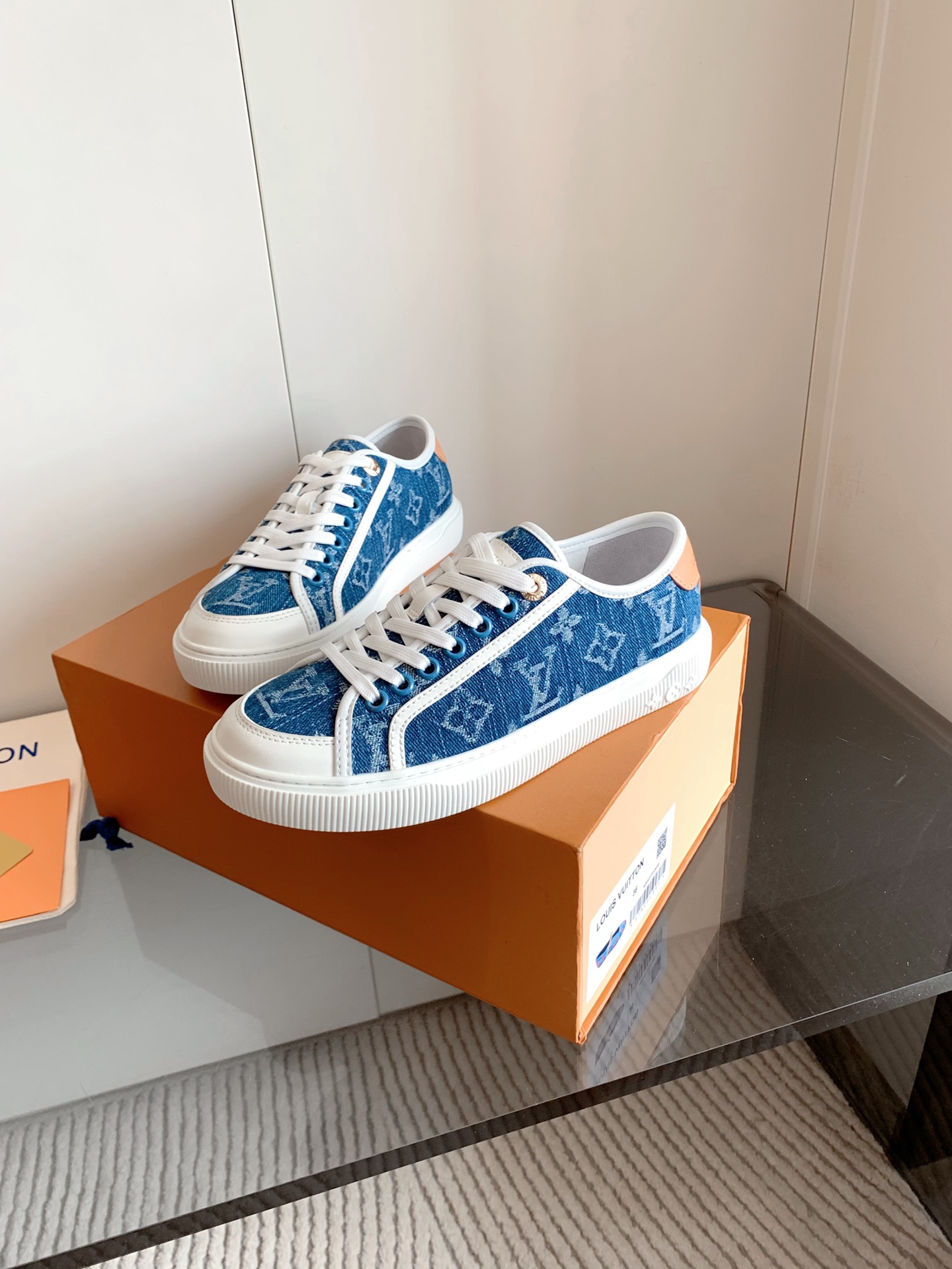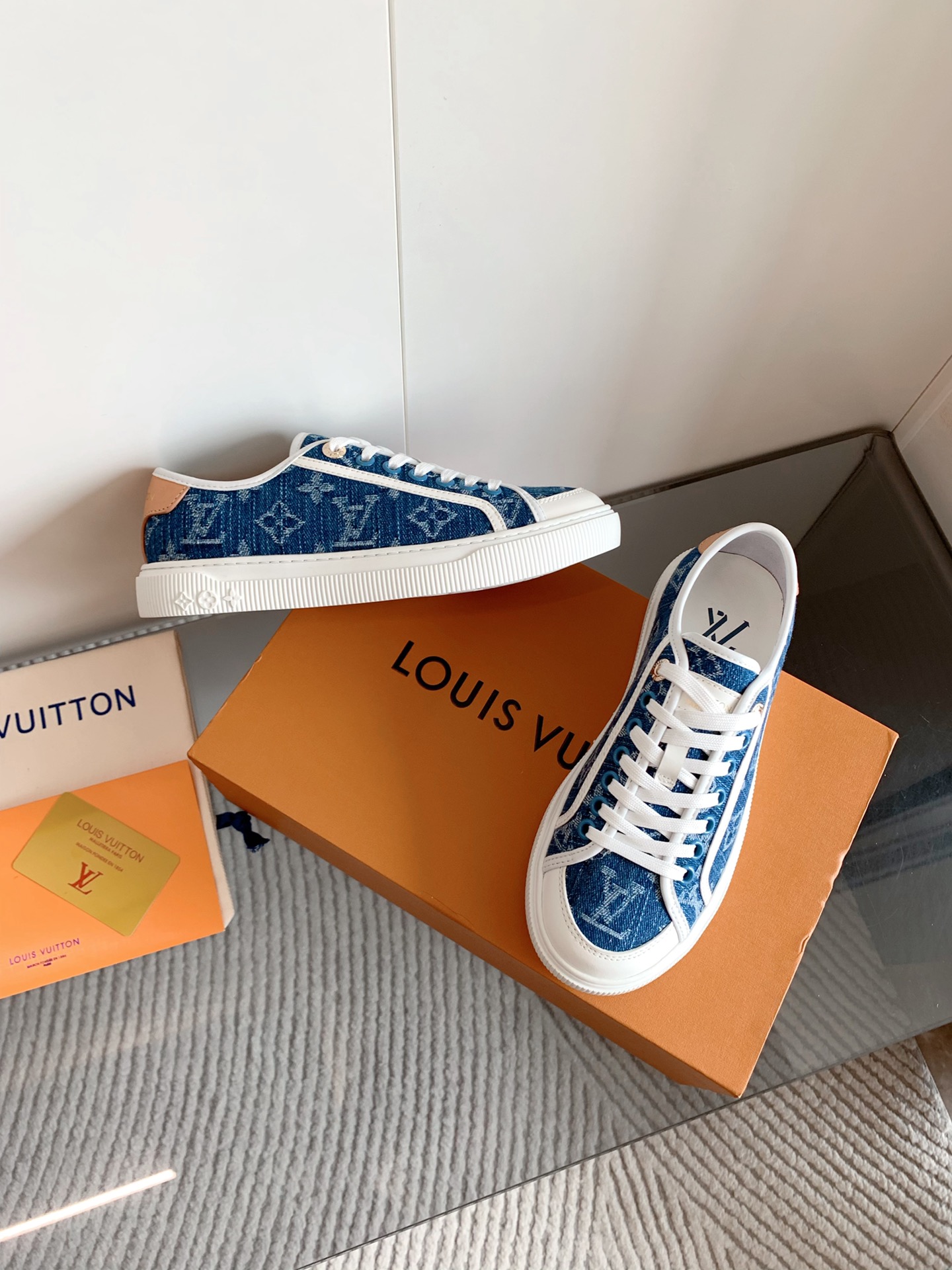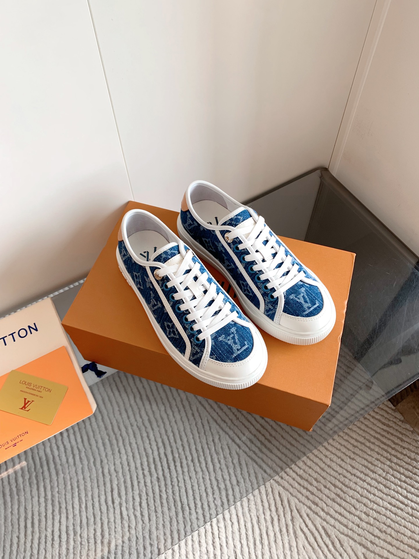 这款鞋子是AAAAA 1:1 质量 (非常棒). 使用了和原版一模一样的材料. 商标部分也保持了和路易威登/Louis Vuitton一样. 图片拍摄是实物鞋子拍摄, 您所收到的实物保证和我们图片一模一样.