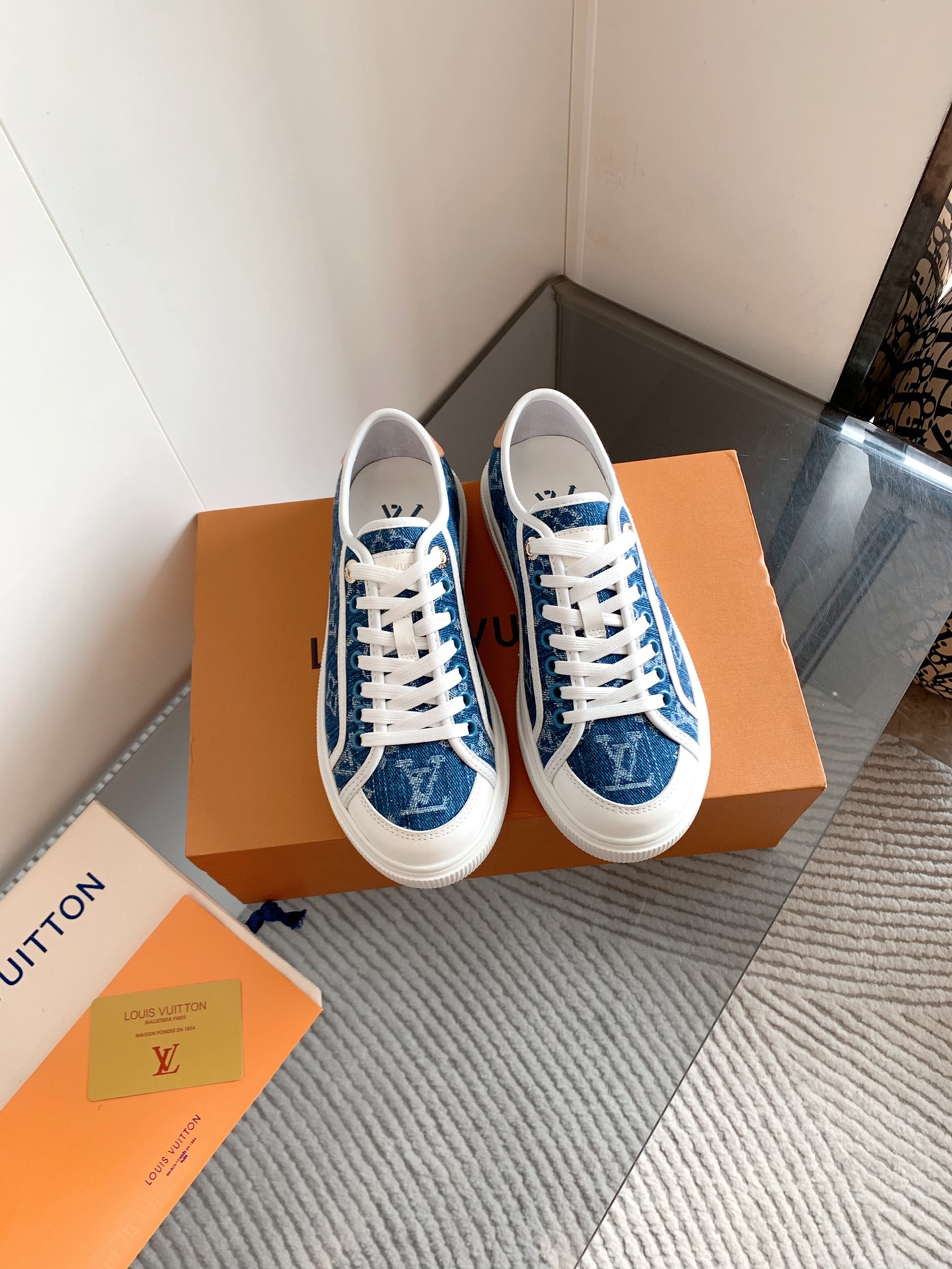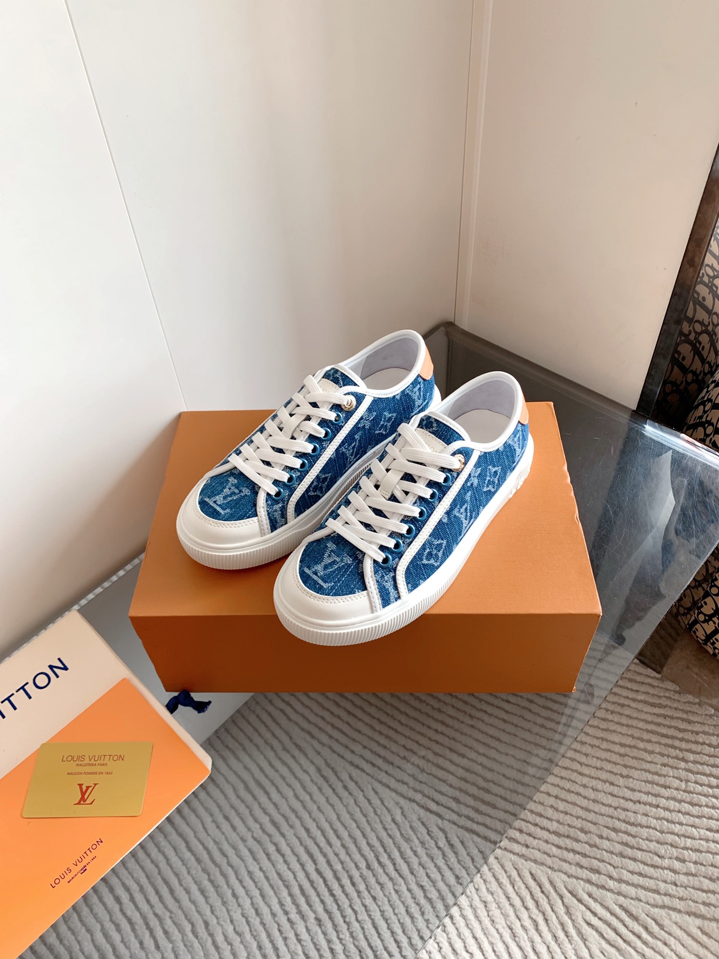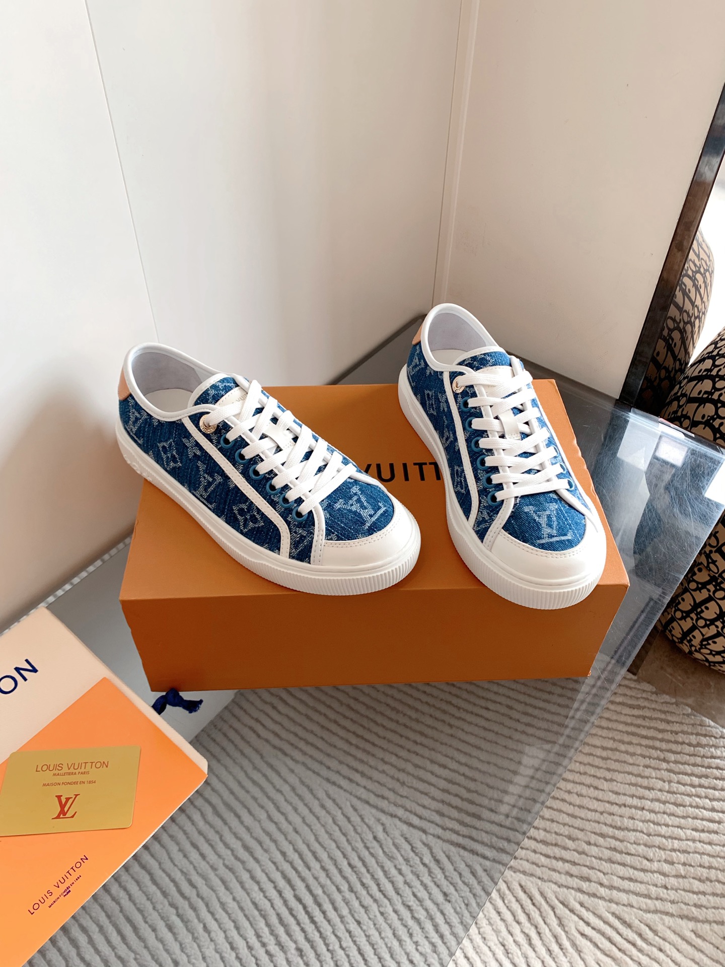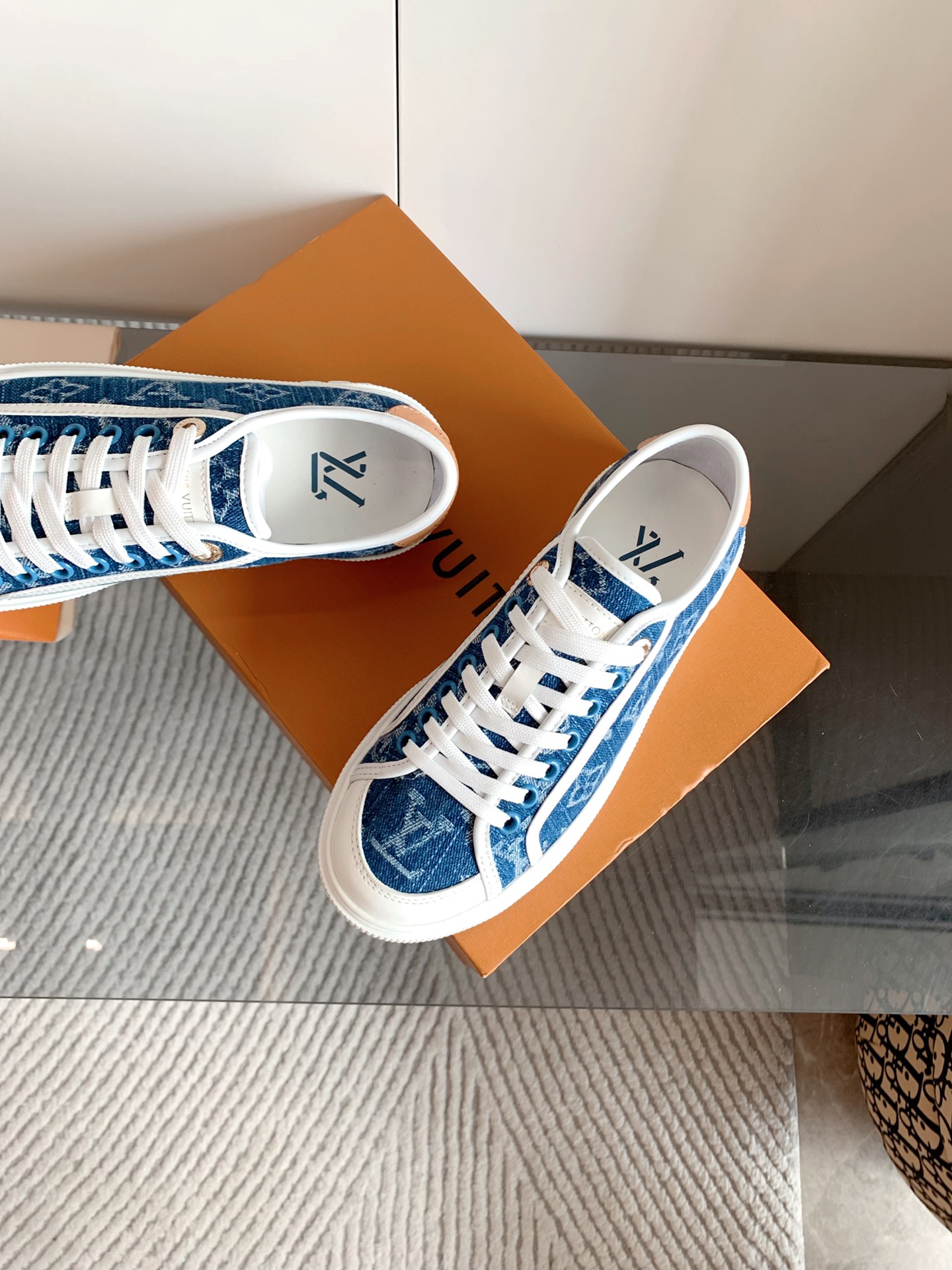 这款鞋子是AAAAA 1:1 质量 (非常棒). 使用了和原版一模一样的材料. 商标部分也保持了和路易威登/Louis Vuitton一样. 图片拍摄是实物鞋子拍摄, 您所收到的实物保证和我们图片一模一样.