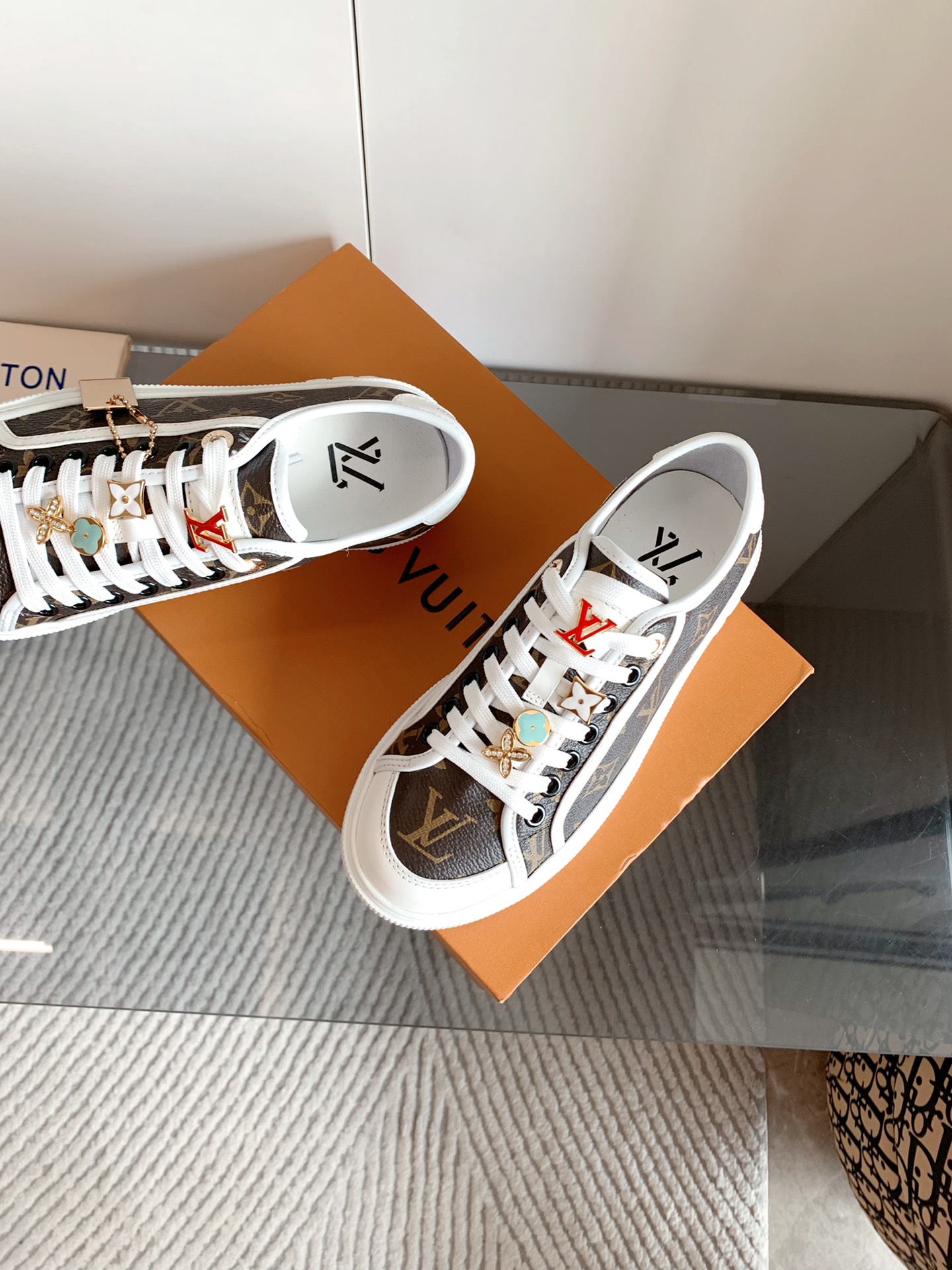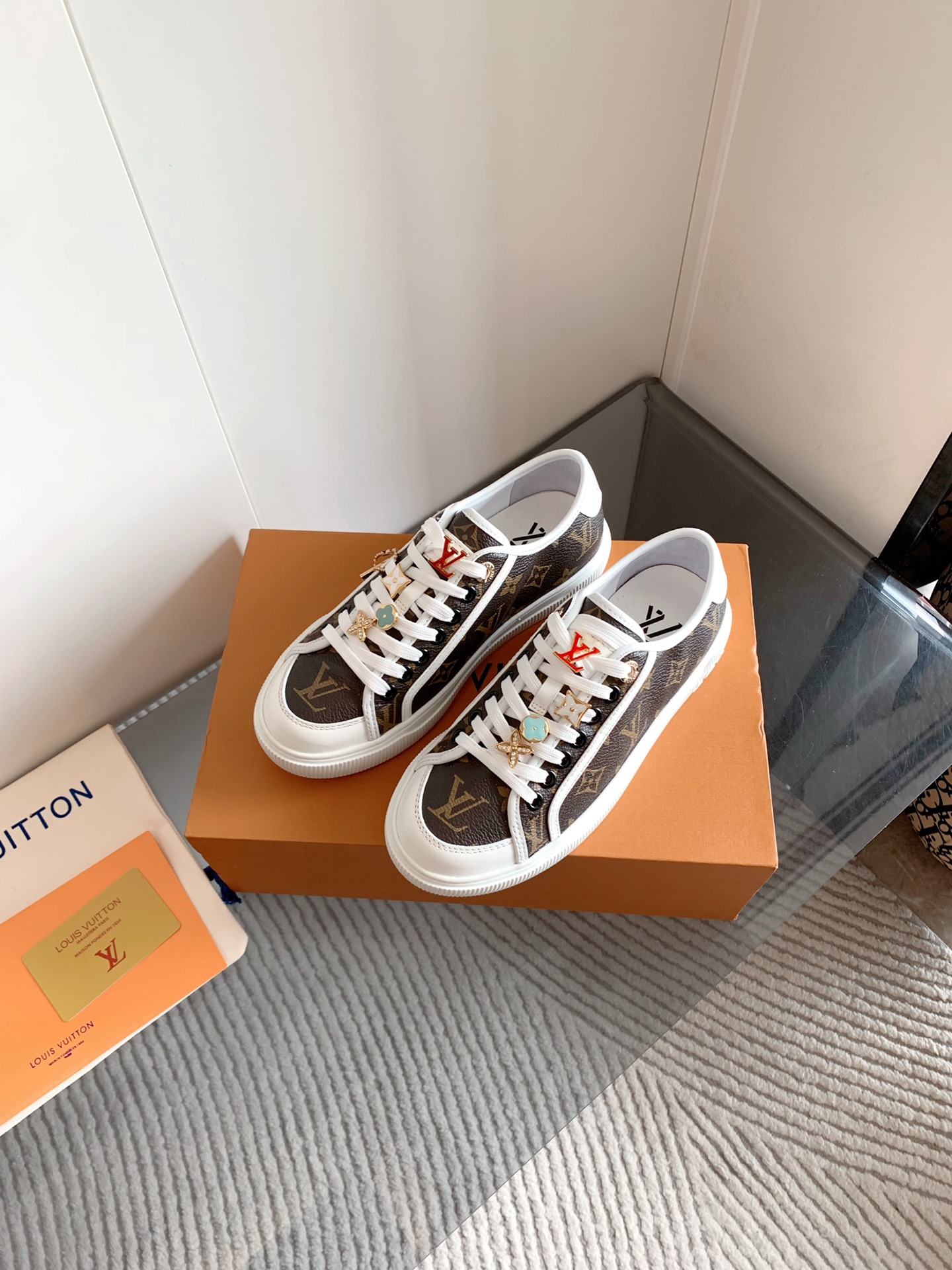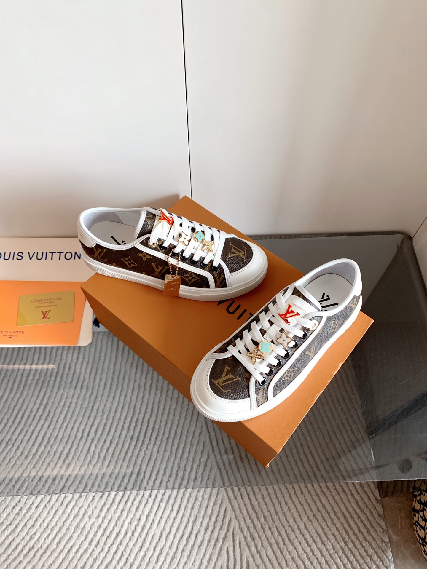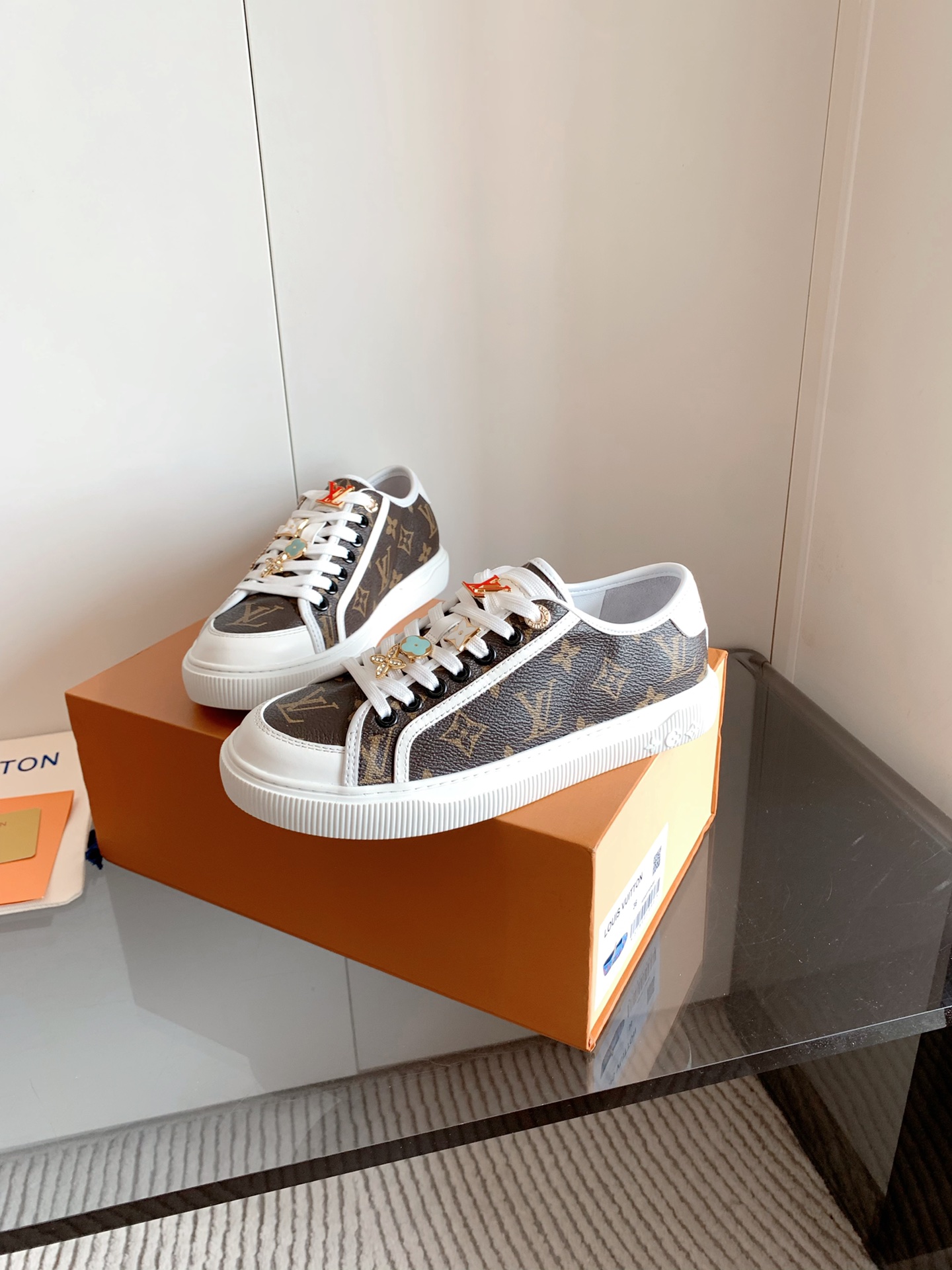 这款鞋子是AAAAA 1:1 质量 (非常棒). 使用了和原版一模一样的材料. 商标部分也保持了和路易威登/Louis Vuitton一样. 图片拍摄是实物鞋子拍摄, 您所收到的实物保证和我们图片一模一样.