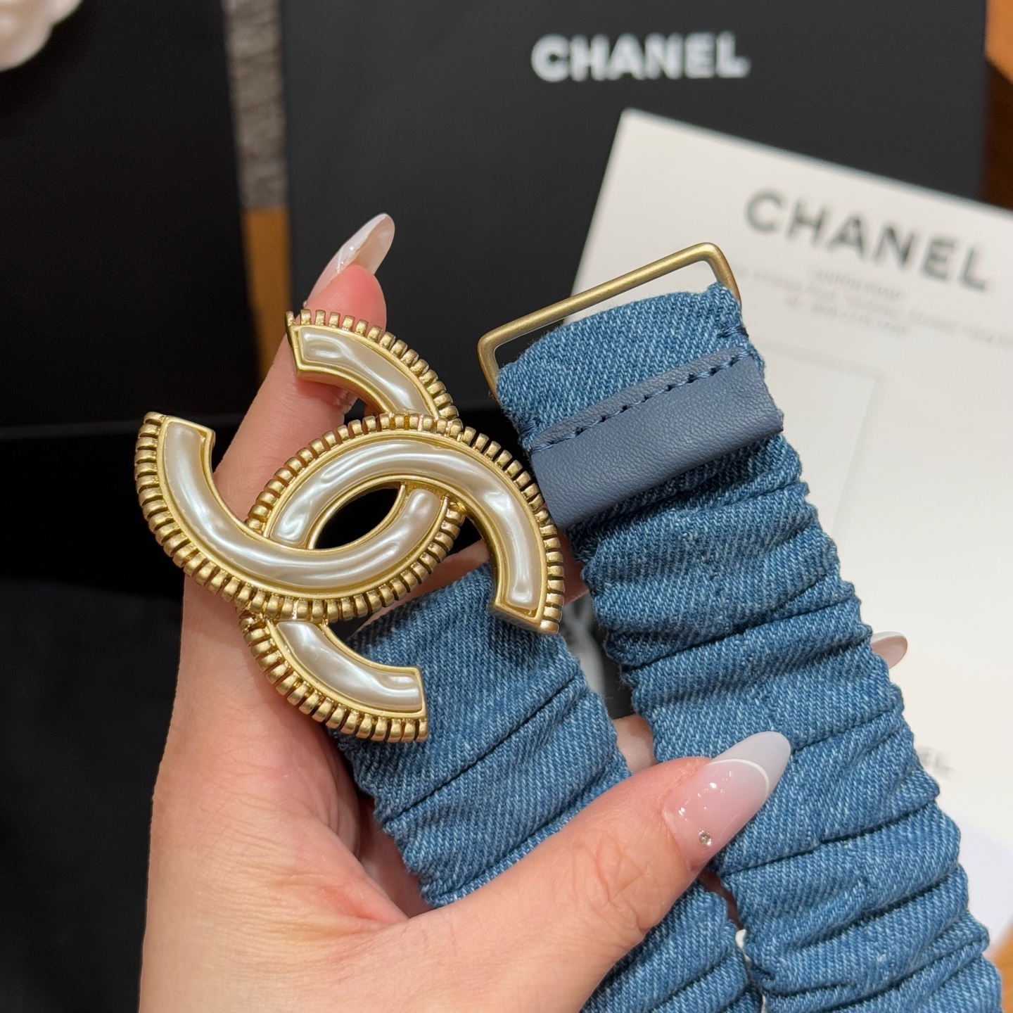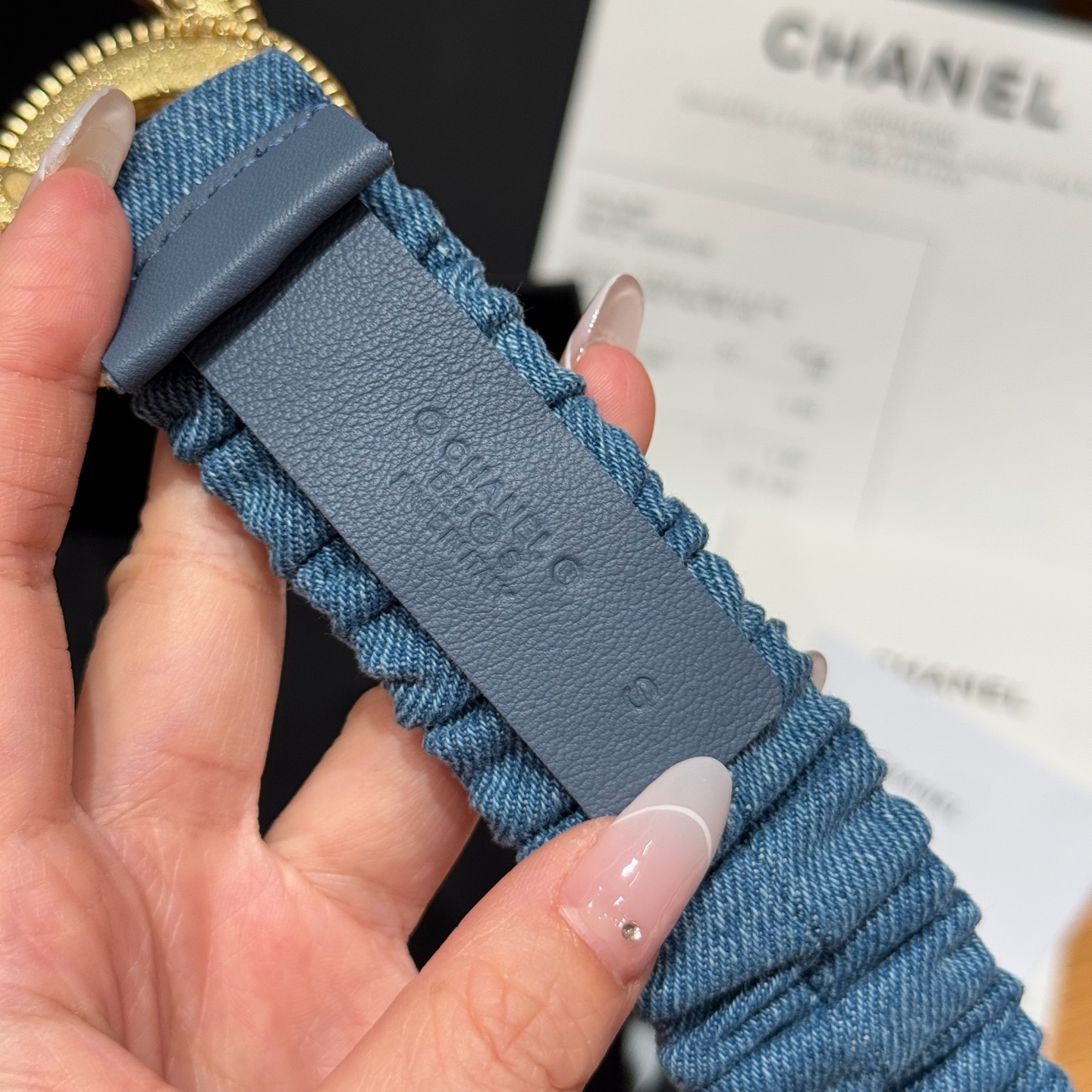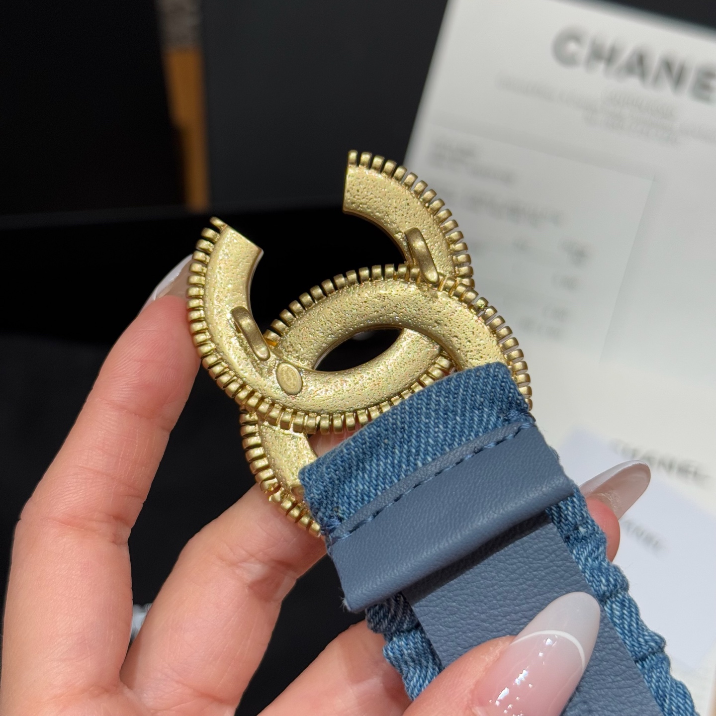 这款皮带是AAAAA 1:1 质量 (非常棒). 使用了和原版一模一样的材料. 商标部分也保持了和香奈儿/Chanel一样. 图片拍摄是实物皮带拍摄, 您所收到的实物保证和我们图片一模一样.