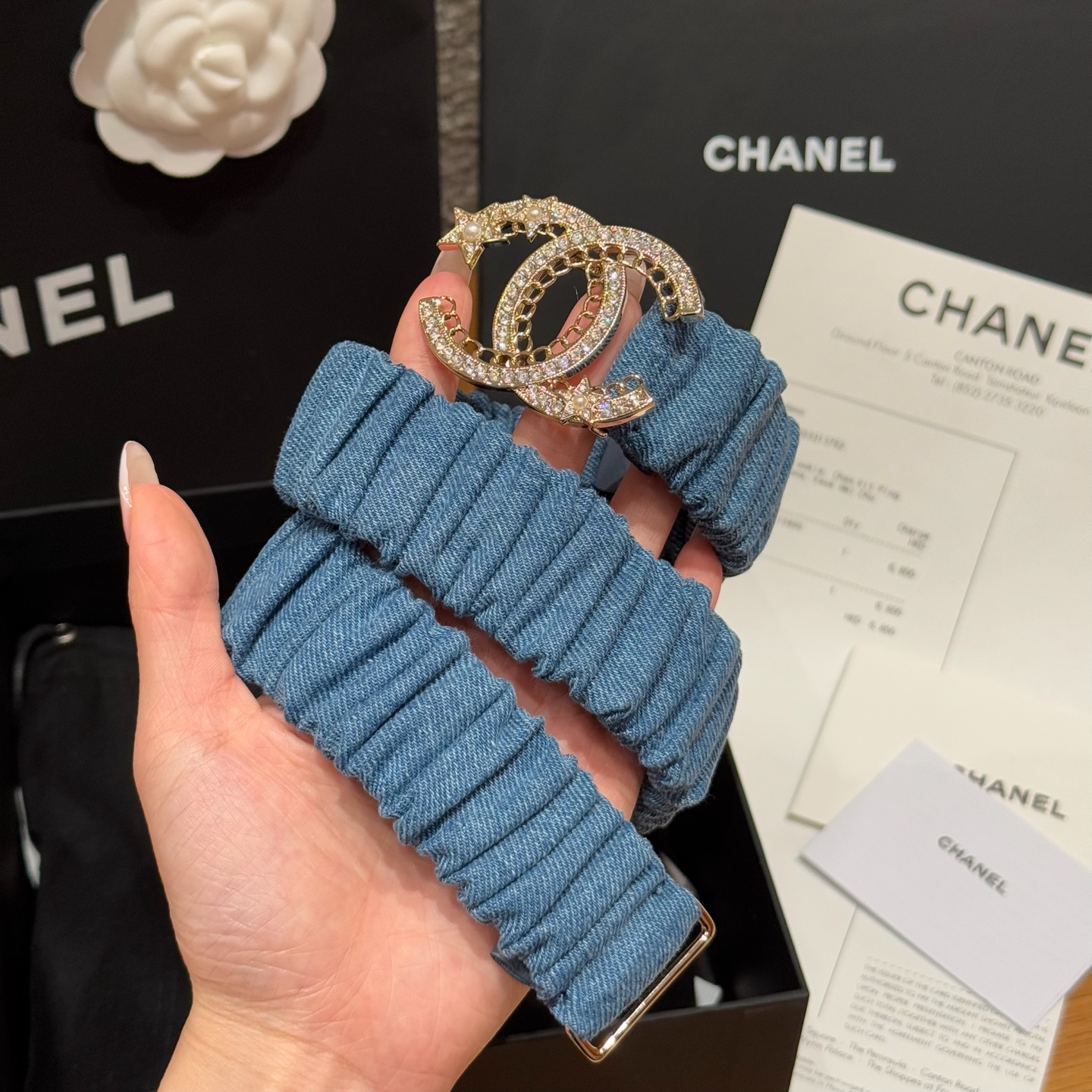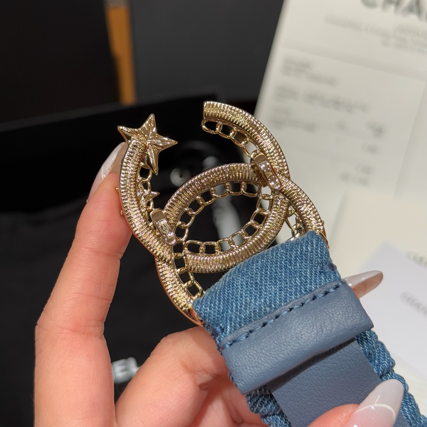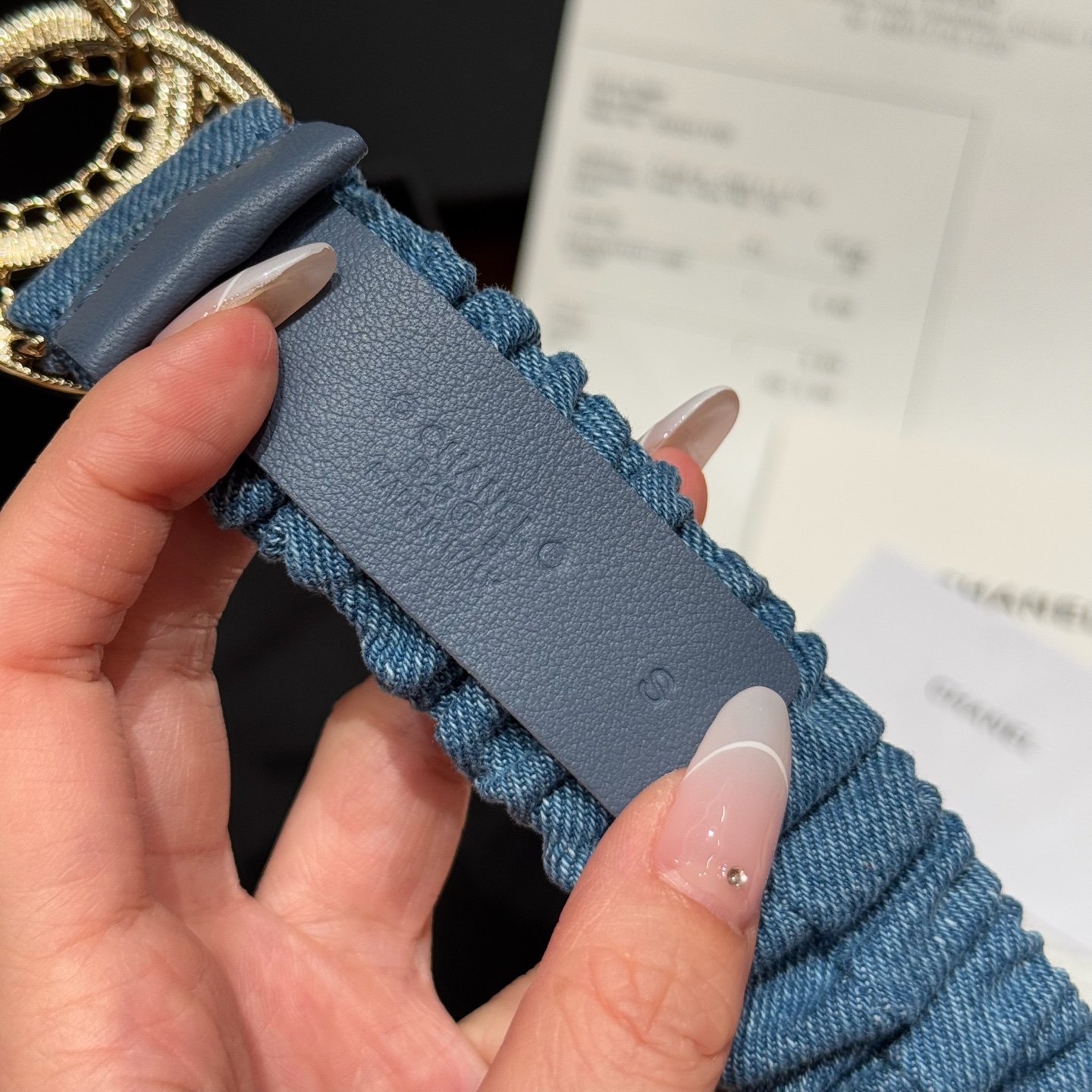 这款皮带是AAAAA 1:1 质量 (非常棒). 使用了和原版一模一样的材料. 商标部分也保持了和香奈儿/Chanel一样. 图片拍摄是实物皮带拍摄, 您所收到的实物保证和我们图片一模一样.