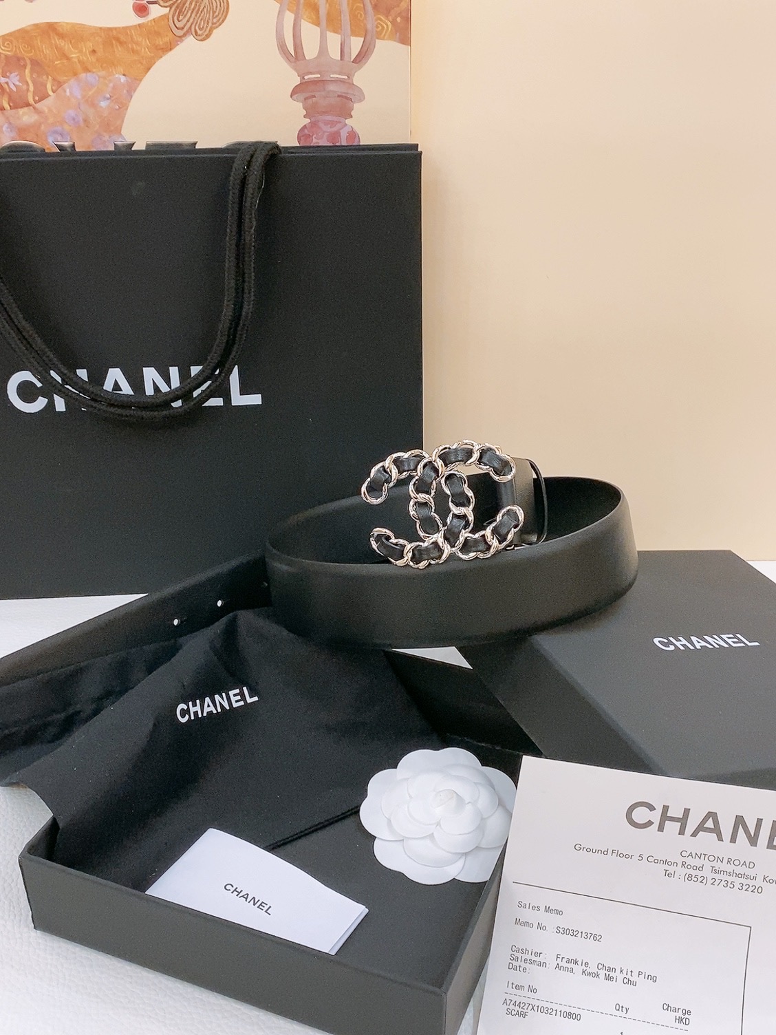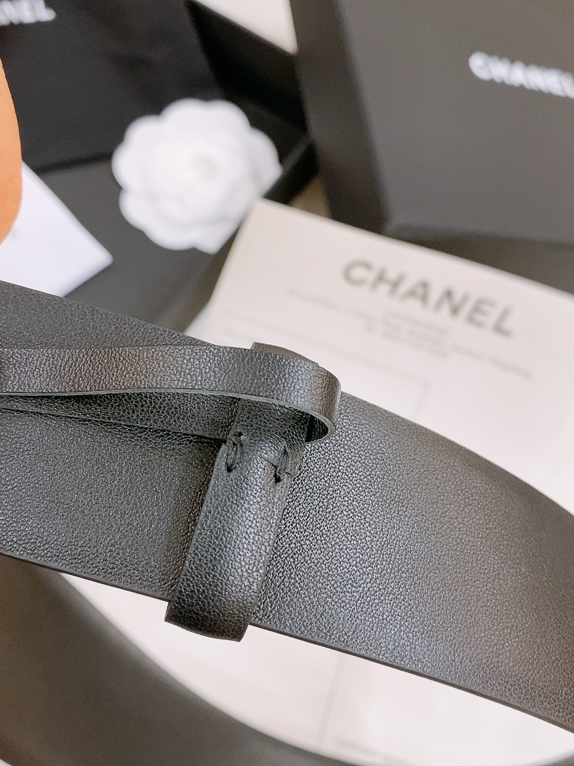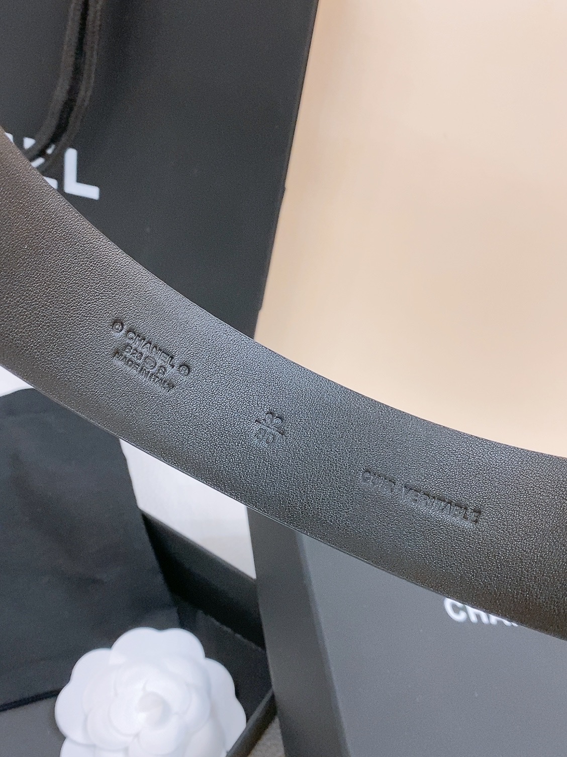 这款皮带是AAAAA 1:1 质量 (非常棒). 使用了和原版一模一样的材料. 商标部分也保持了和香奈儿/Chanel一样. 图片拍摄是实物皮带拍摄, 您所收到的实物保证和我们图片一模一样.
