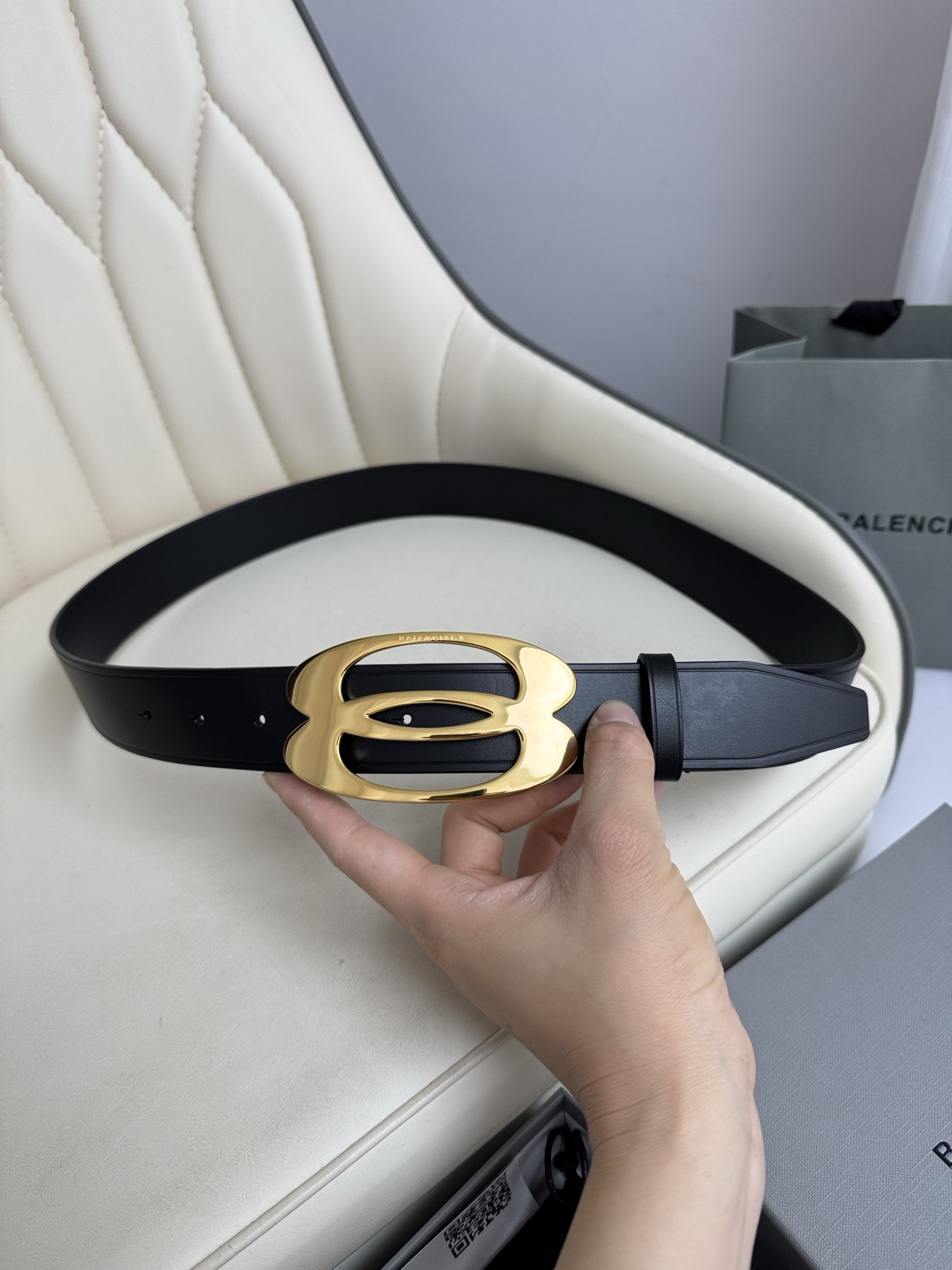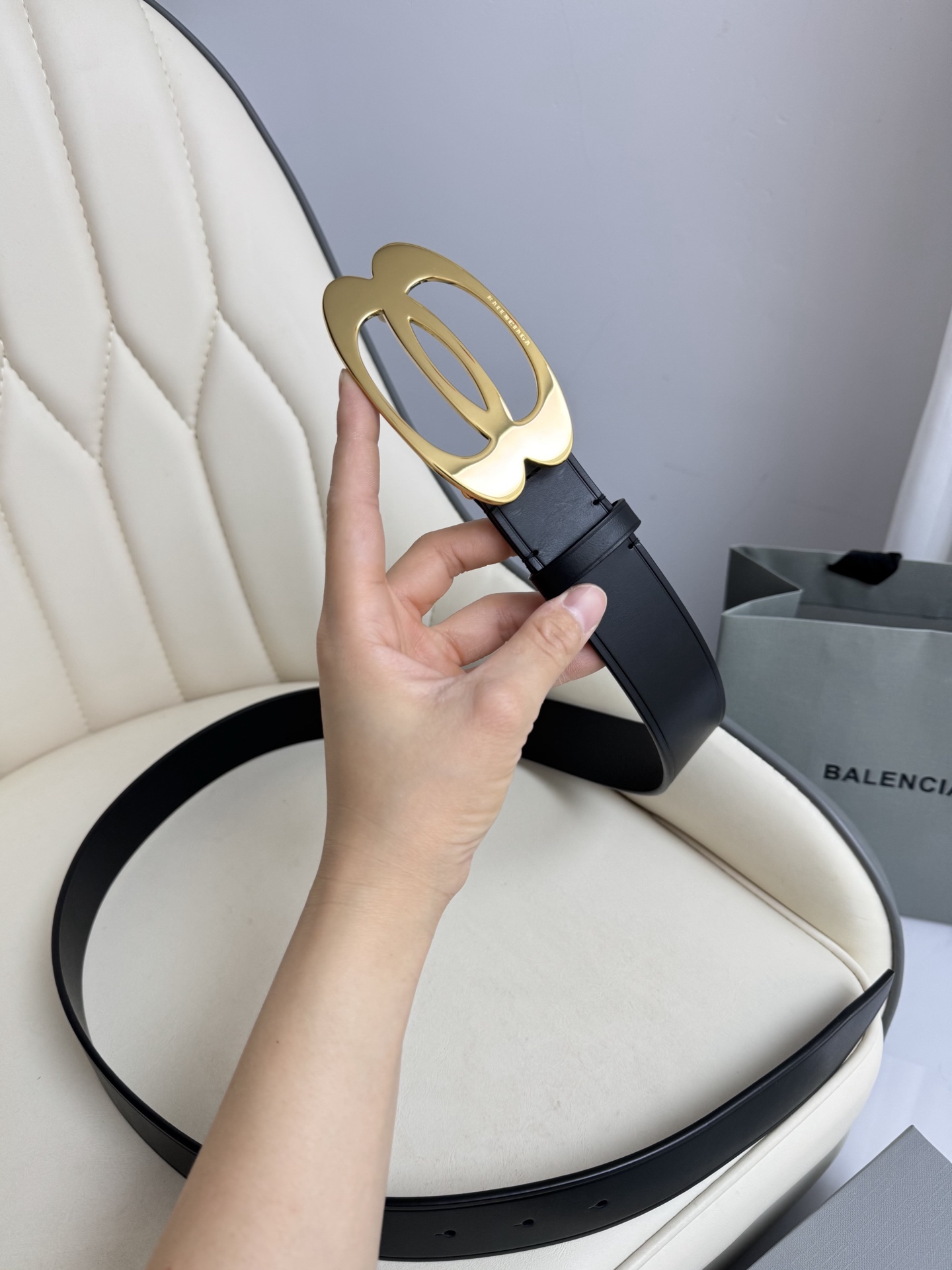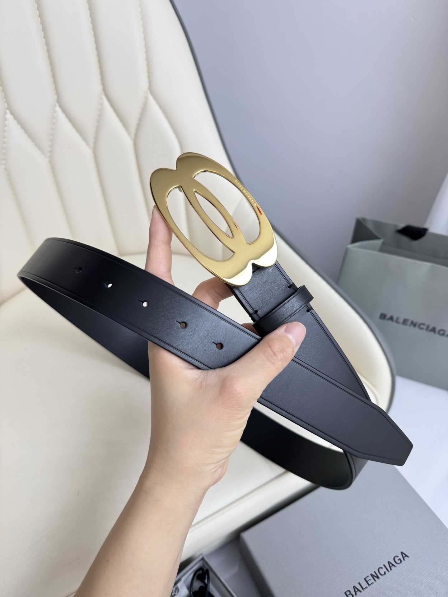 这款皮带是AAAAA 1:1 质量 (非常棒). 使用了和原版一模一样的材料. 商标部分也保持了和巴黎世家/Balenciaga一样. 图片拍摄是实物皮带拍摄, 您所收到的实物保证和我们图片一模一样.