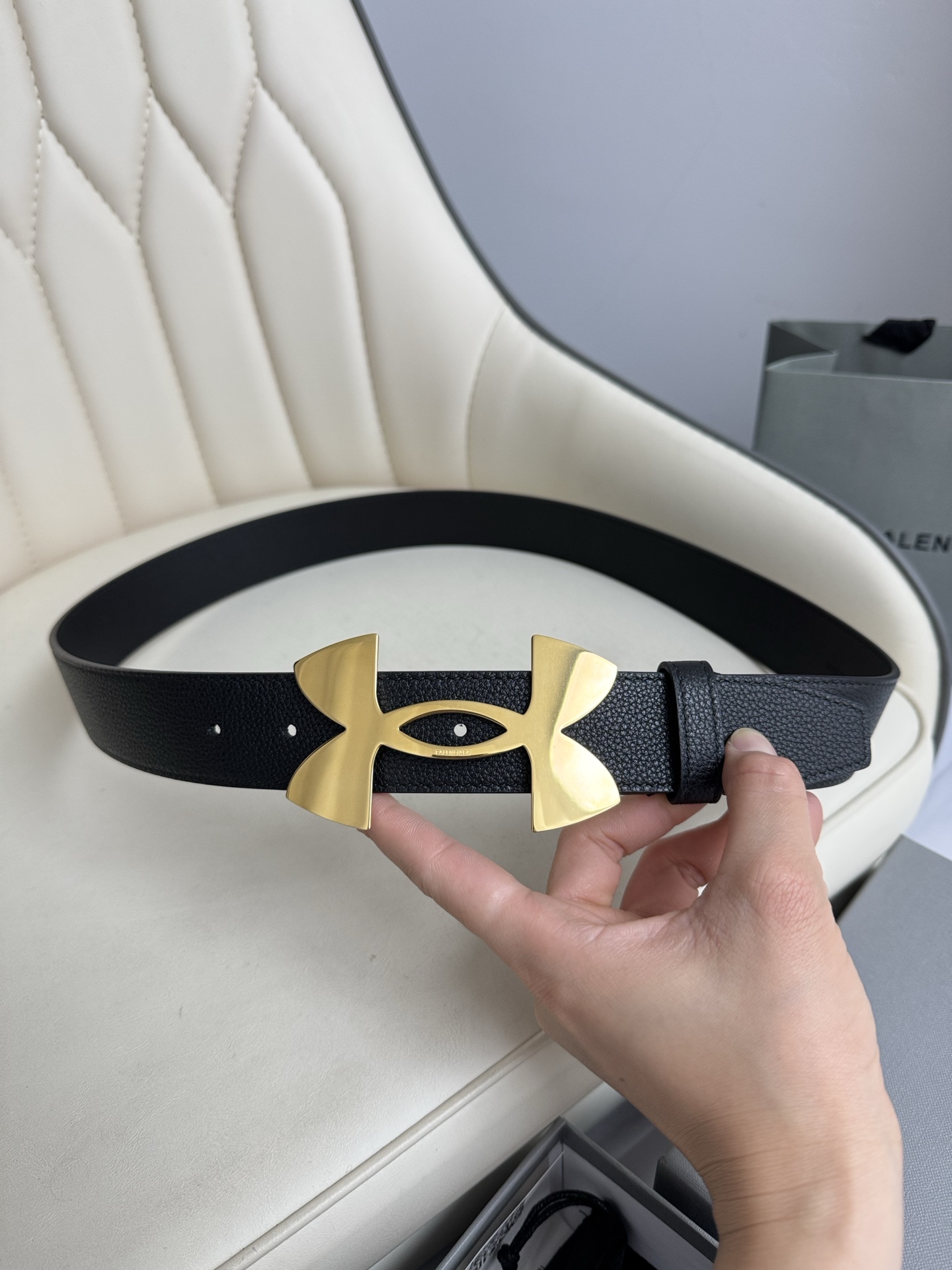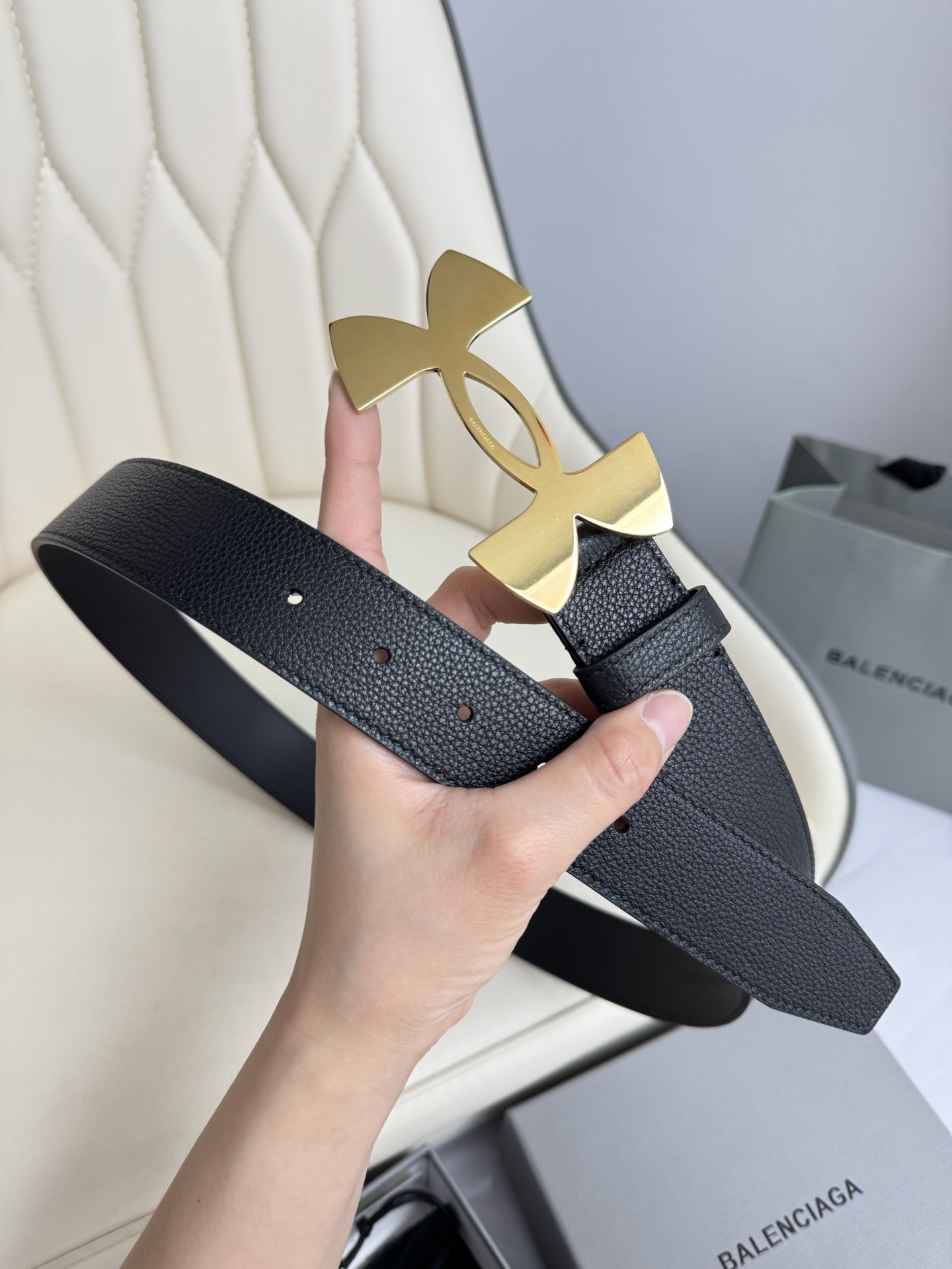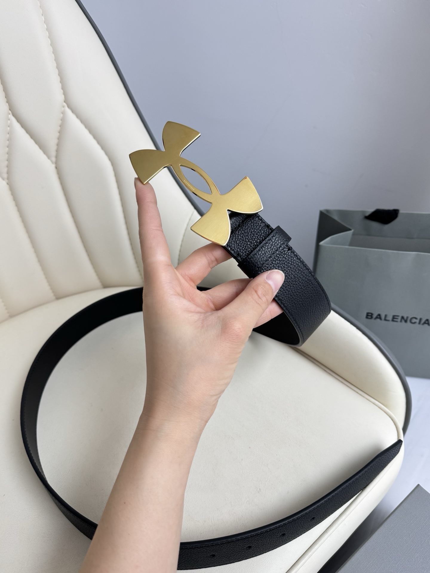 这款皮带是AAAAA 1:1 质量 (非常棒). 使用了和原版一模一样的材料. 商标部分也保持了和巴黎世家/Balenciaga一样. 图片拍摄是实物皮带拍摄, 您所收到的实物保证和我们图片一模一样.