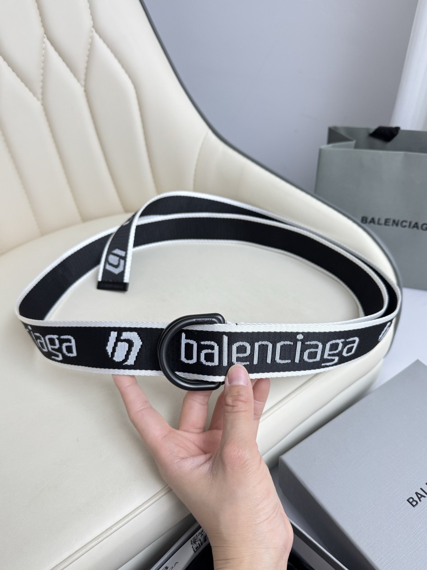 这款皮带是AAAAA 1:1 质量 (非常棒). 使用了和原版一模一样的材料. 商标部分也保持了和巴黎世家/Balenciaga一样. 图片拍摄是实物皮带拍摄, 您所收到的实物保证和我们图片一模一样.