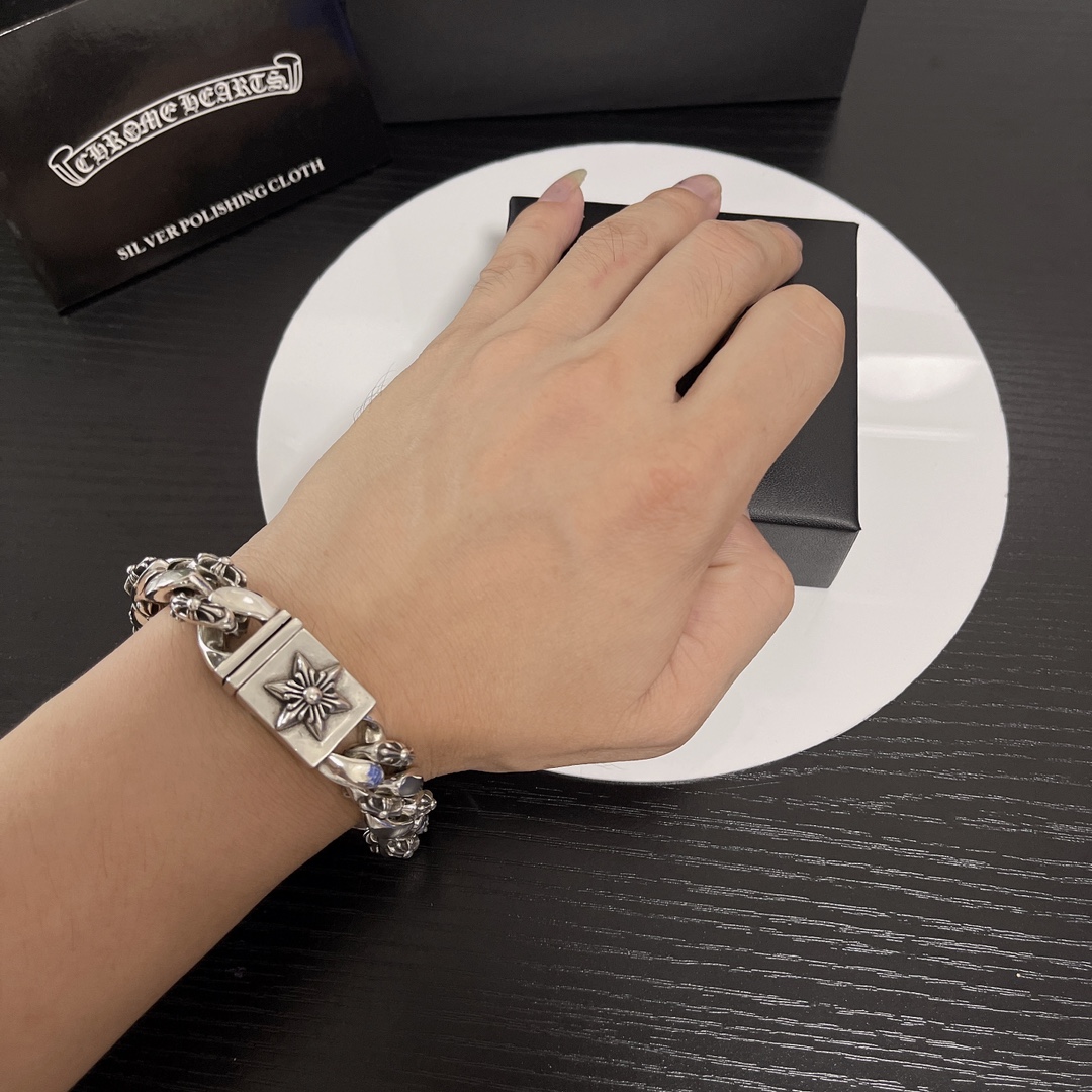 这款首饰是AAAAA 1:1 质量 (非常棒). 使用了和原版一模一样的材料. 商标部分也保持了和克罗心/Chrome Hearts一样. 图片拍摄是实物首饰拍摄, 您所收到的实物保证和我们图片一模一样.