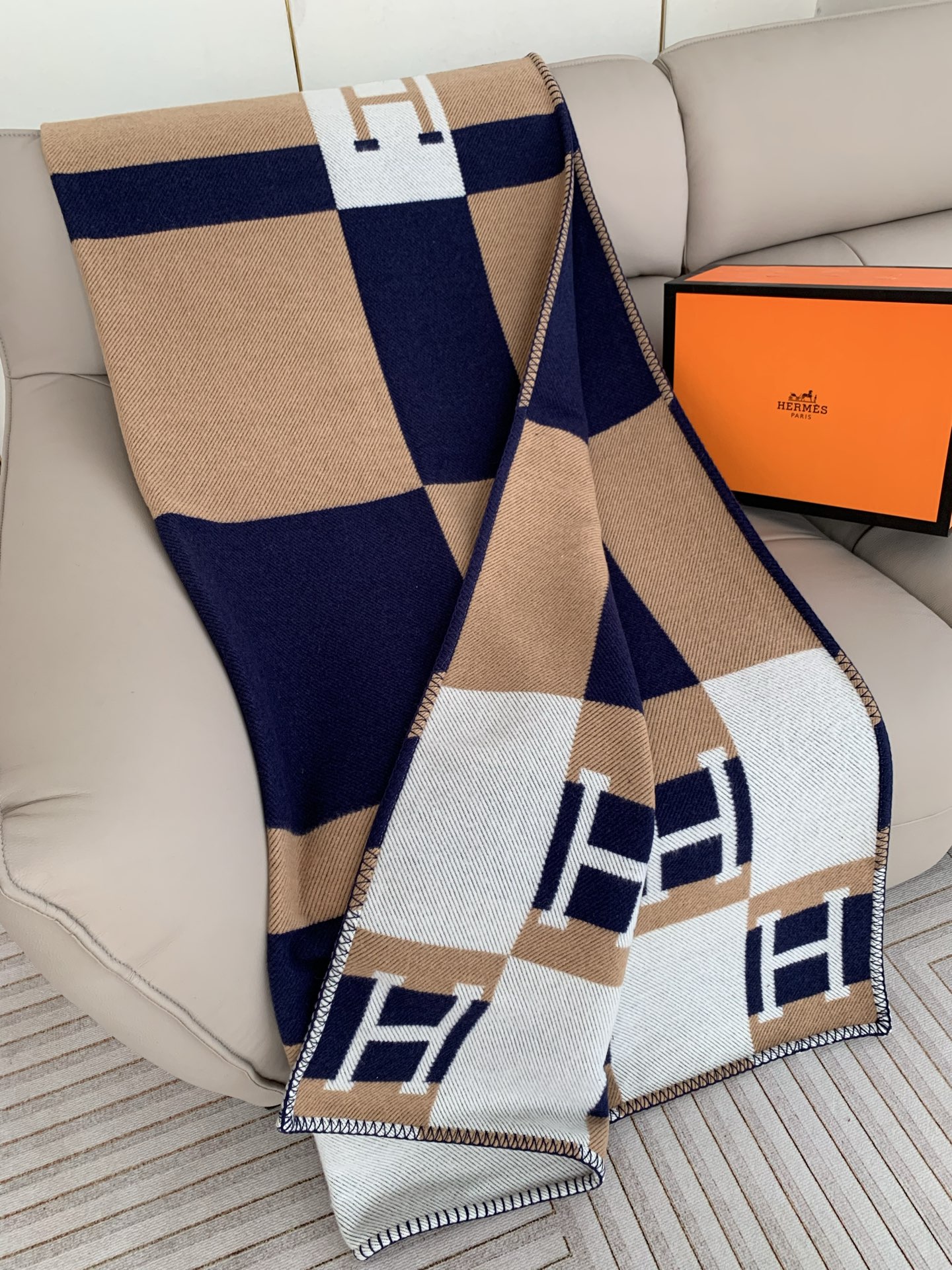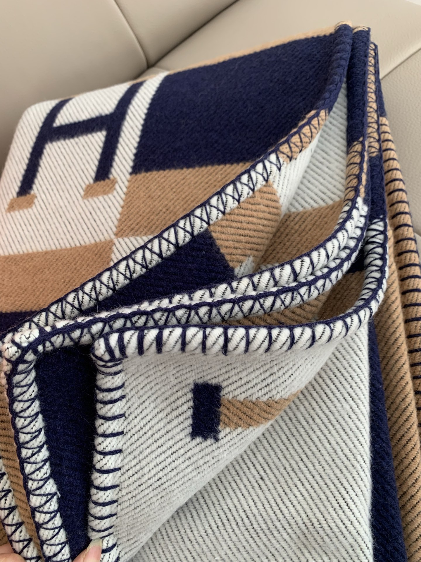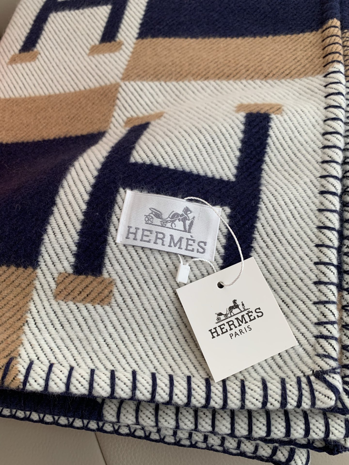 这款毯是AAAAA 1:1 质量 (非常棒). 使用了和原版一模一样的材料. 商标部分也保持了和爱马仕/Hermes一样. 图片拍摄是实物毯拍摄, 您所收到的实物保证和我们图片一模一样.