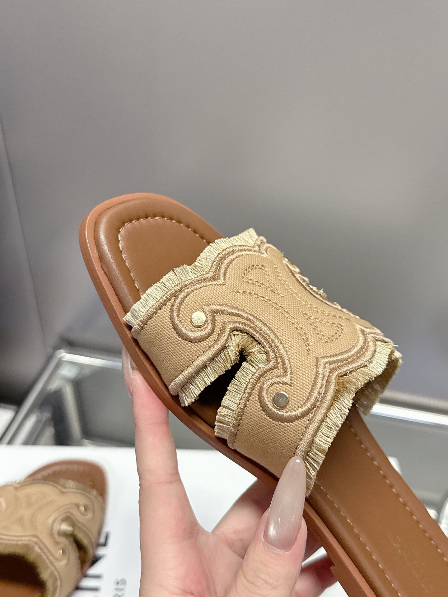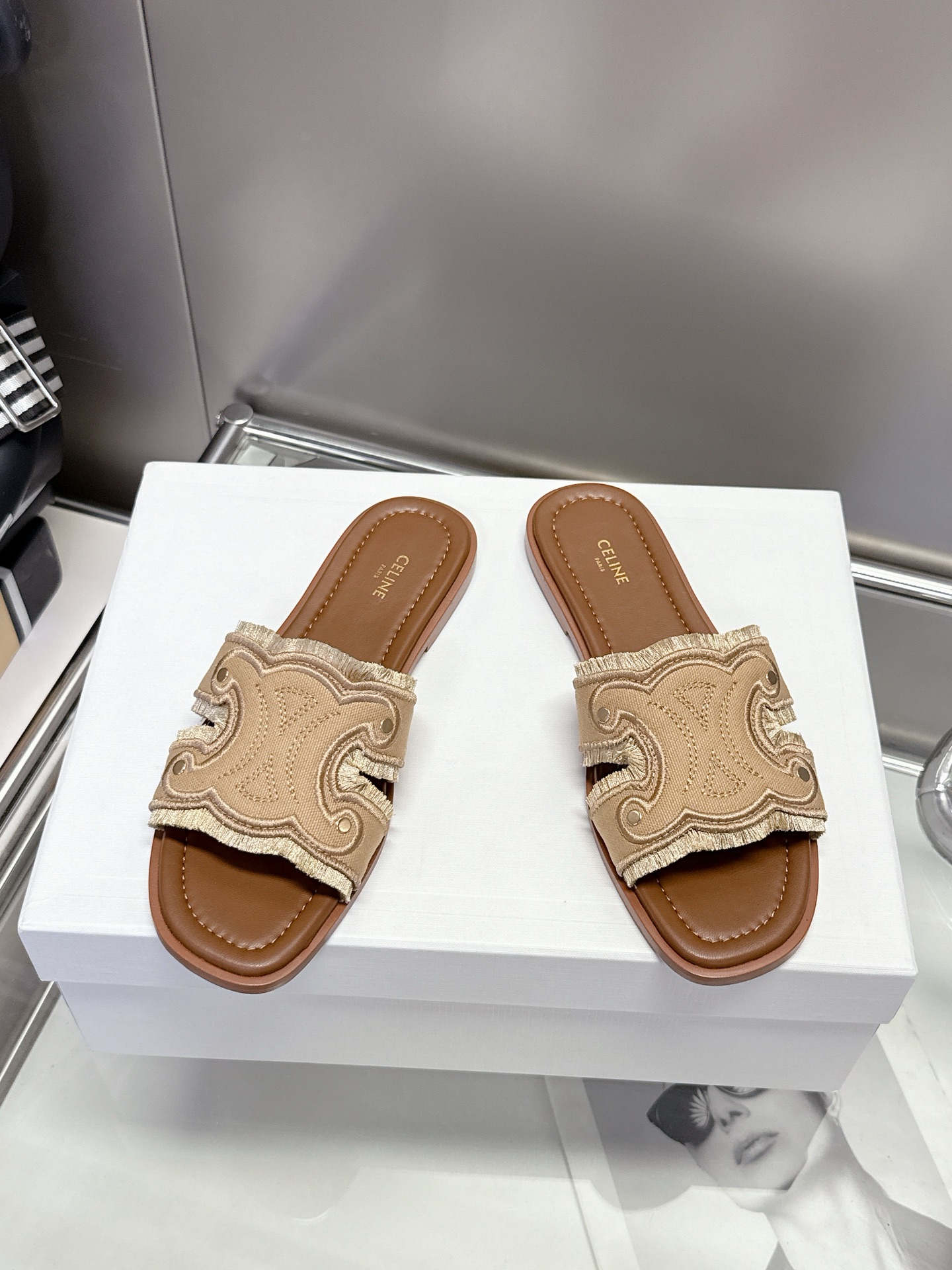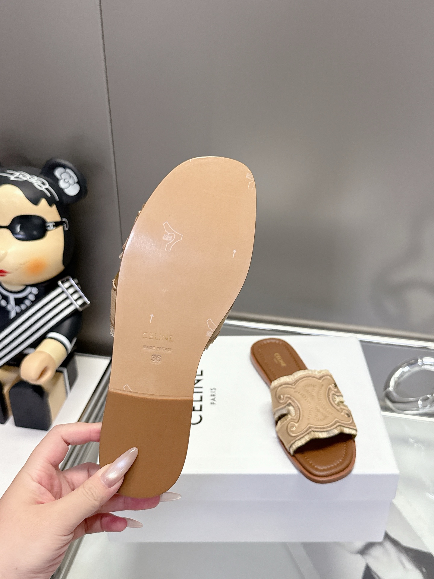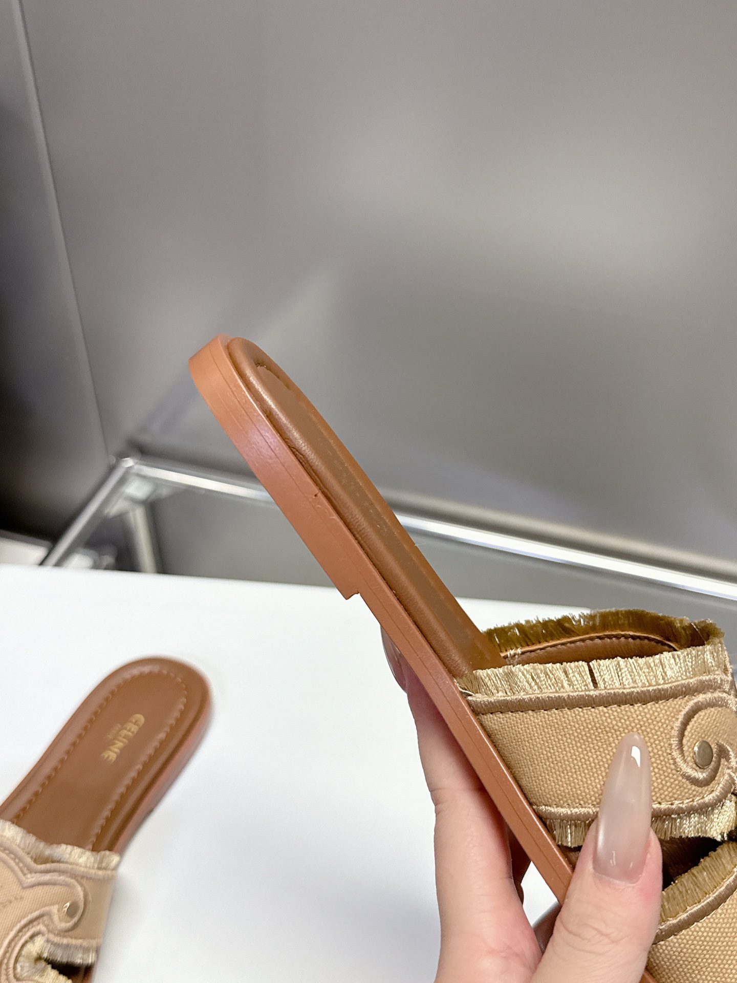 这款鞋子是AAAAA 1:1 质量 (非常棒). 使用了和原版一模一样的材料. 商标部分也保持了和思琳/Celine一样. 图片拍摄是实物鞋子拍摄, 您所收到的实物保证和我们图片一模一样.