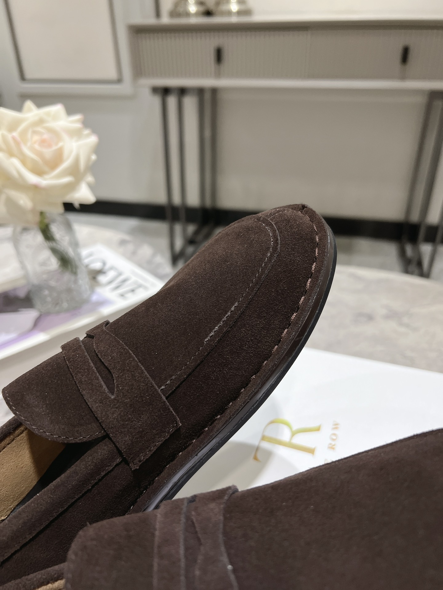 这款鞋子是AAAAA 1:1 质量 (非常棒). 使用了和原版一模一样的材料. 商标部分也保持了和The Row一样. 图片拍摄是实物鞋子拍摄, 您所收到的实物保证和我们图片一模一样.