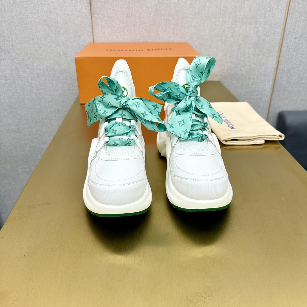 这款鞋子是AAAAA 1:1 质量 (非常棒). 使用了和原版一模一样的材料. 商标部分也保持了和路易威登/Louis Vuitton一样. 图片拍摄是实物鞋子拍摄, 您所收到的实物保证和我们图片一模一样.