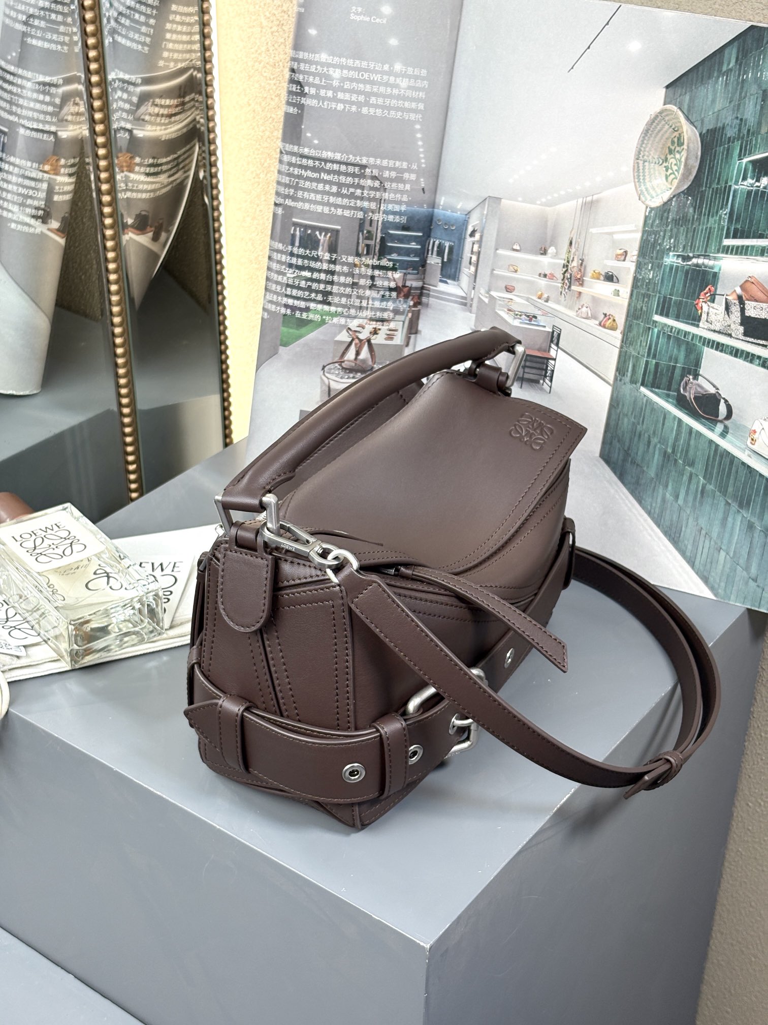 这款包包是AAAAA 1:1 质量 (非常棒). 使用了和原版一模一样的材料. 商标部分也保持了和罗意威/Loewe一样. 图片拍摄是实物包包拍摄, 您所收到的实物保证和我们图片一模一样.
