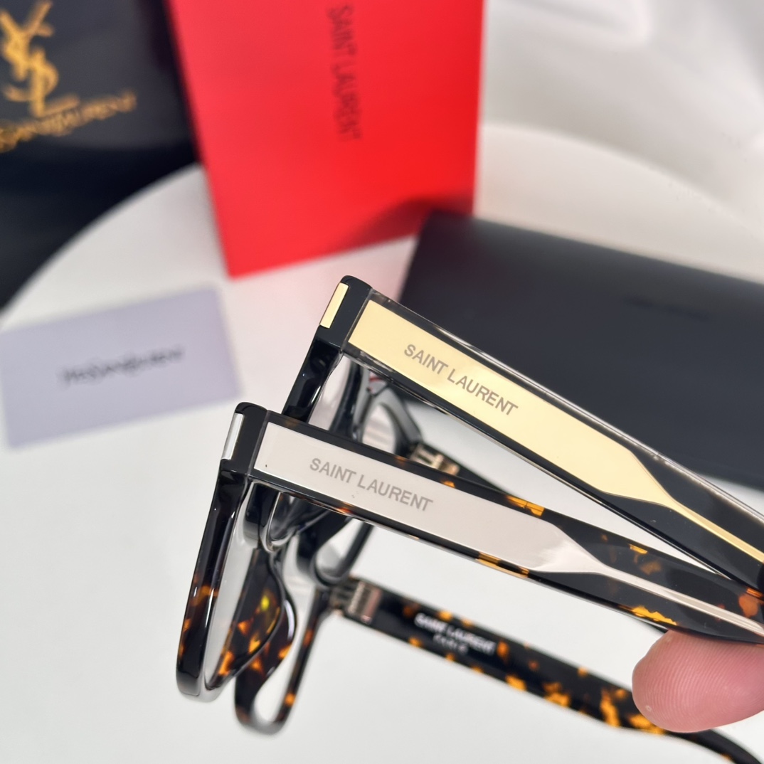 这款太阳眼镜是AAAAA 1:1 质量 (非常棒). 使用了和原版一模一样的材料. 商标部分也保持了和圣罗兰/Saint Laurent一样. 图片拍摄是实物太阳眼镜拍摄, 您所收到的实物保证和我们图片一模一样.