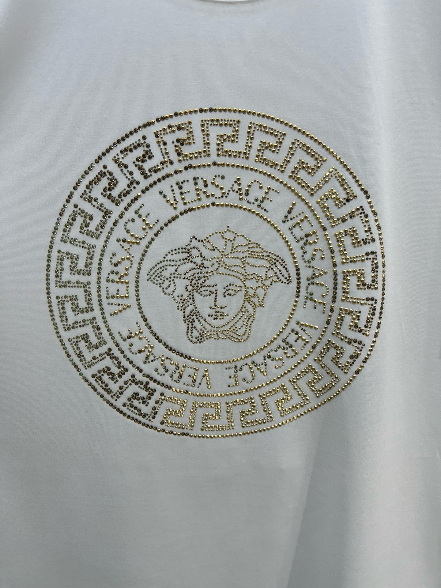 这款衣服是AAAAA 1:1 质量 (非常棒). 使用了和原版一模一样的材料. 商标部分也保持了和范思哲/Versace一样. 图片拍摄是实物衣服拍摄, 您所收到的实物保证和我们图片一模一样.