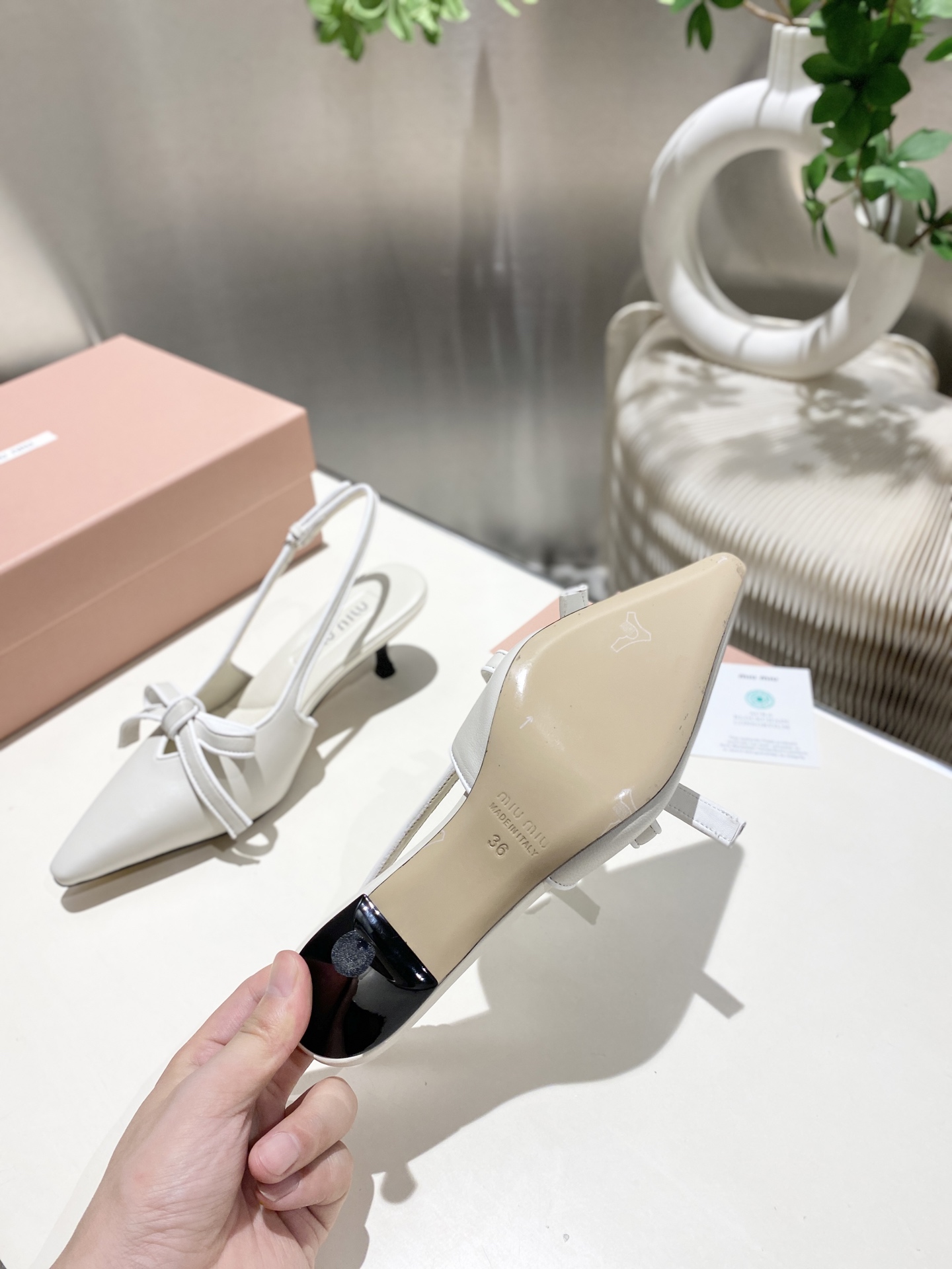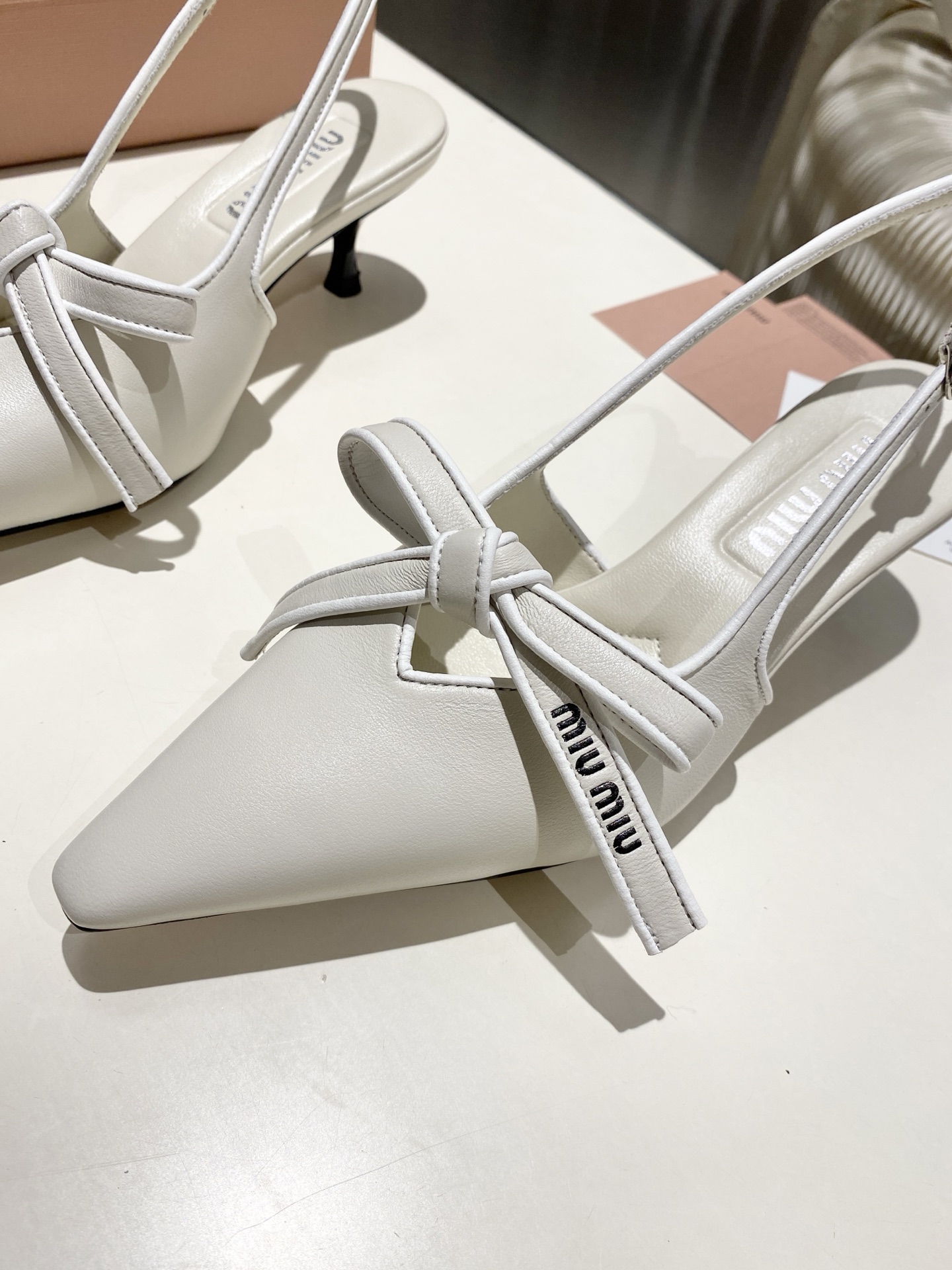 这款鞋子是AAAAA 1:1 质量 (非常棒). 使用了和原版一模一样的材料. 商标部分也保持了和缪缪/Miu Miu一样. 图片拍摄是实物鞋子拍摄, 您所收到的实物保证和我们图片一模一样.