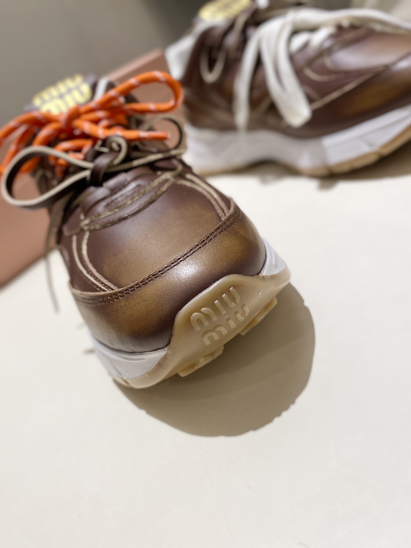这款鞋子是AAAAA 1:1 质量 (非常棒). 使用了和原版一模一样的材料. 商标部分也保持了和缪缪/Miu Miu一样. 图片拍摄是实物鞋子拍摄, 您所收到的实物保证和我们图片一模一样.