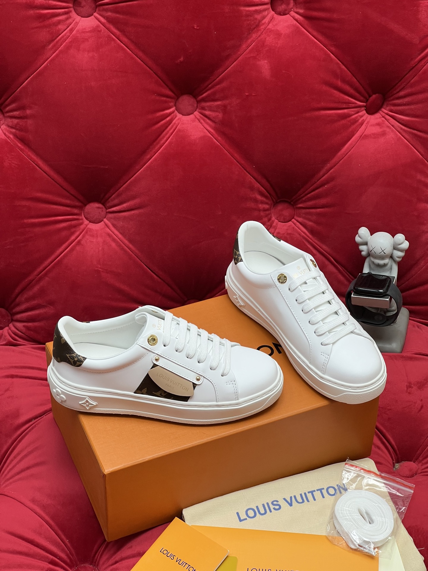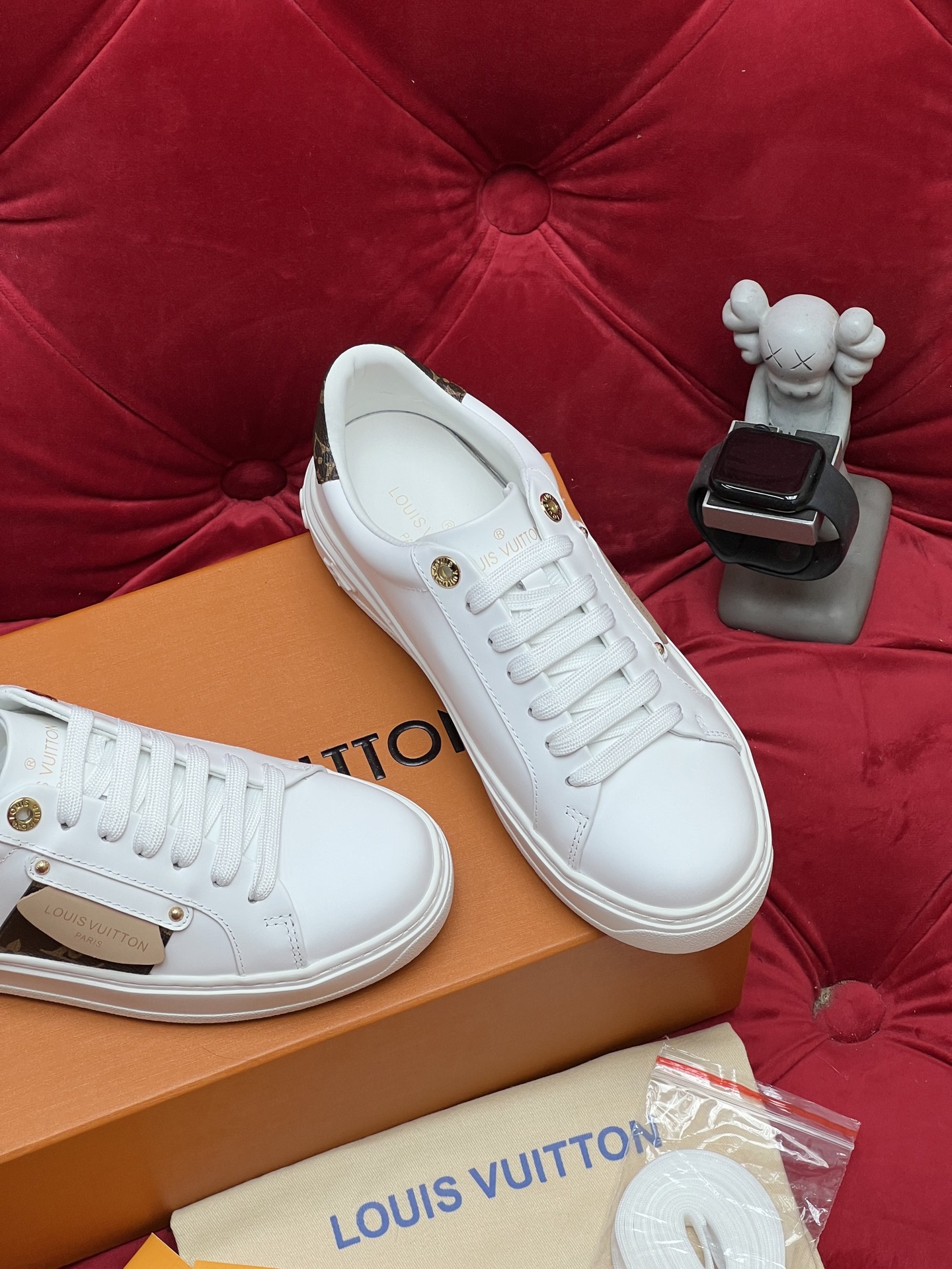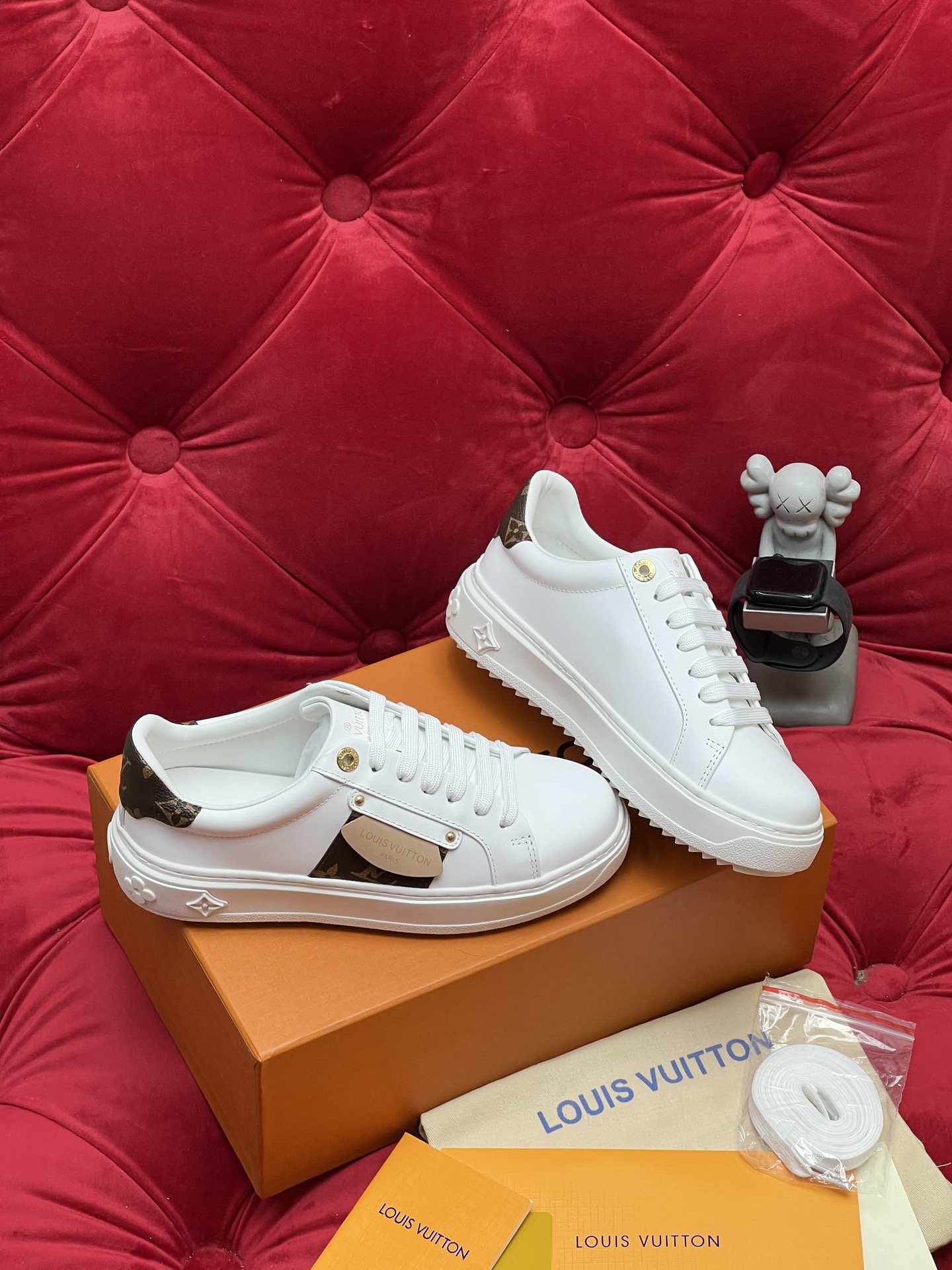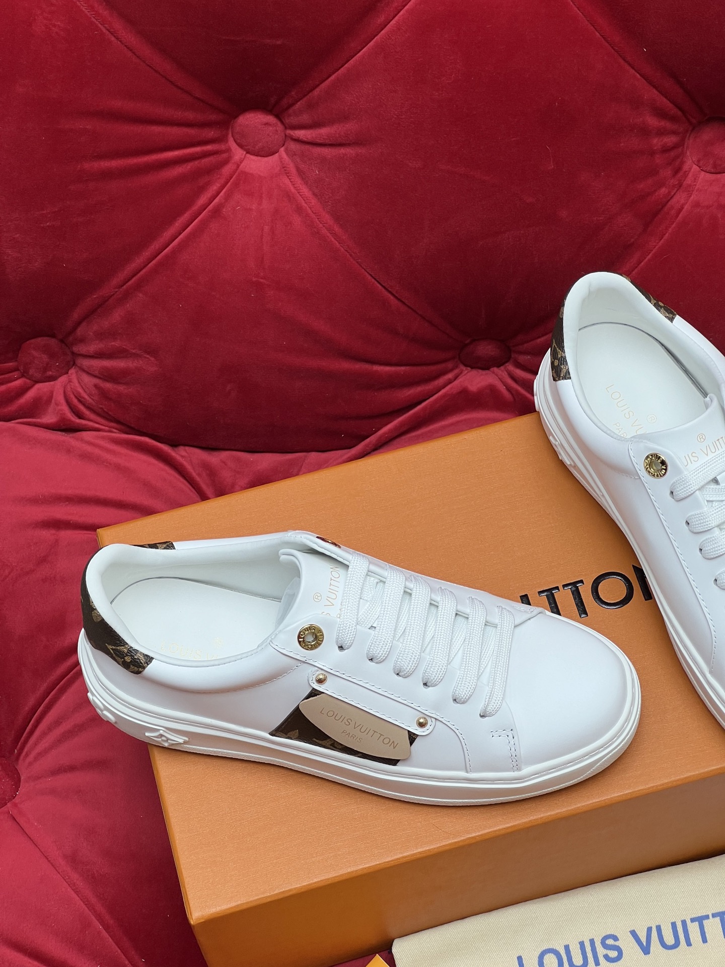 这款鞋子是AAAAA 1:1 质量 (非常棒). 使用了和原版一模一样的材料. 商标部分也保持了和路易威登/Louis Vuitton一样. 图片拍摄是实物鞋子拍摄, 您所收到的实物保证和我们图片一模一样.