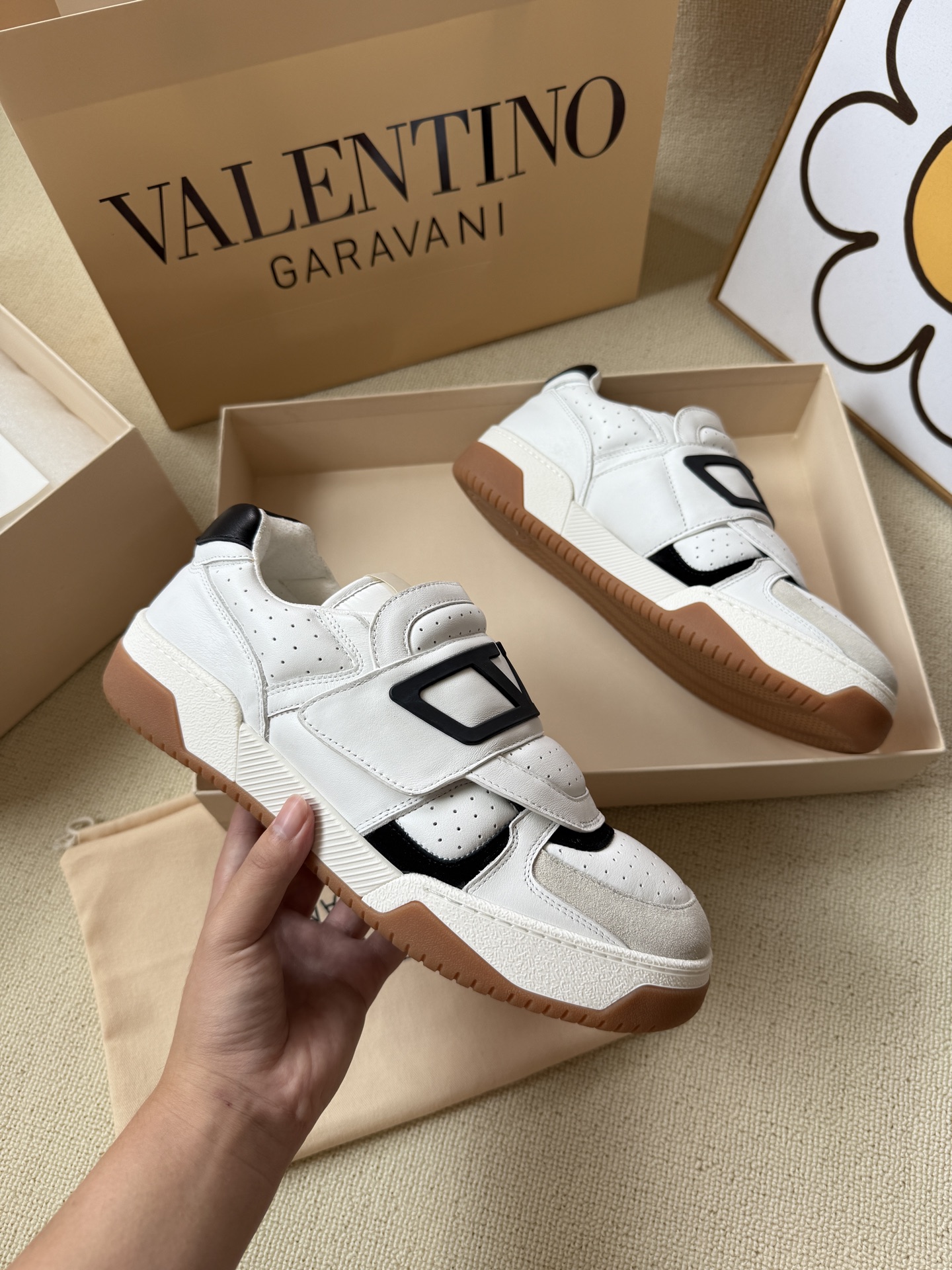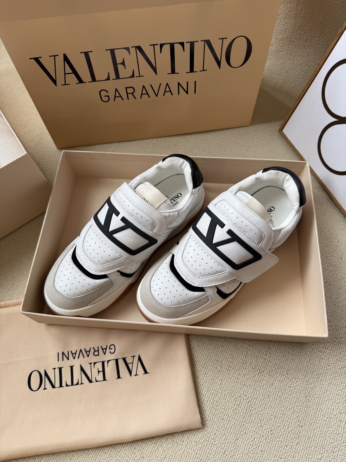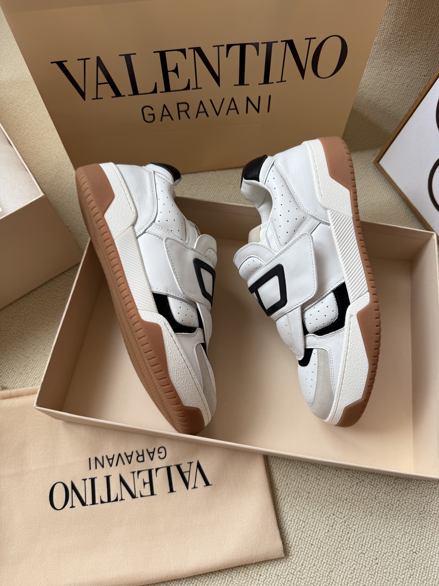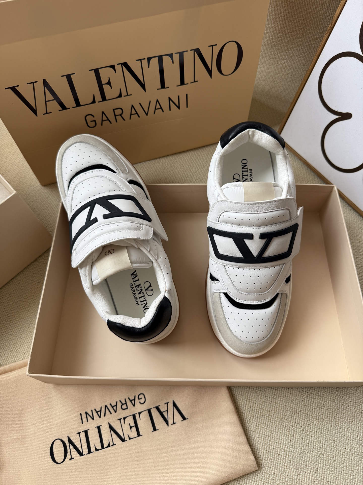 这款鞋子是AAAAA 1:1 质量 (非常棒). 使用了和原版一模一样的材料. 商标部分也保持了和华伦天奴/Valentino一样. 图片拍摄是实物鞋子拍摄, 您所收到的实物保证和我们图片一模一样.