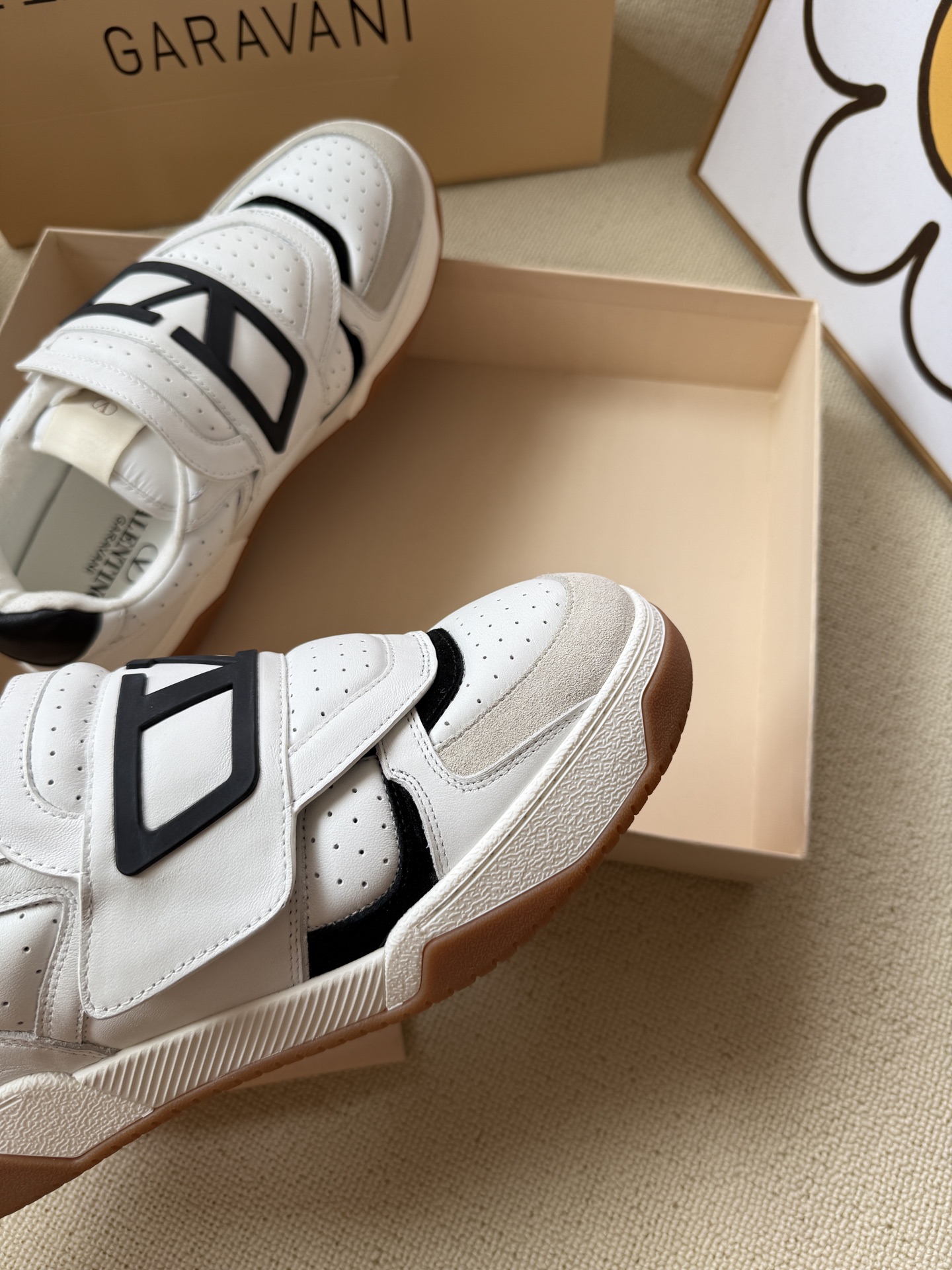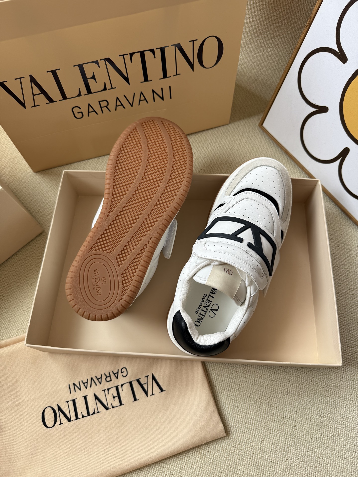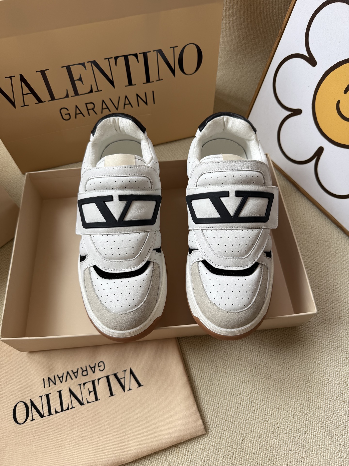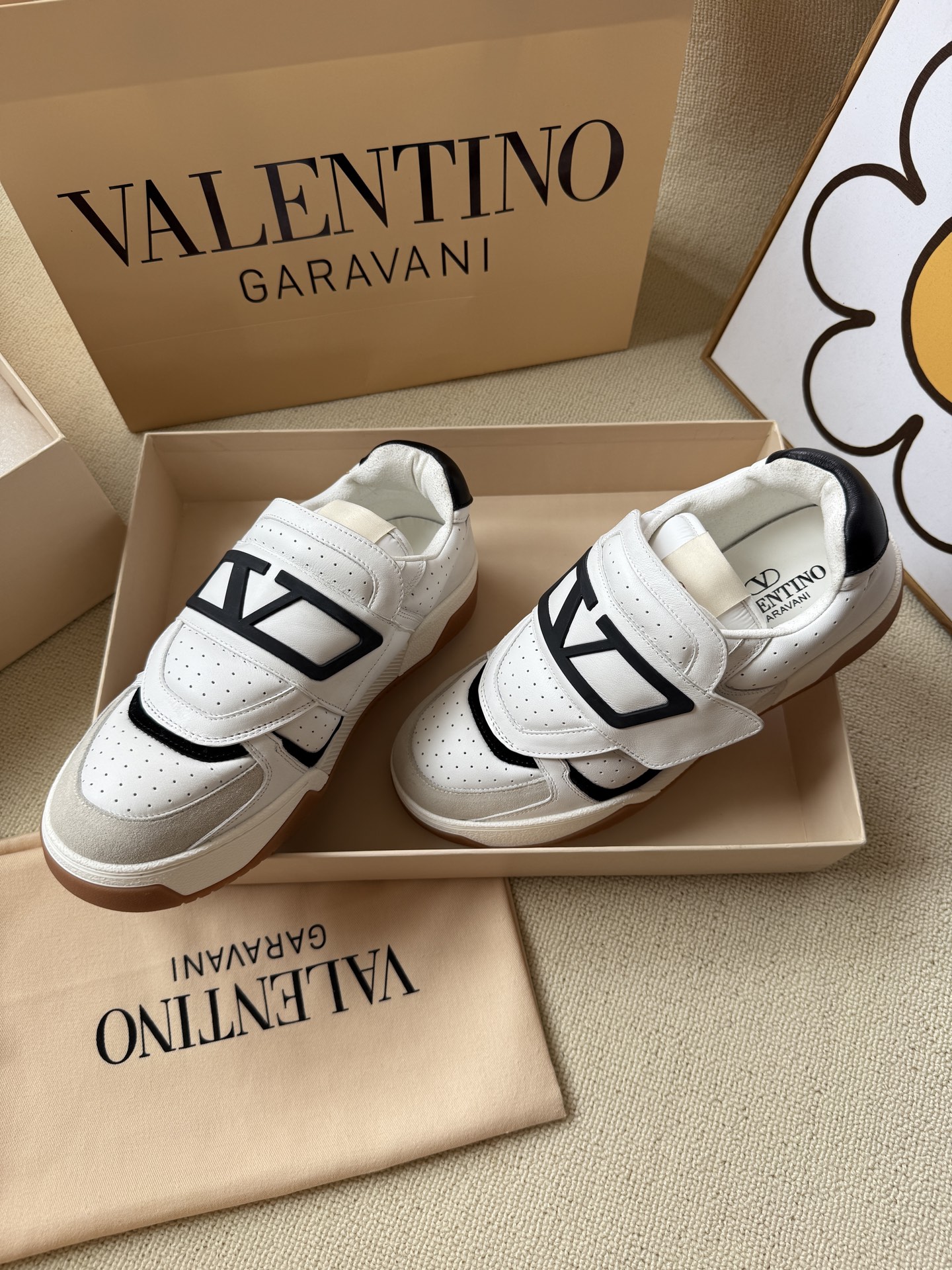 这款鞋子是AAAAA 1:1 质量 (非常棒). 使用了和原版一模一样的材料. 商标部分也保持了和华伦天奴/Valentino一样. 图片拍摄是实物鞋子拍摄, 您所收到的实物保证和我们图片一模一样.