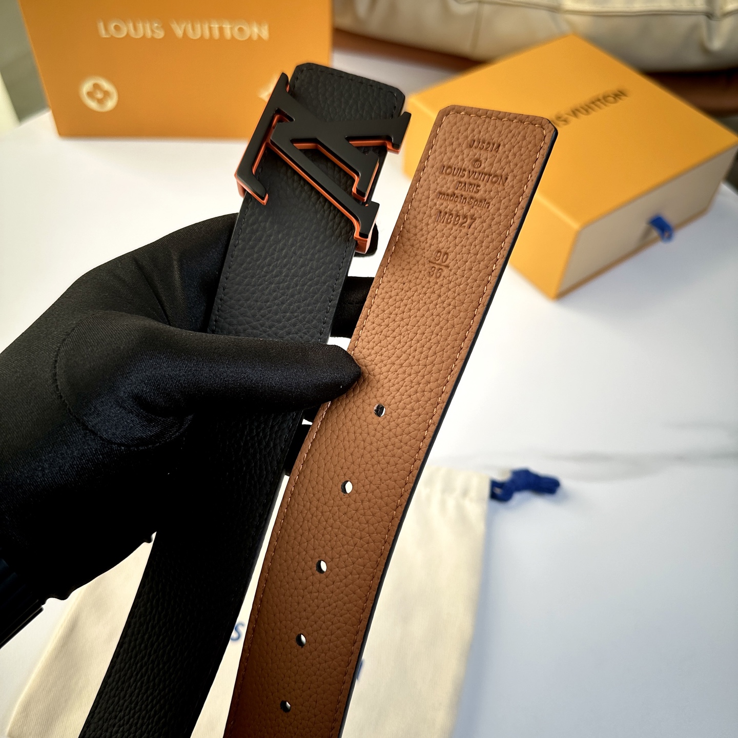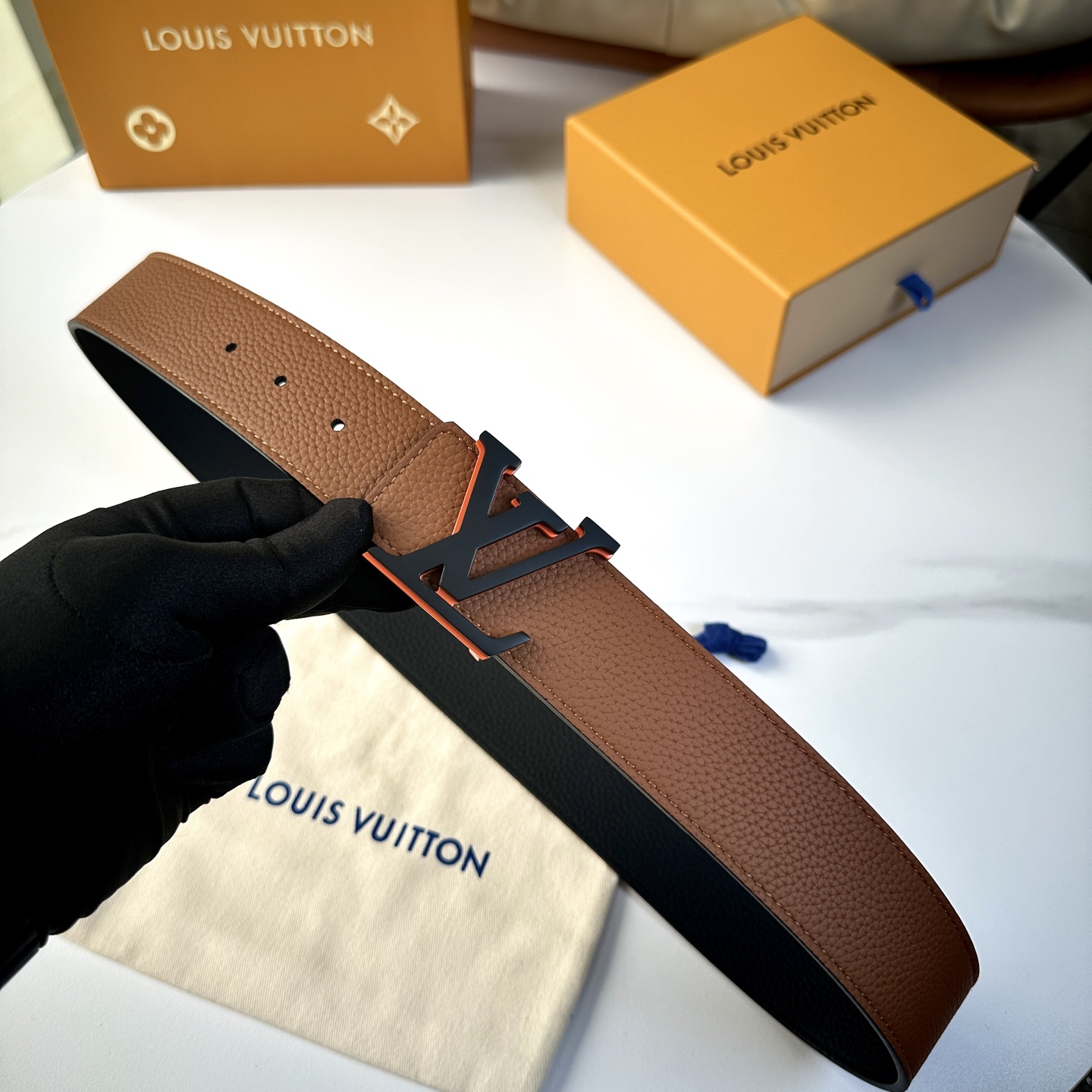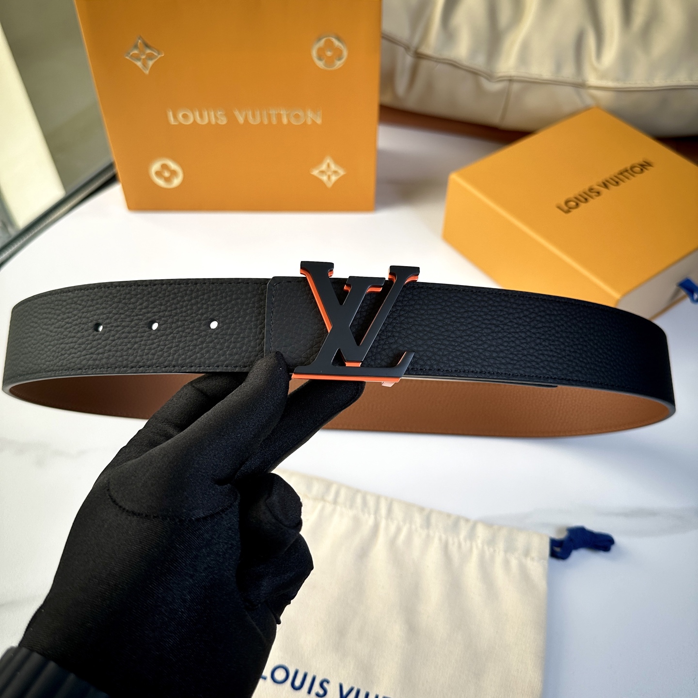 这款皮带是AAAAA 1:1 质量 (非常棒). 使用了和原版一模一样的材料. 商标部分也保持了和一样. 图片拍摄是实物皮带拍摄, 您所收到的实物保证和我们图片一模一样.