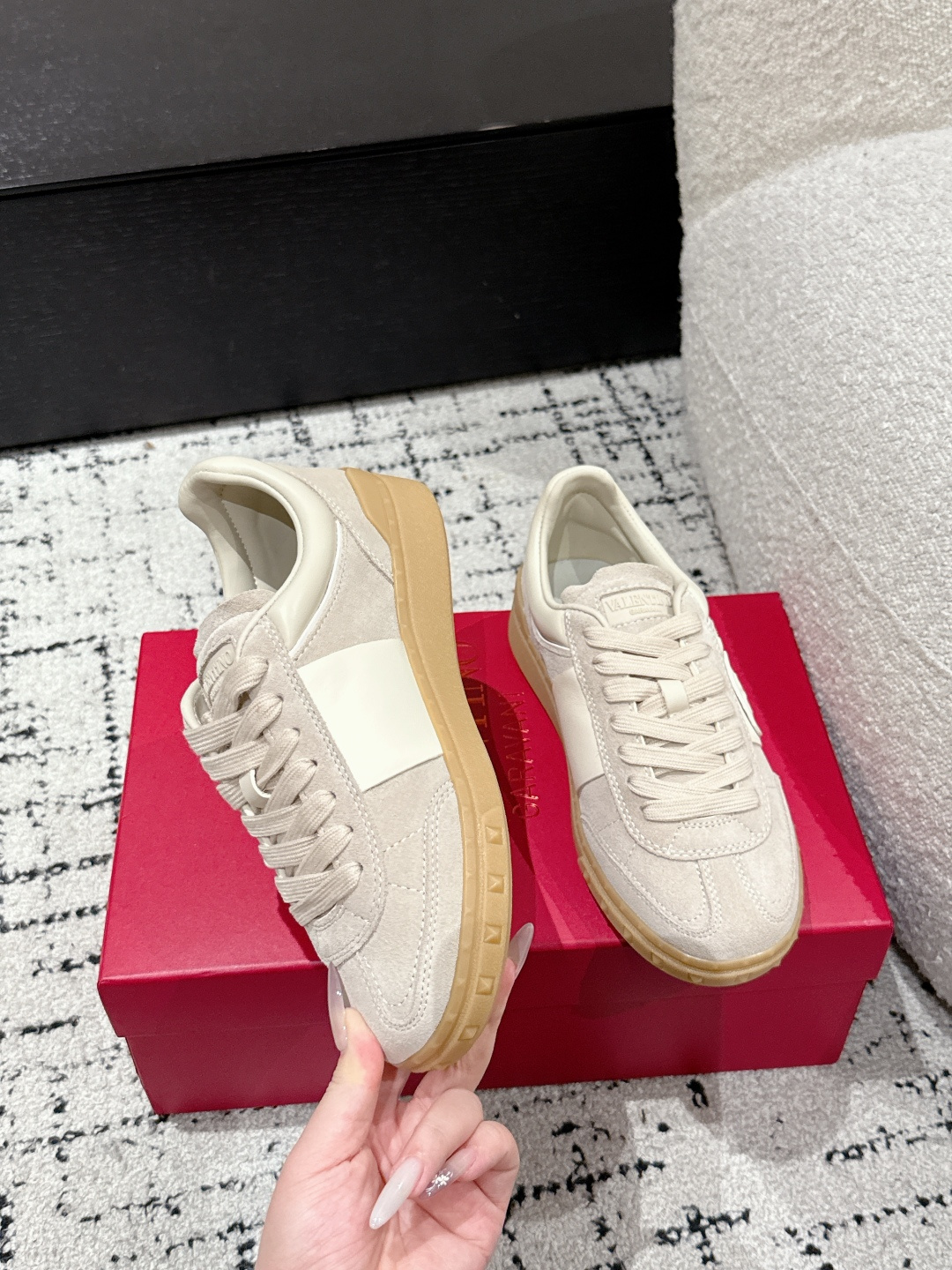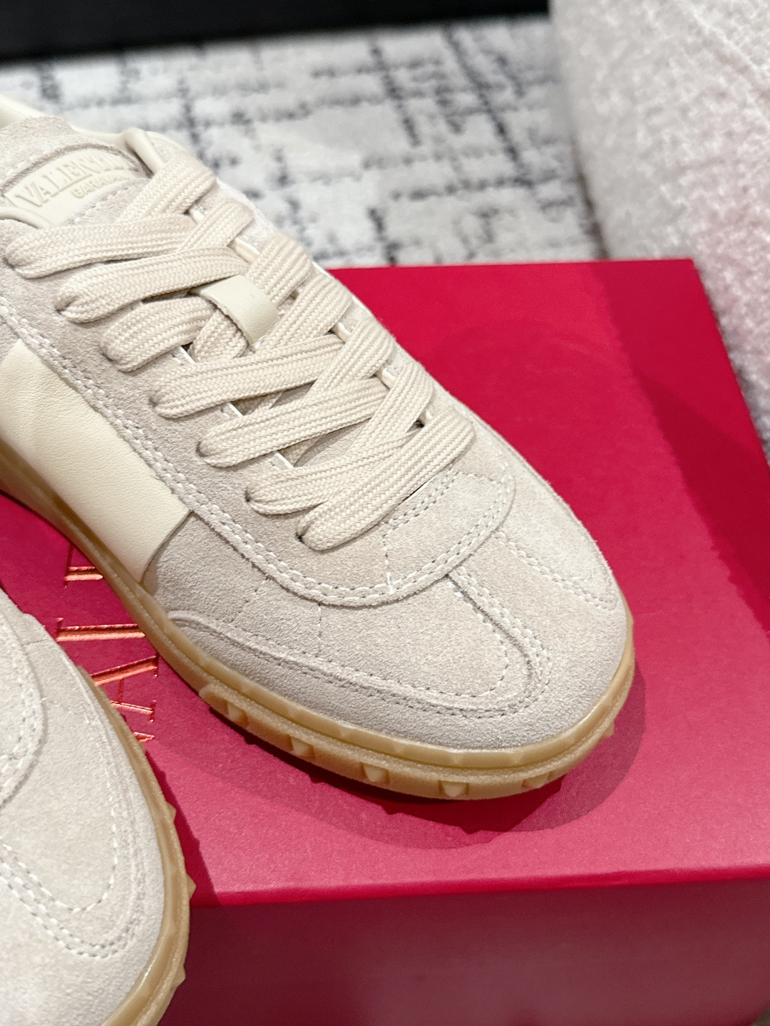 这款鞋子是AAAAA 1:1 质量 (非常棒). 使用了和原版一模一样的材料. 商标部分也保持了和华伦天奴/Valentino一样. 图片拍摄是实物鞋子拍摄, 您所收到的实物保证和我们图片一模一样.