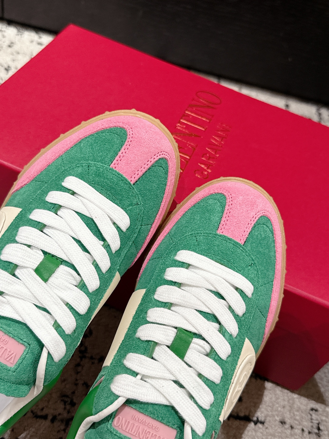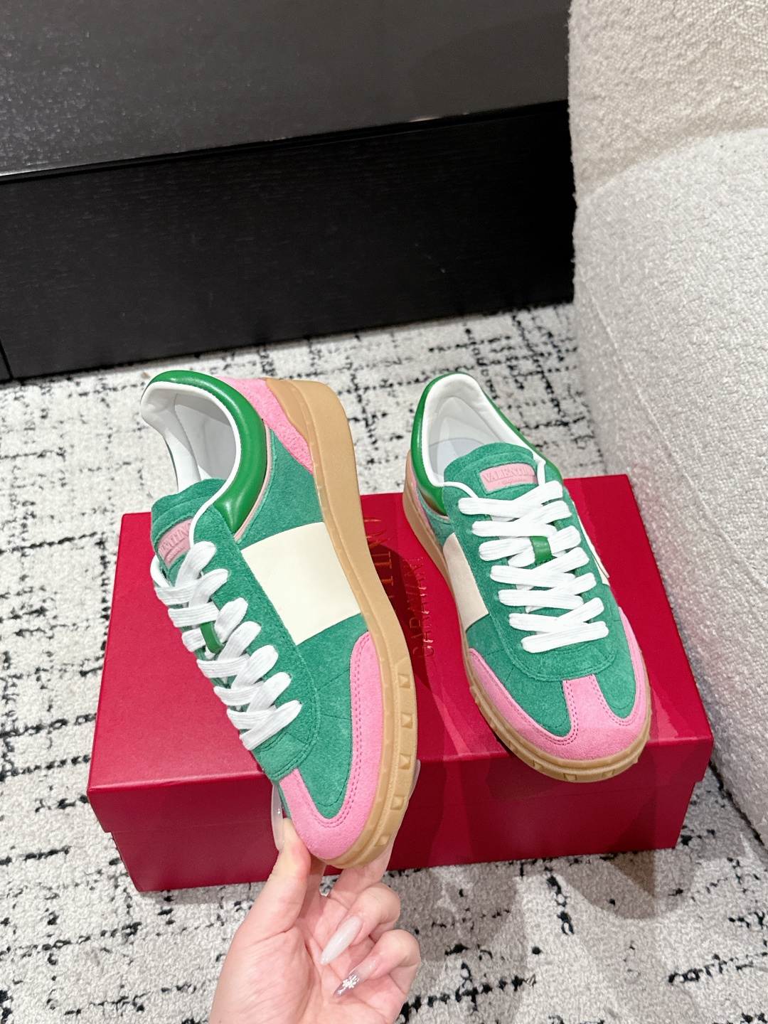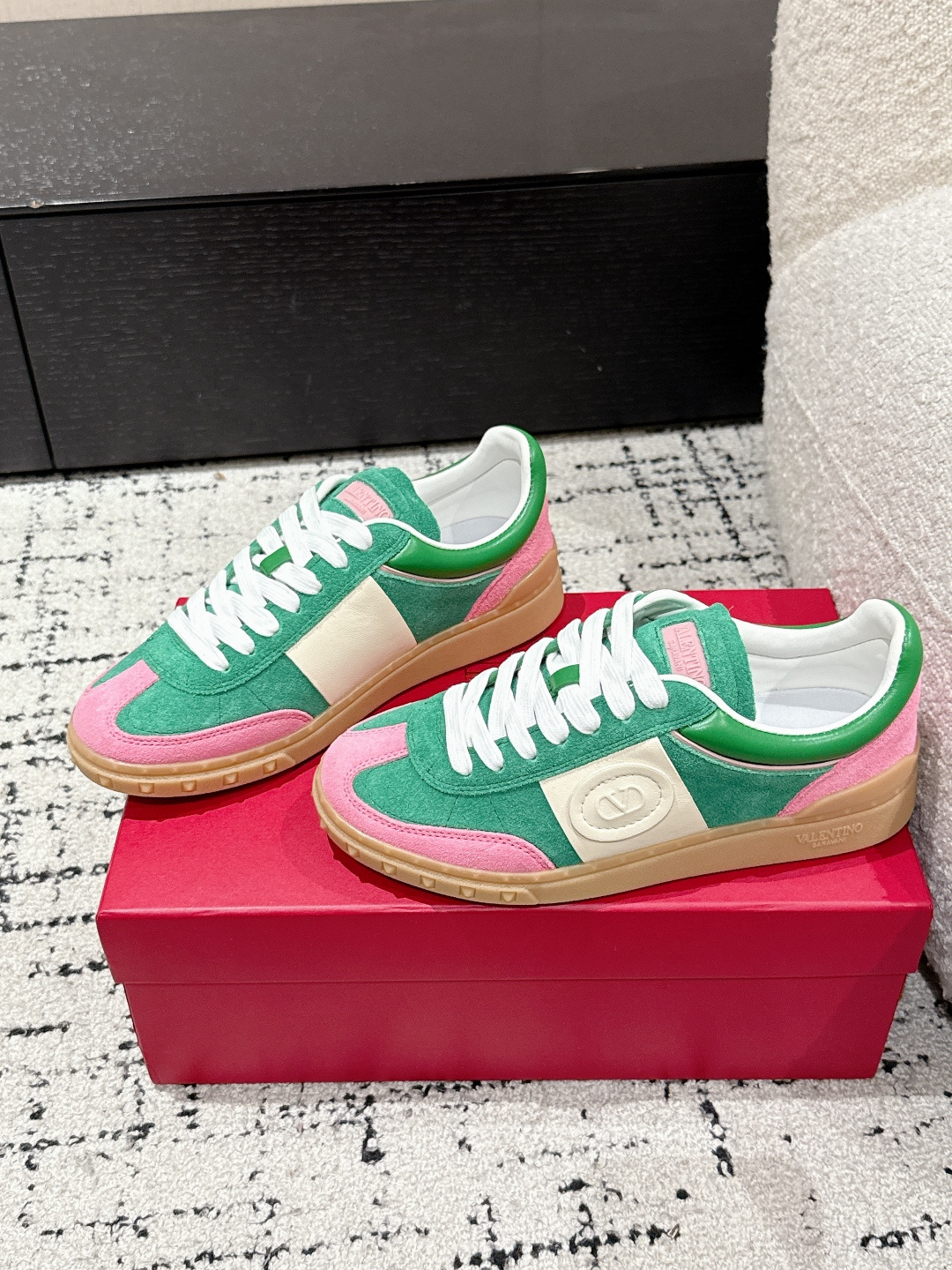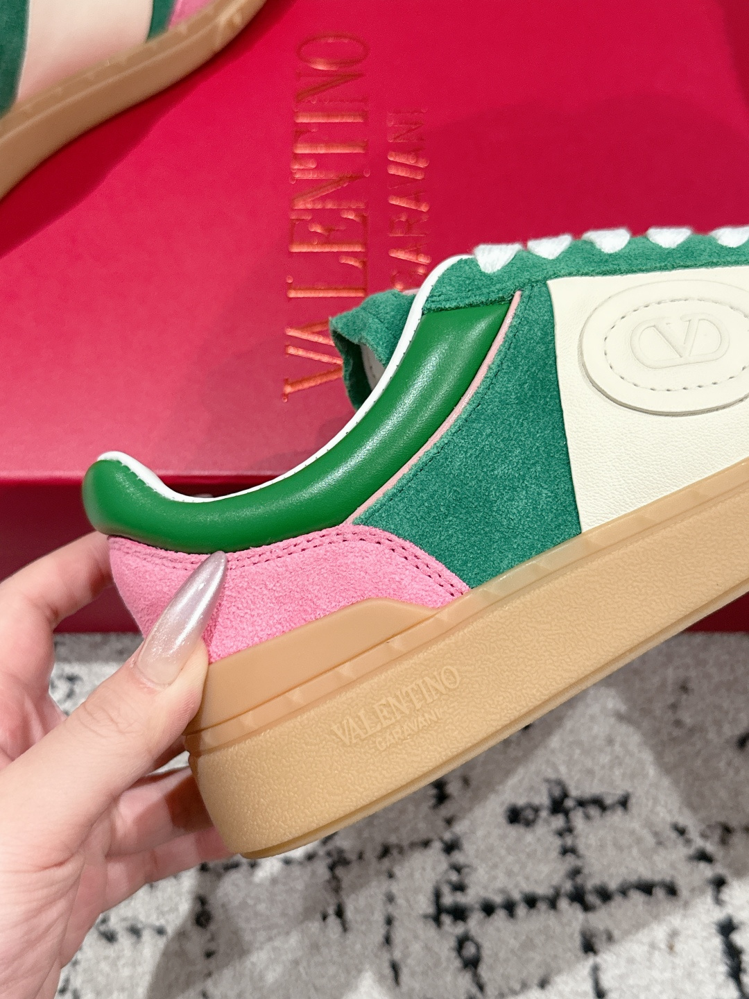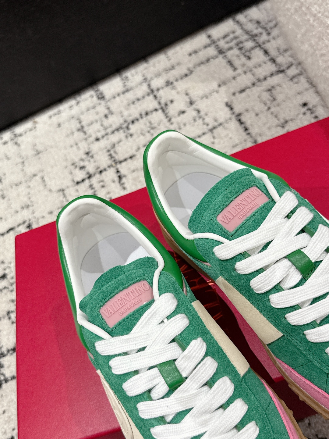 这款鞋子是AAAAA 1:1 质量 (非常棒). 使用了和原版一模一样的材料. 商标部分也保持了和华伦天奴/Valentino一样. 图片拍摄是实物鞋子拍摄, 您所收到的实物保证和我们图片一模一样.