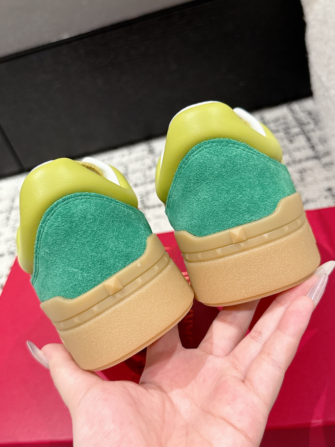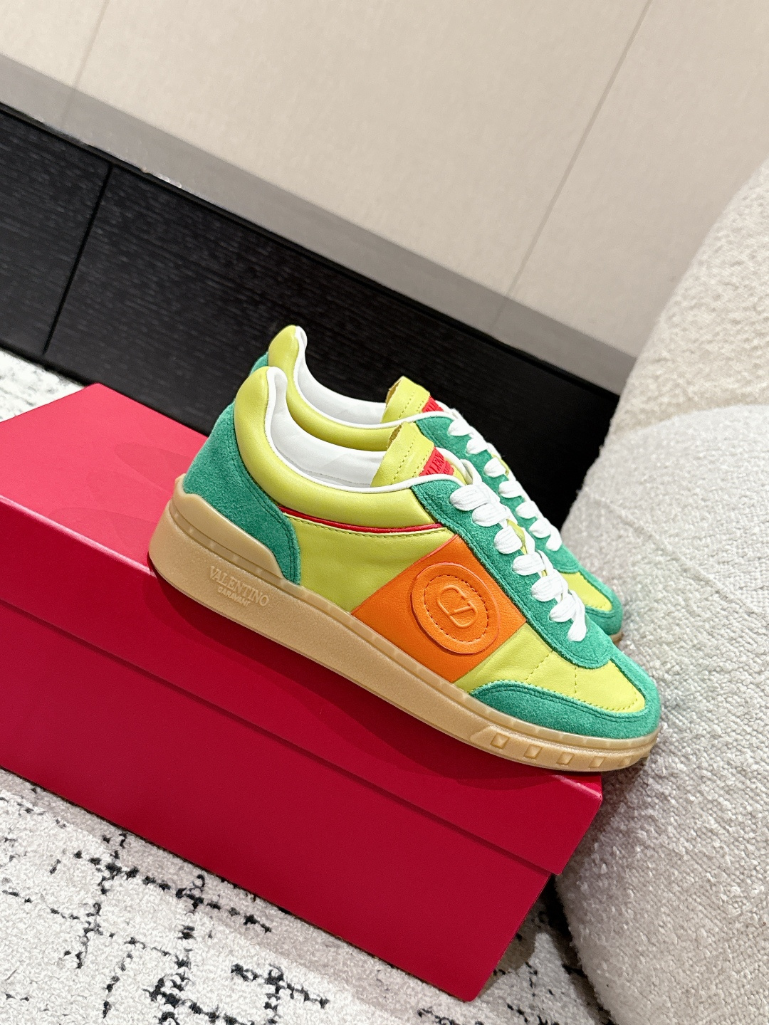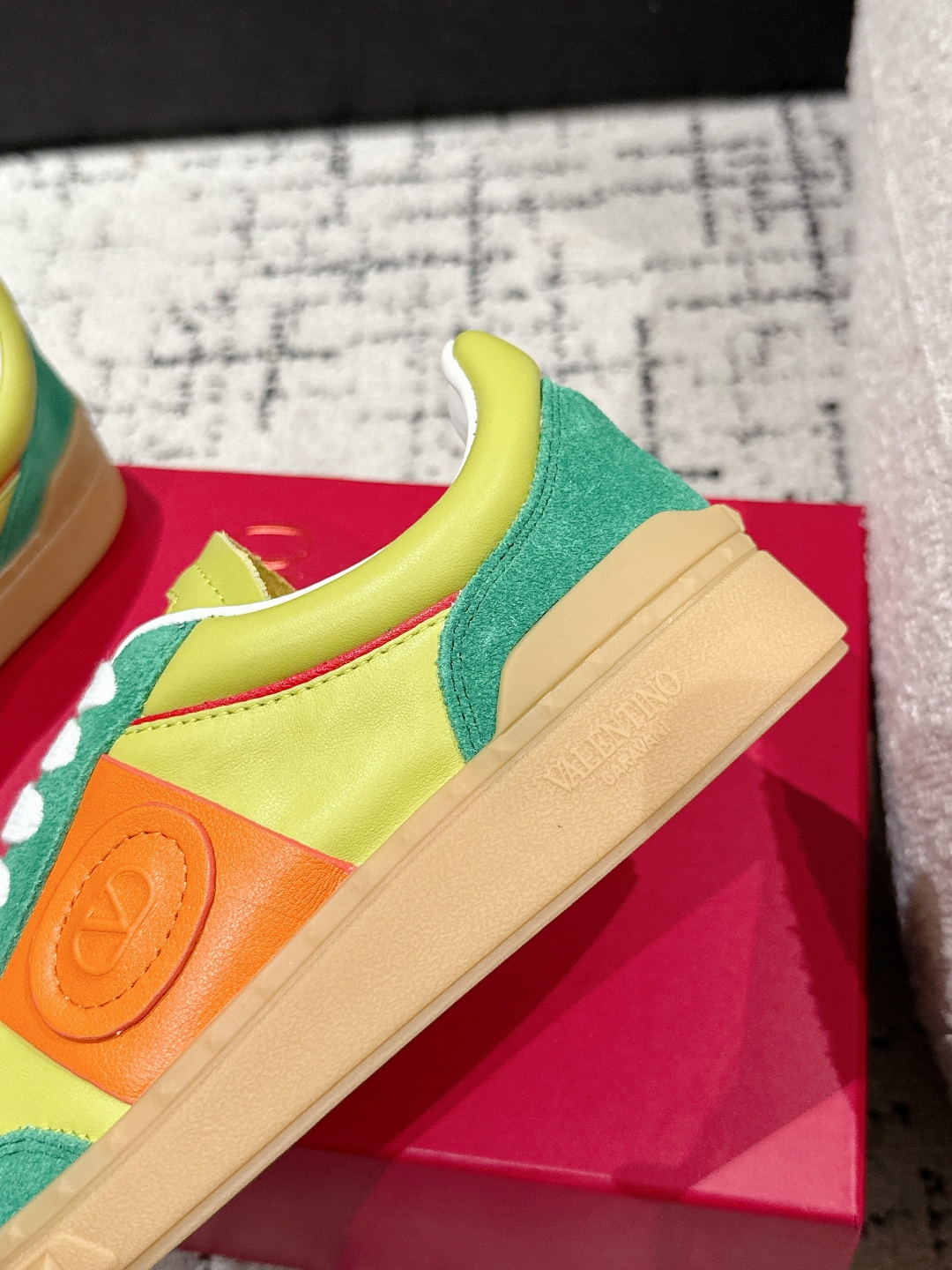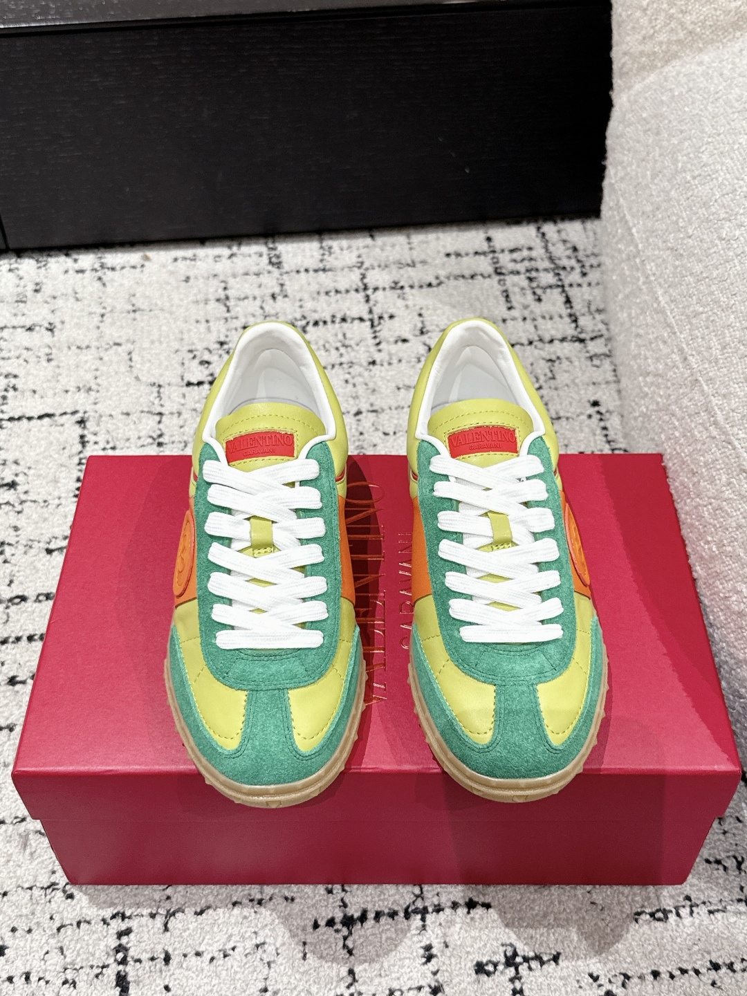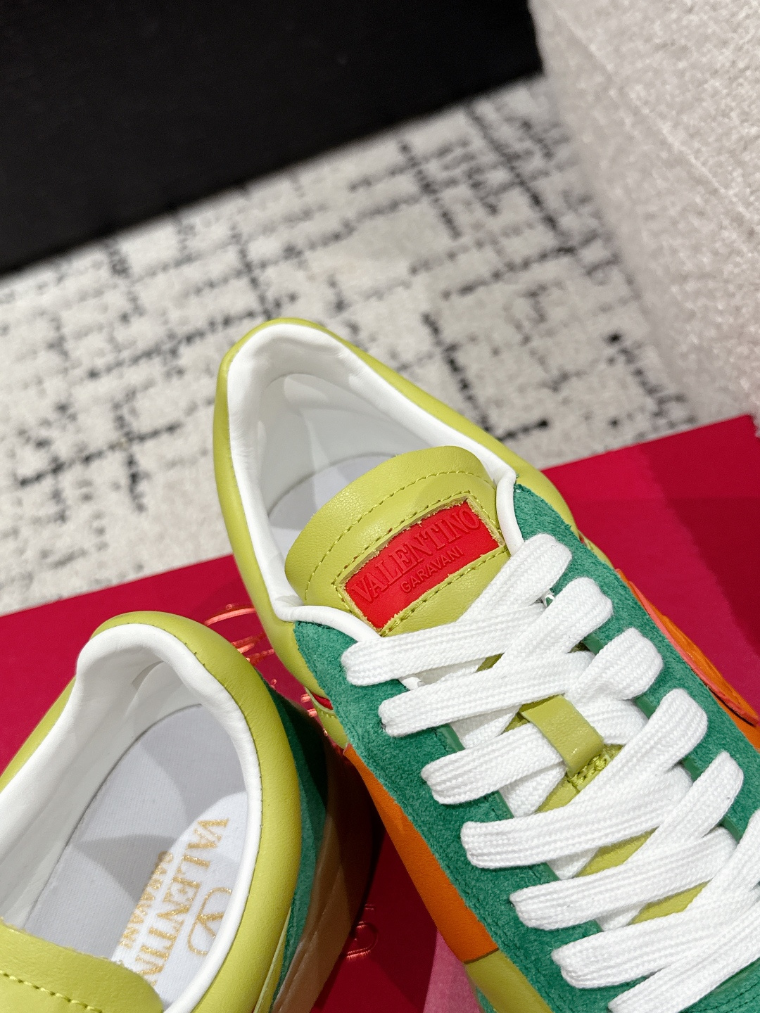 这款鞋子是AAAAA 1:1 质量 (非常棒). 使用了和原版一模一样的材料. 商标部分也保持了和华伦天奴/Valentino一样. 图片拍摄是实物鞋子拍摄, 您所收到的实物保证和我们图片一模一样.