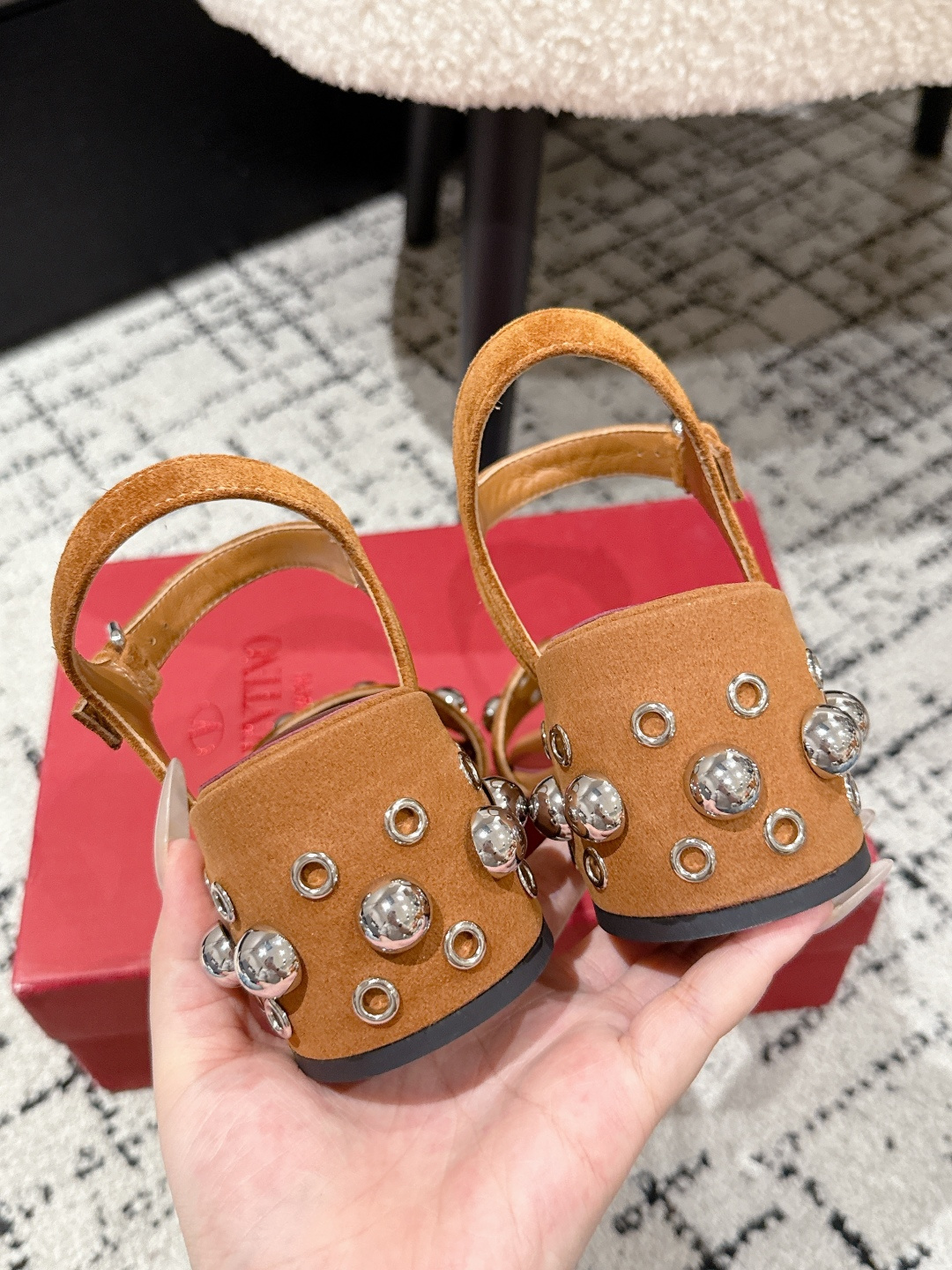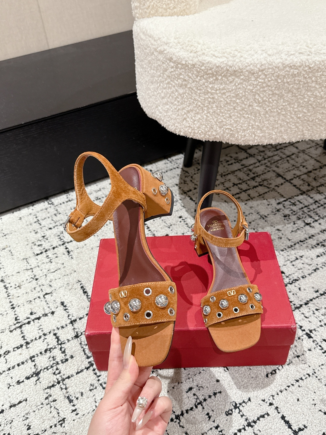 这款鞋子是AAAAA 1:1 质量 (非常棒). 使用了和原版一模一样的材料. 商标部分也保持了和华伦天奴/Valentino一样. 图片拍摄是实物鞋子拍摄, 您所收到的实物保证和我们图片一模一样.