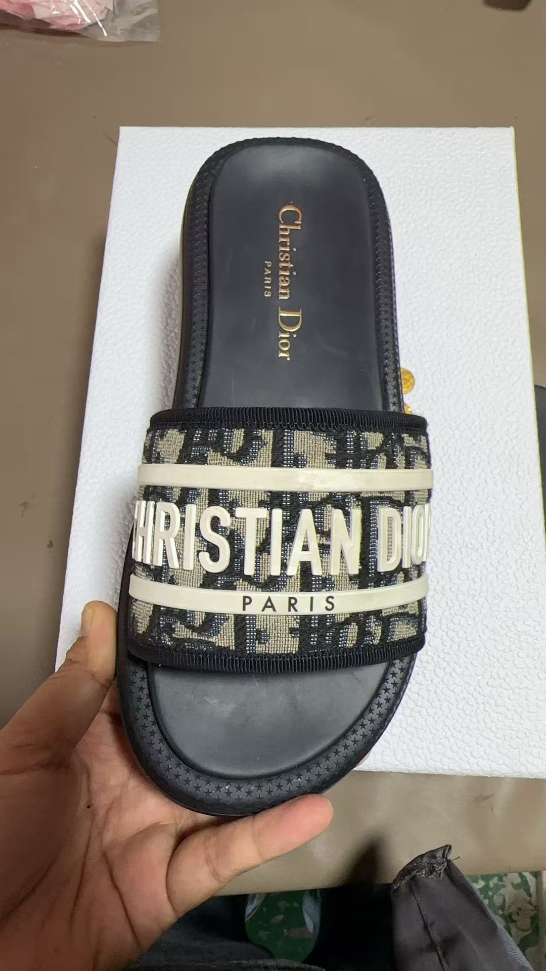 这款鞋子是AAAAA 1:1 质量 (非常棒). 使用了和原版一模一样的材料. 商标部分也保持了和迪奥/Dior一样. 图片拍摄是实物鞋子拍摄, 您所收到的实物保证和我们图片一模一样.
