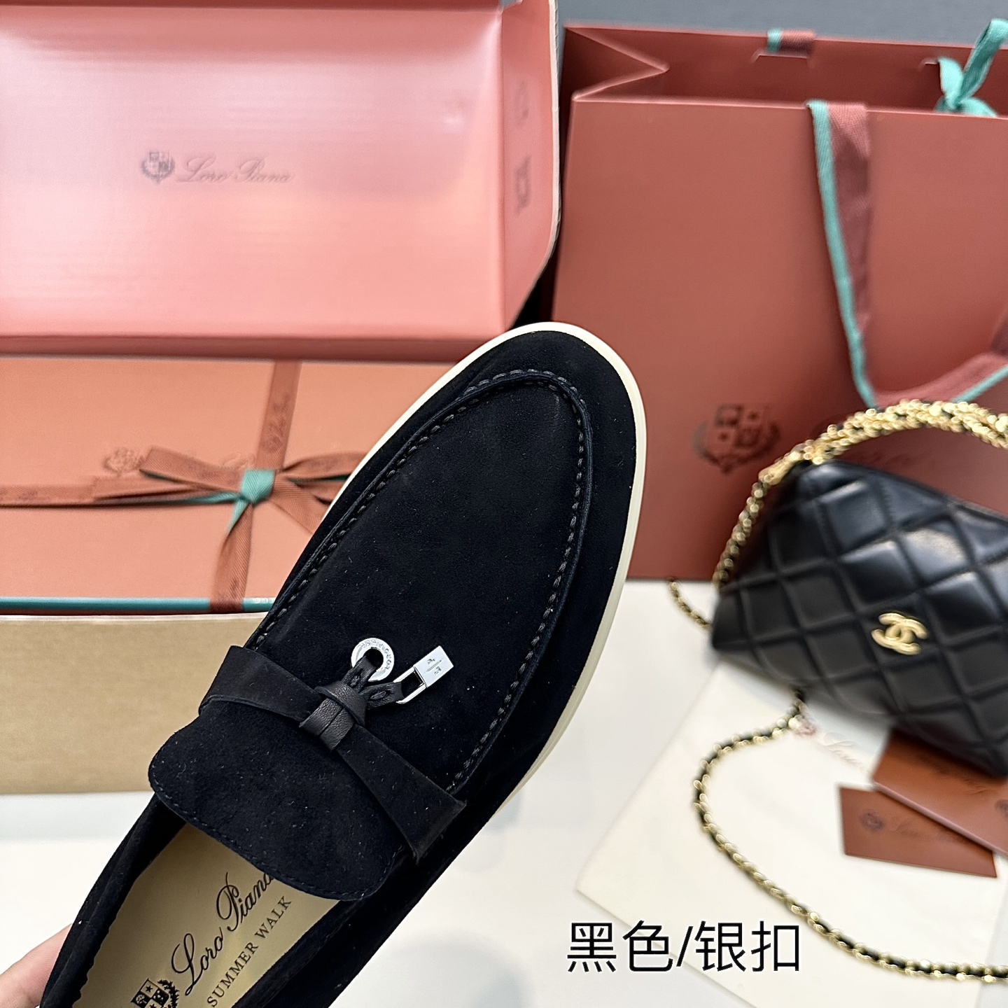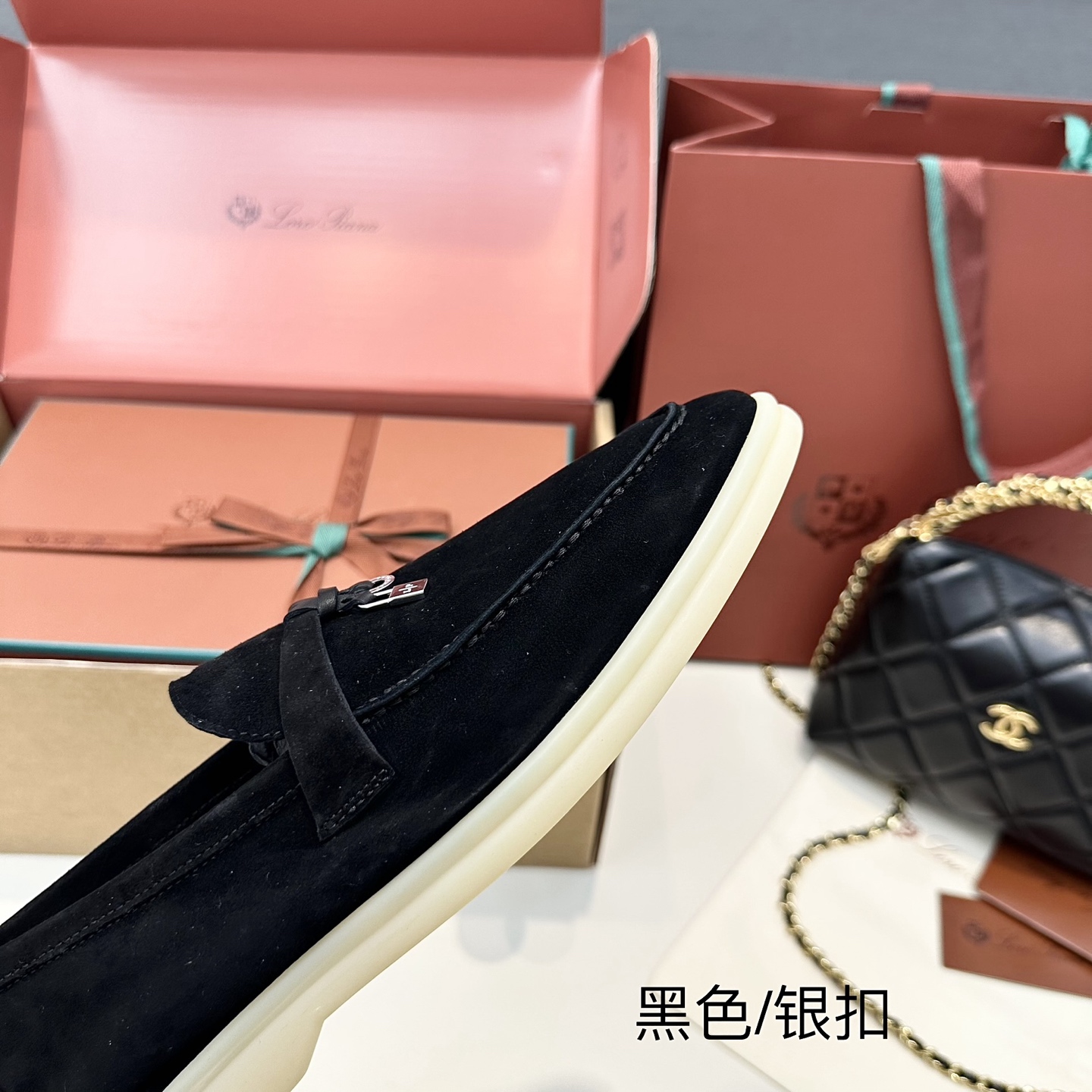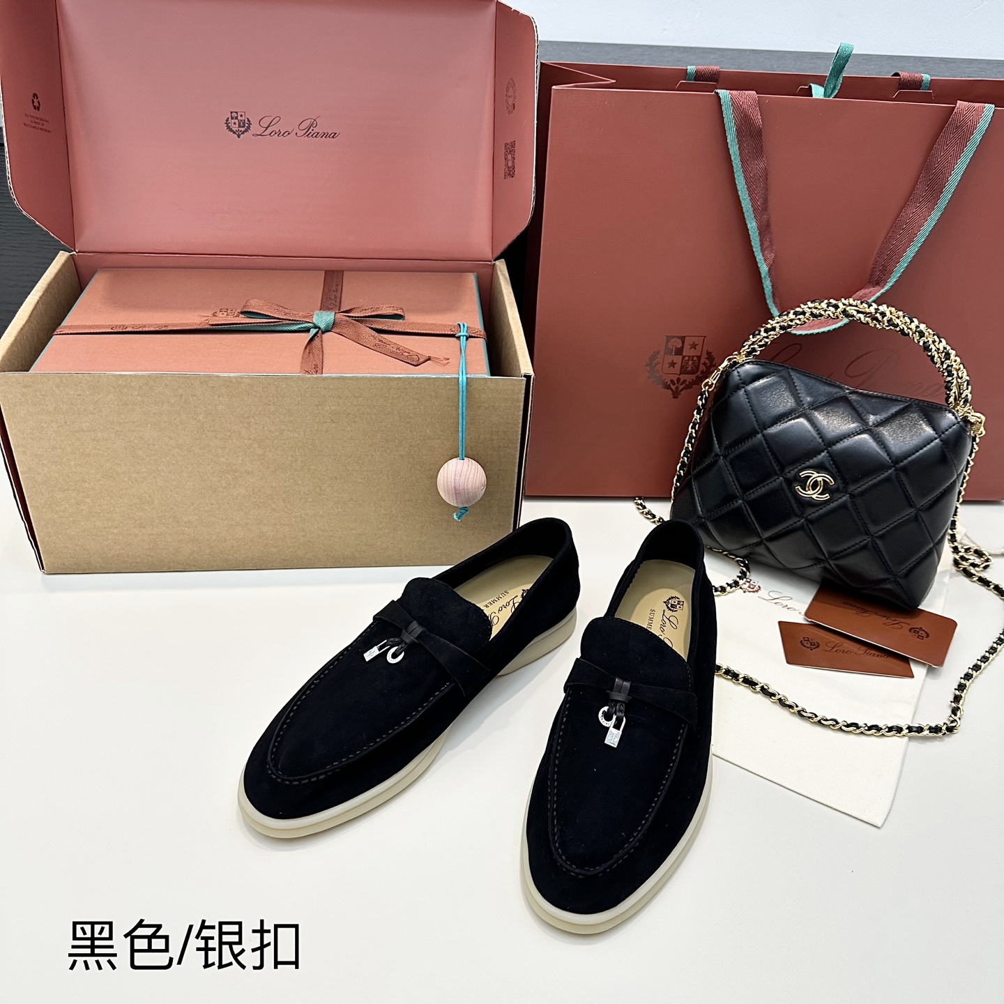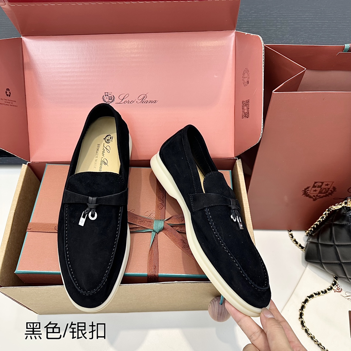 这款鞋子是AAAAA 1:1 质量 (非常棒). 使用了和原版一模一样的材料. 商标部分也保持了和洛罗皮亚纳/Loro Piana一样. 图片拍摄是实物鞋子拍摄, 您所收到的实物保证和我们图片一模一样.