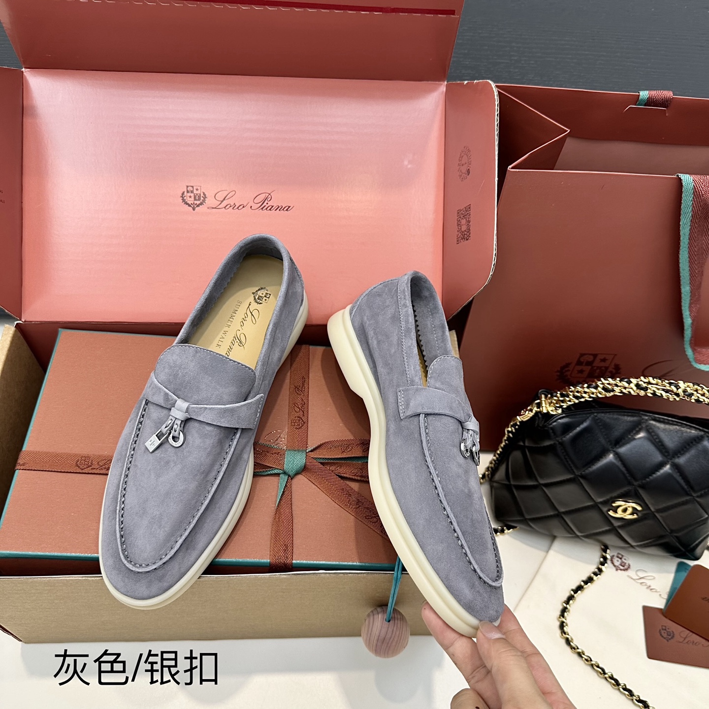 这款鞋子是AAAAA 1:1 质量 (非常棒). 使用了和原版一模一样的材料. 商标部分也保持了和洛罗皮亚纳/Loro Piana一样. 图片拍摄是实物鞋子拍摄, 您所收到的实物保证和我们图片一模一样.