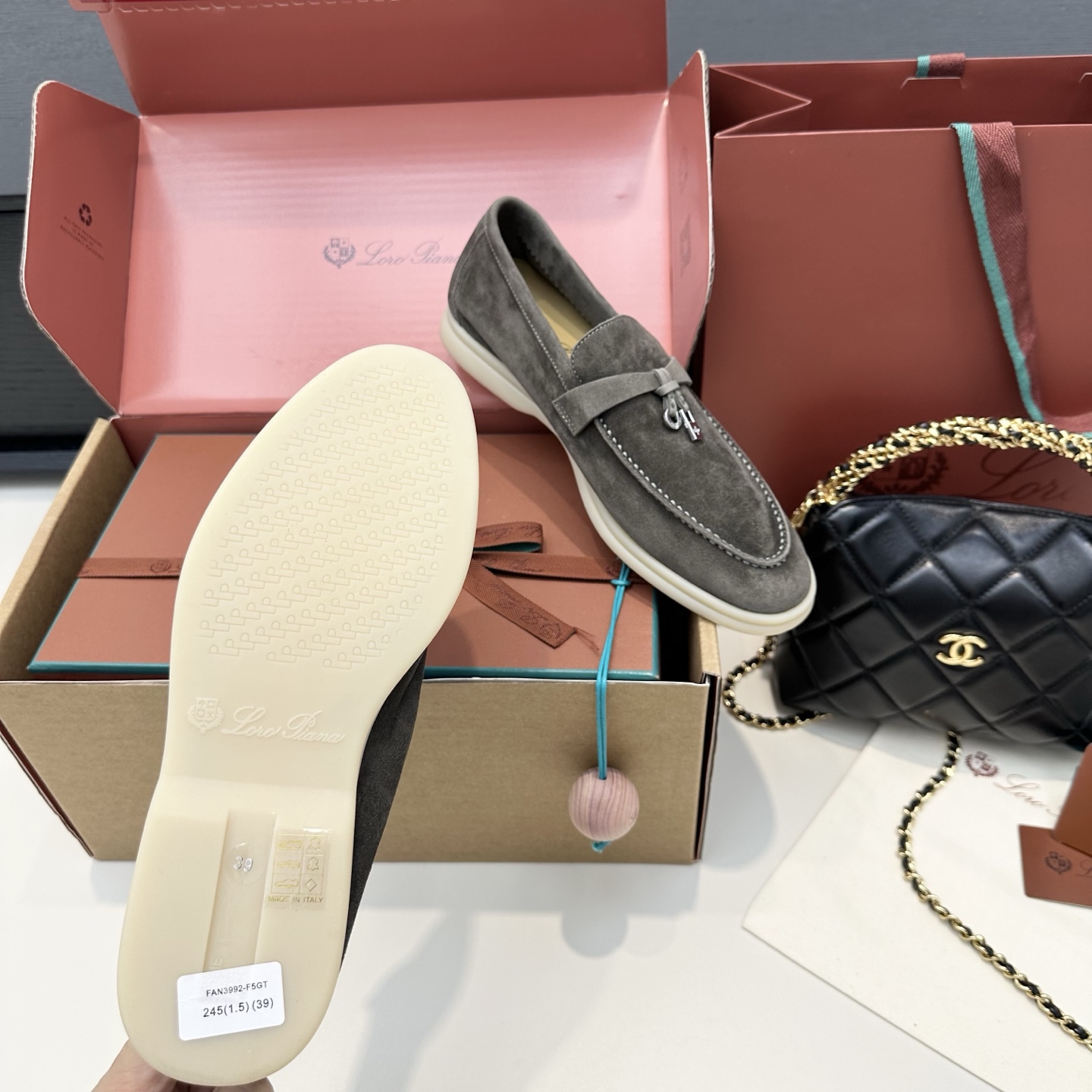 这款鞋子是AAAAA 1:1 质量 (非常棒). 使用了和原版一模一样的材料. 商标部分也保持了和洛罗皮亚纳/Loro Piana一样. 图片拍摄是实物鞋子拍摄, 您所收到的实物保证和我们图片一模一样.
