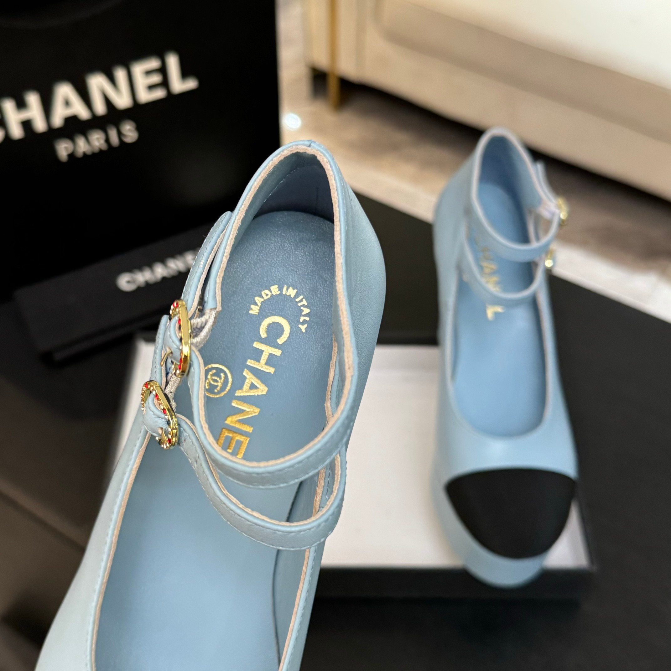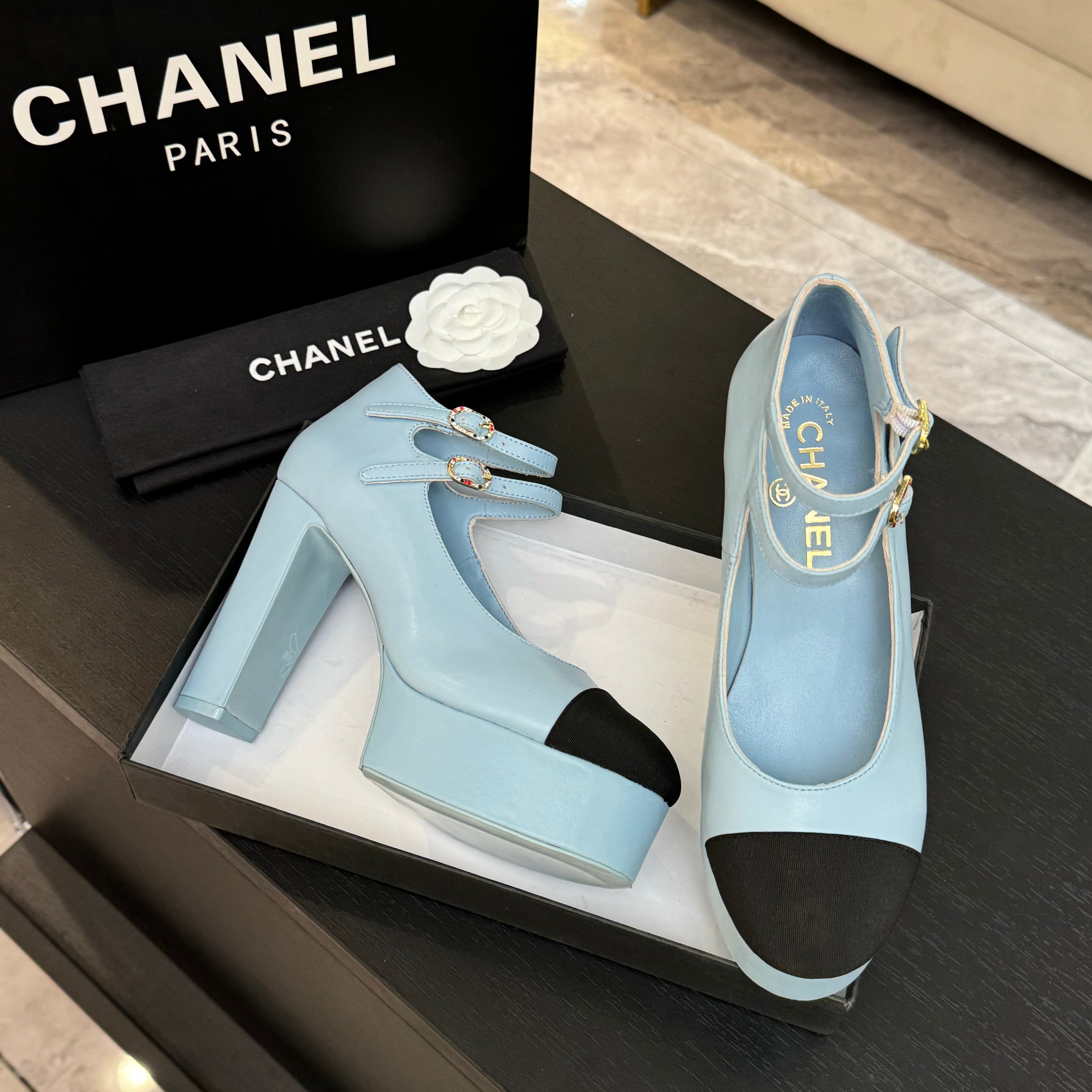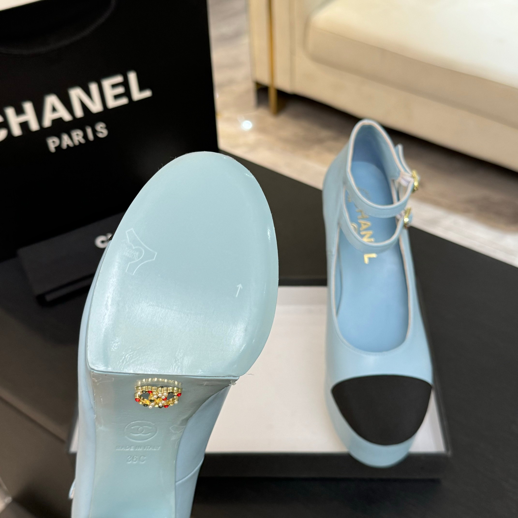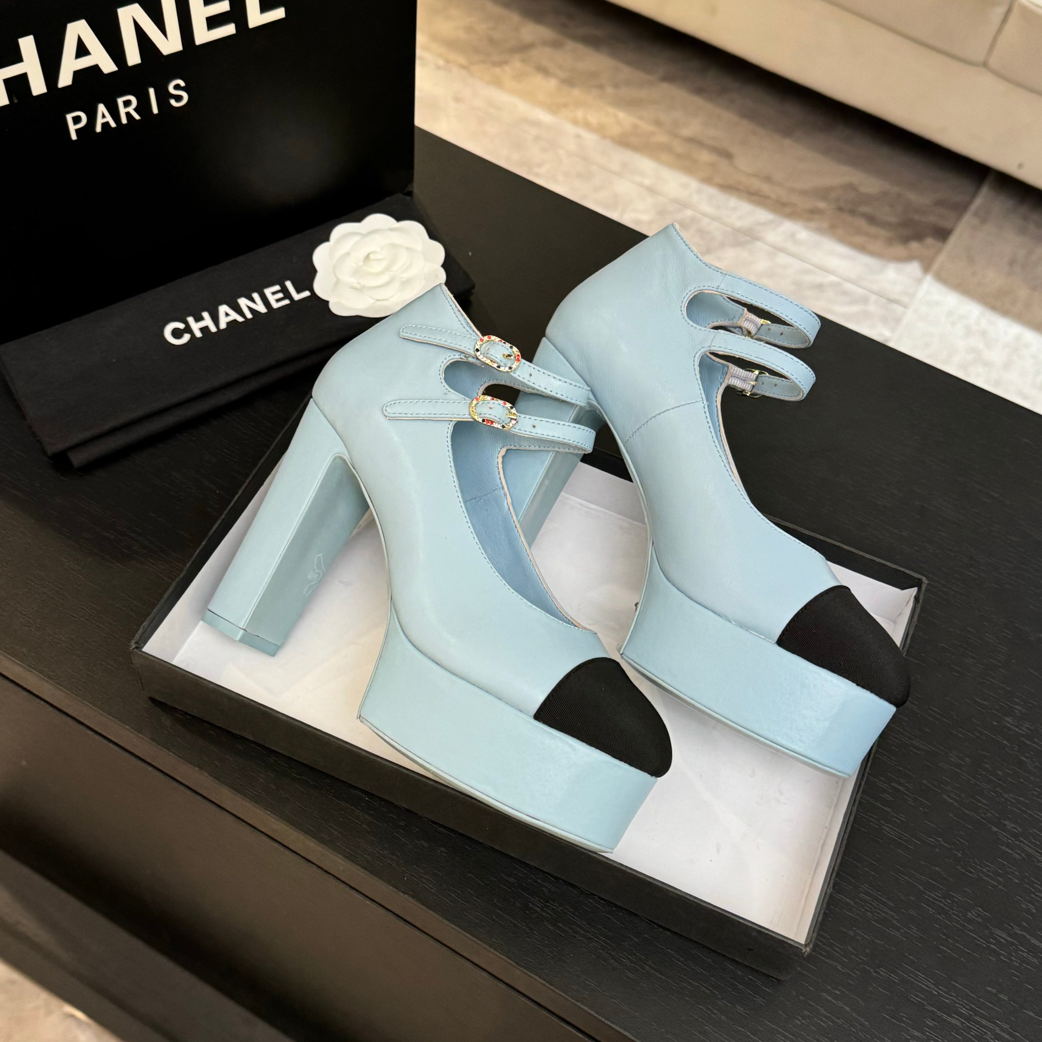 这款鞋子是AAAAA 1:1 质量 (非常棒). 使用了和原版一模一样的材料. 商标部分也保持了和香奈儿/Chanel一样. 图片拍摄是实物鞋子拍摄, 您所收到的实物保证和我们图片一模一样.