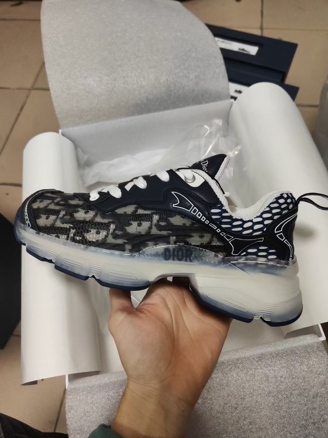 这款鞋子是AAAAA 1:1 质量 (非常棒). 使用了和原版一模一样的材料. 商标部分也保持了和迪奥/Dior一样. 图片拍摄是实物鞋子拍摄, 您所收到的实物保证和我们图片一模一样.