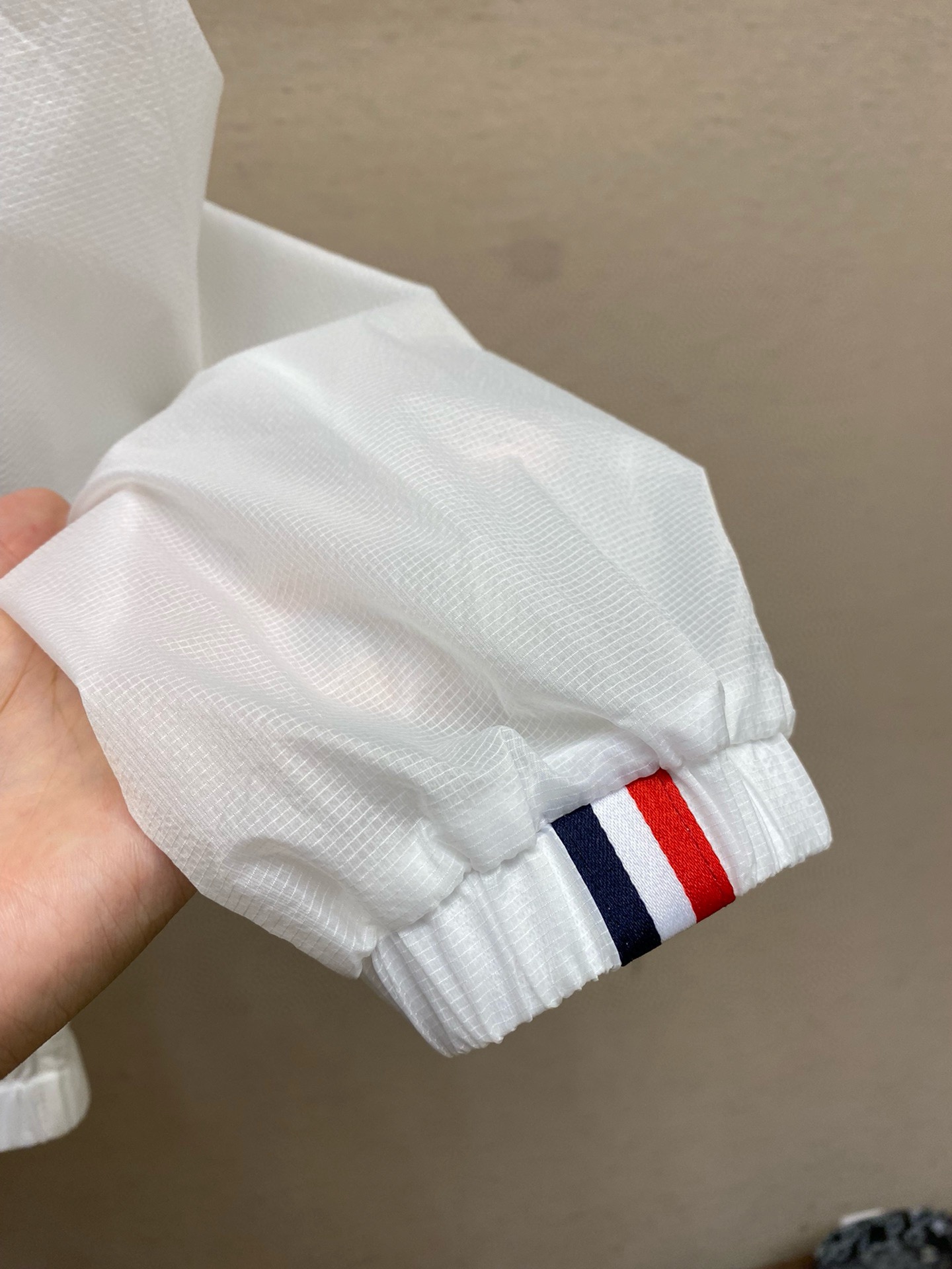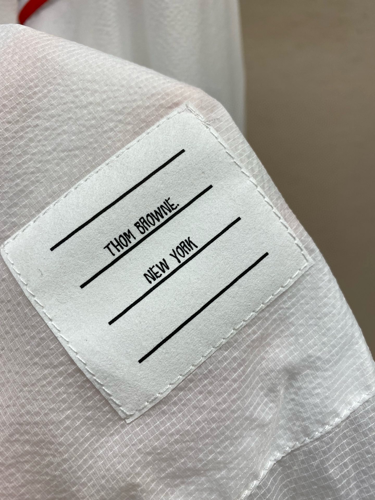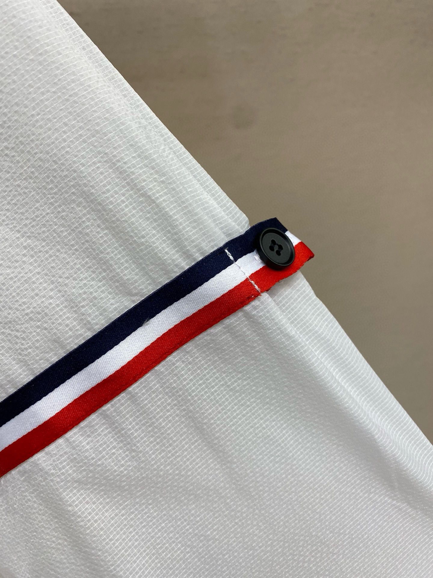 这款衣服是AAAAA 1:1 质量 (非常棒). 使用了和原版一模一样的材料. 商标部分也保持了和汤姆布朗/Thom Browne一样. 图片拍摄是实物衣服拍摄, 您所收到的实物保证和我们图片一模一样.