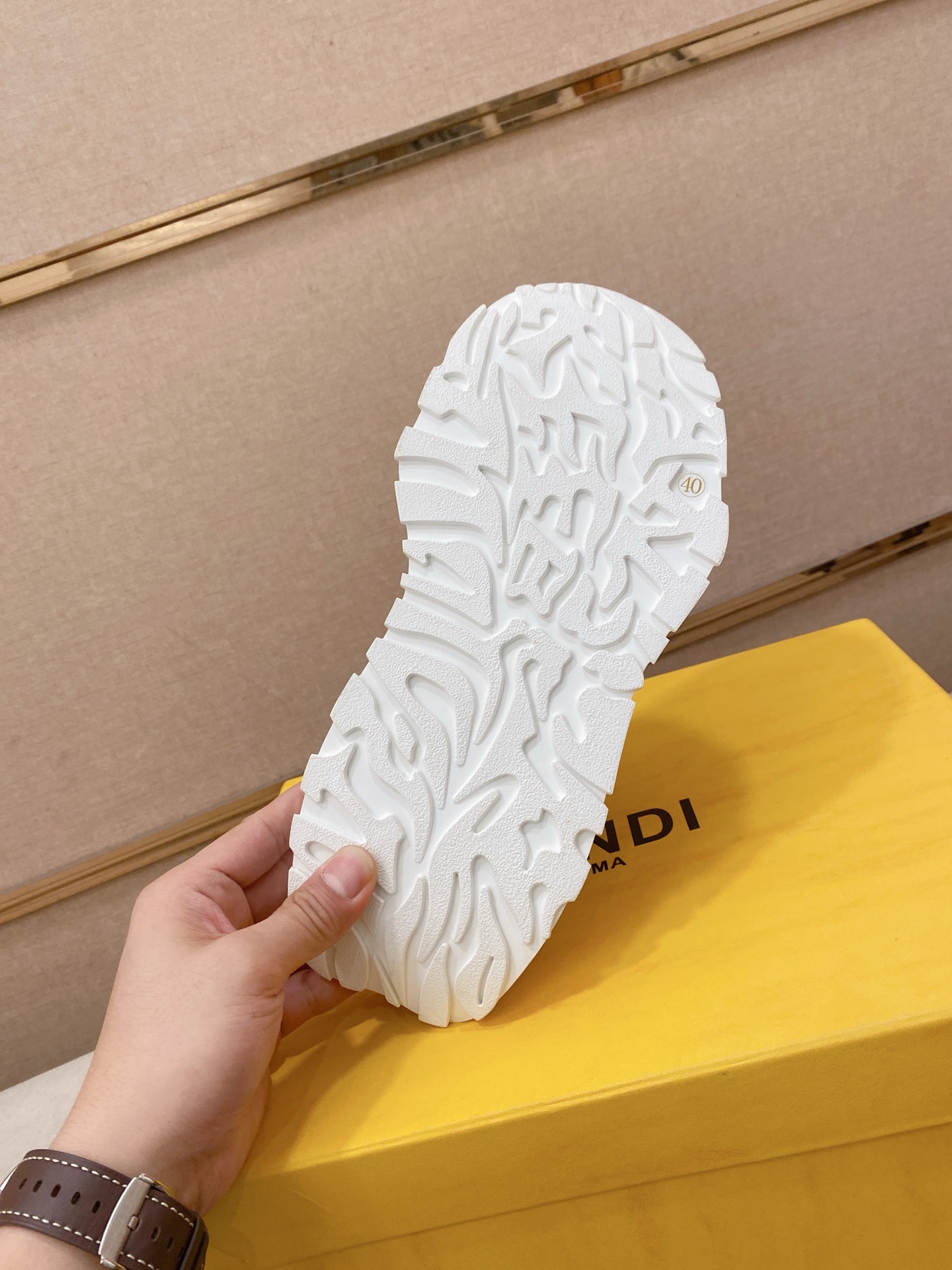 这款鞋子是AAAAA 1:1 质量 (非常棒). 使用了和原版一模一样的材料. 商标部分也保持了和芬迪/Fendi一样. 图片拍摄是实物鞋子拍摄, 您所收到的实物保证和我们图片一模一样.