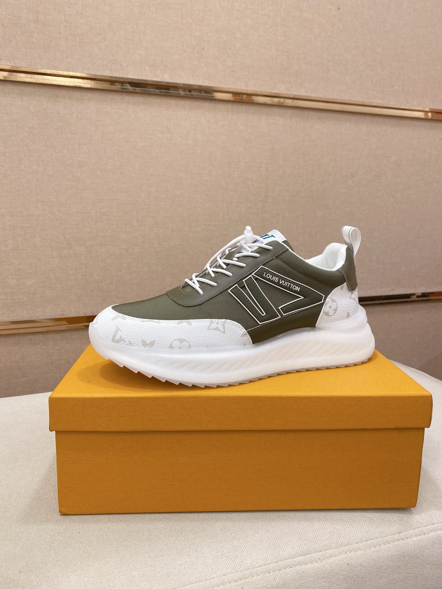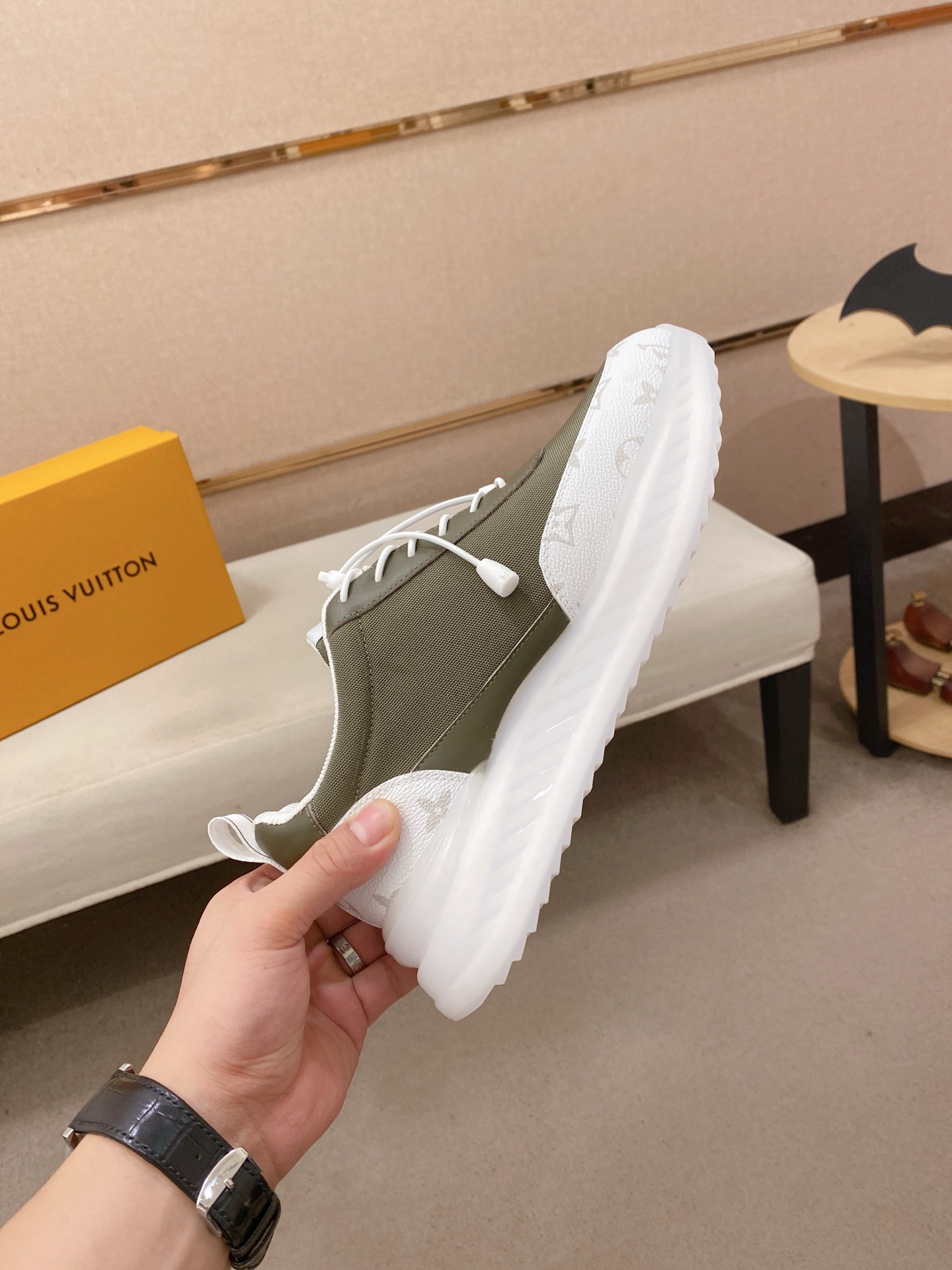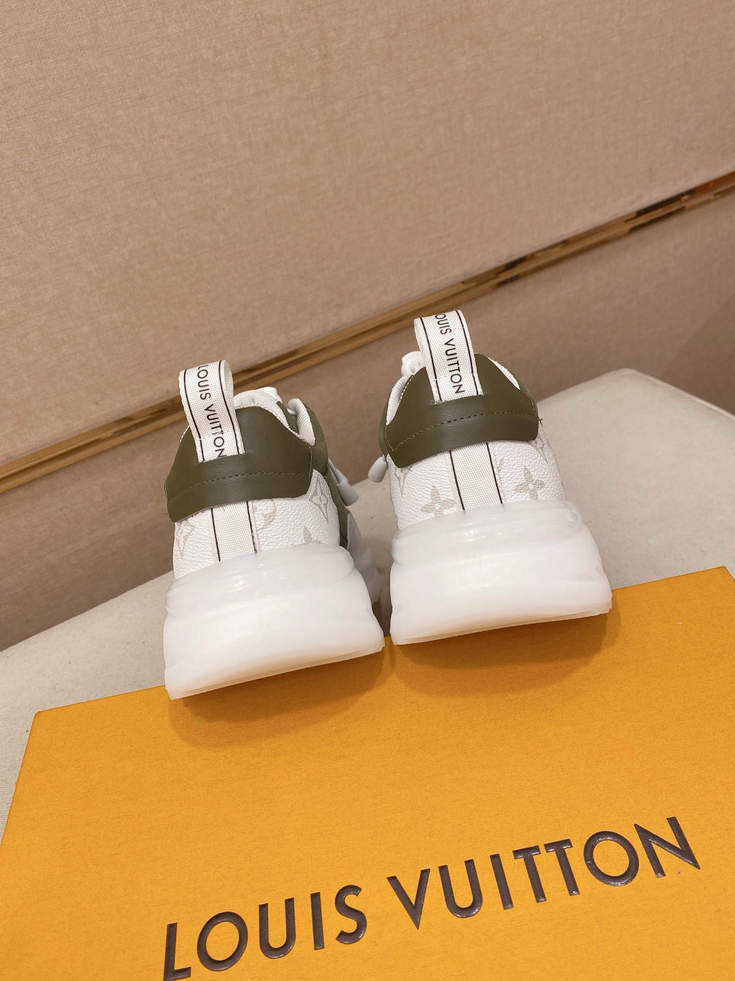 这款鞋子是AAAAA 1:1 质量 (非常棒). 使用了和原版一模一样的材料. 商标部分也保持了和路易威登/Louis Vuitton一样. 图片拍摄是实物鞋子拍摄, 您所收到的实物保证和我们图片一模一样.