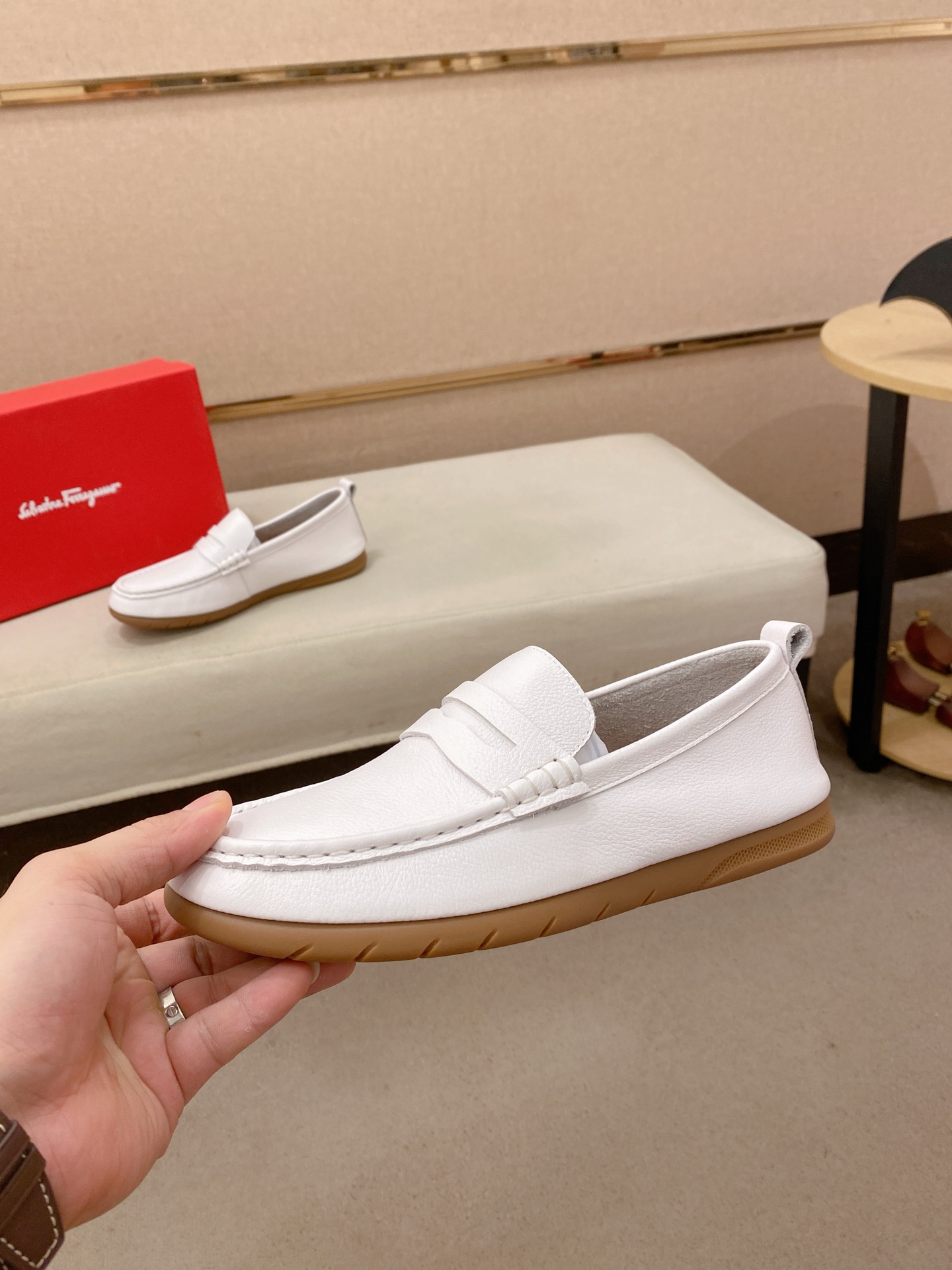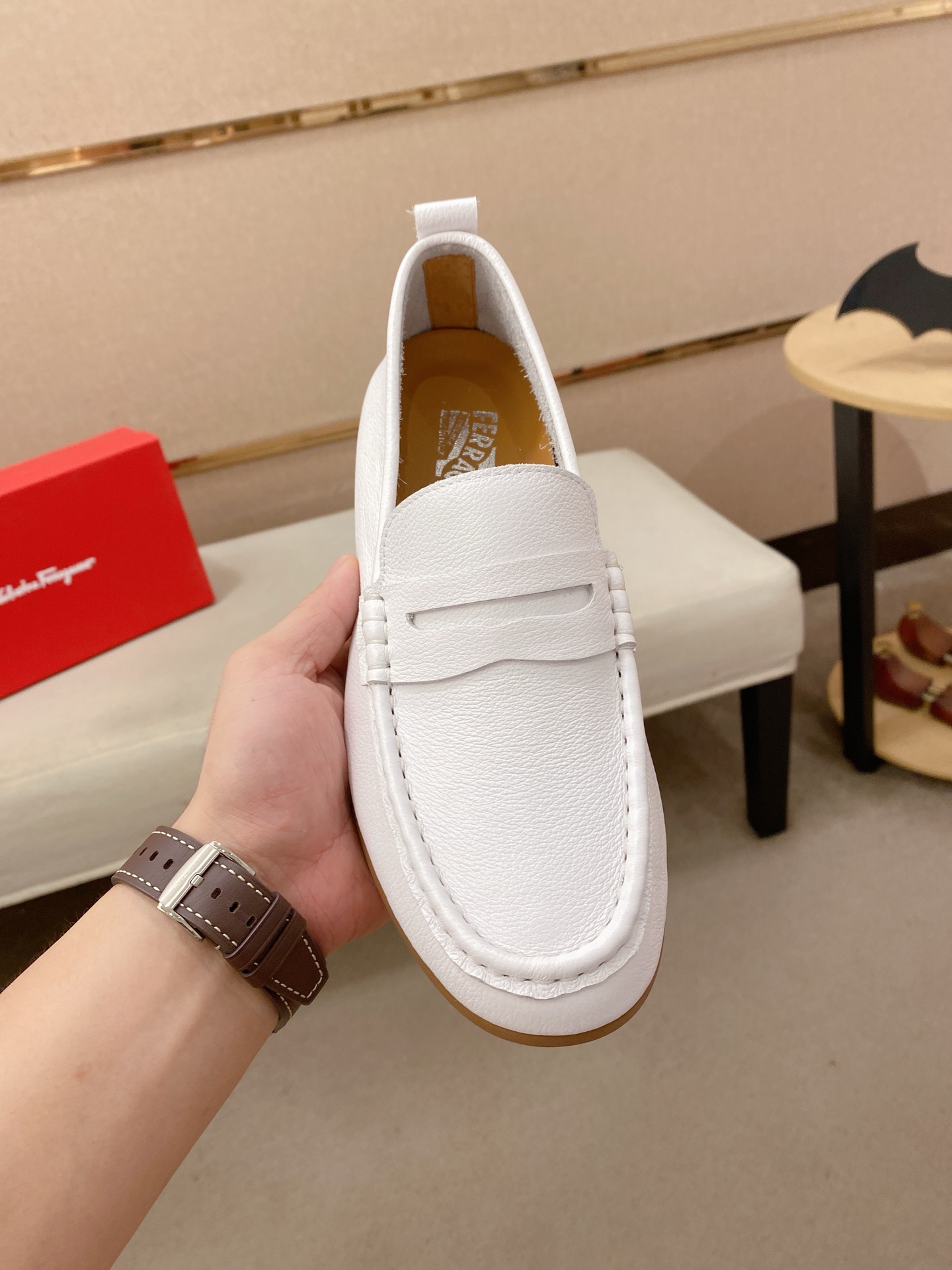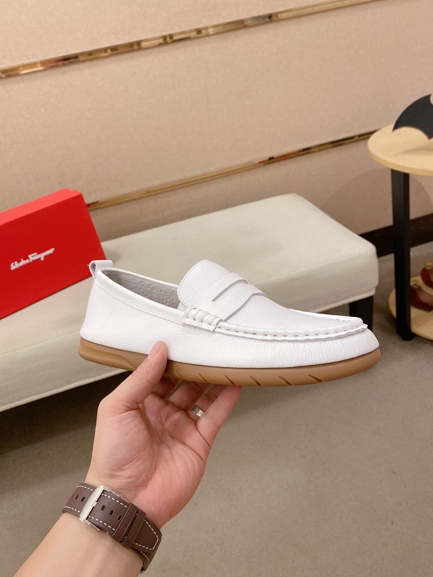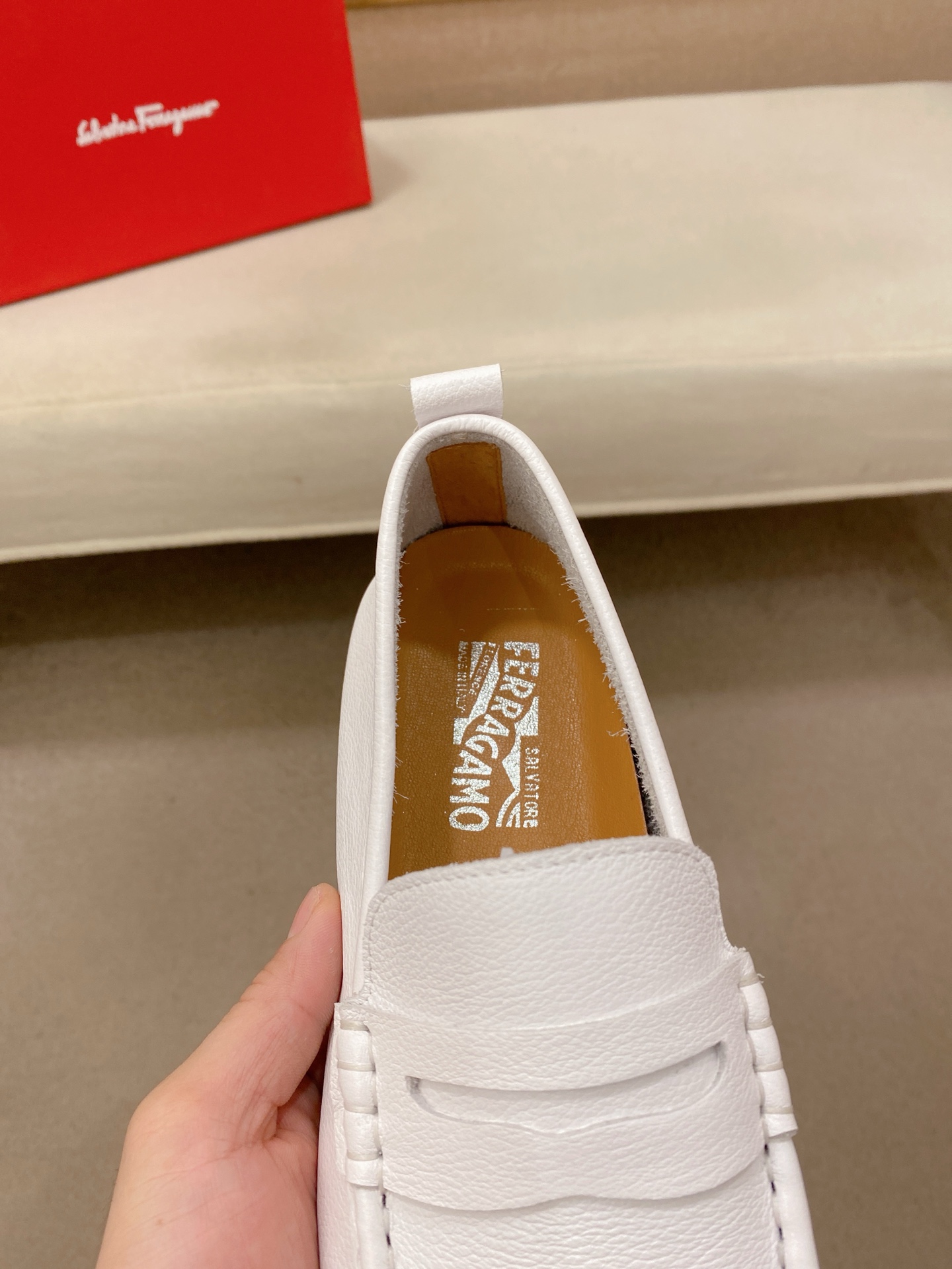 这款鞋子是AAAAA 1:1 质量 (非常棒). 使用了和原版一模一样的材料. 商标部分也保持了和菲拉格慕/Salvatore Ferragamo一样. 图片拍摄是实物鞋子拍摄, 您所收到的实物保证和我们图片一模一样.