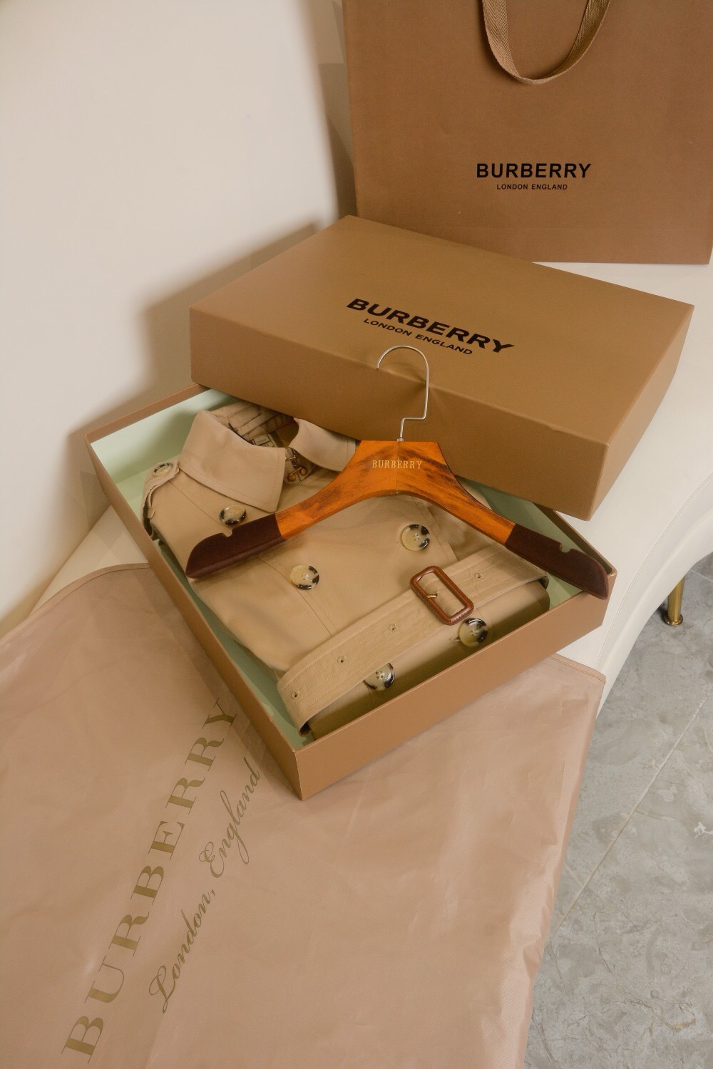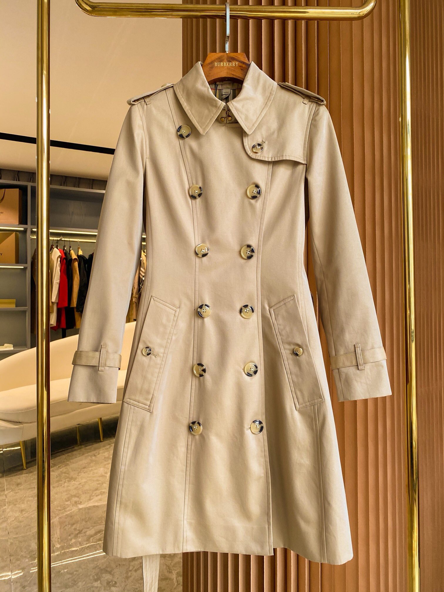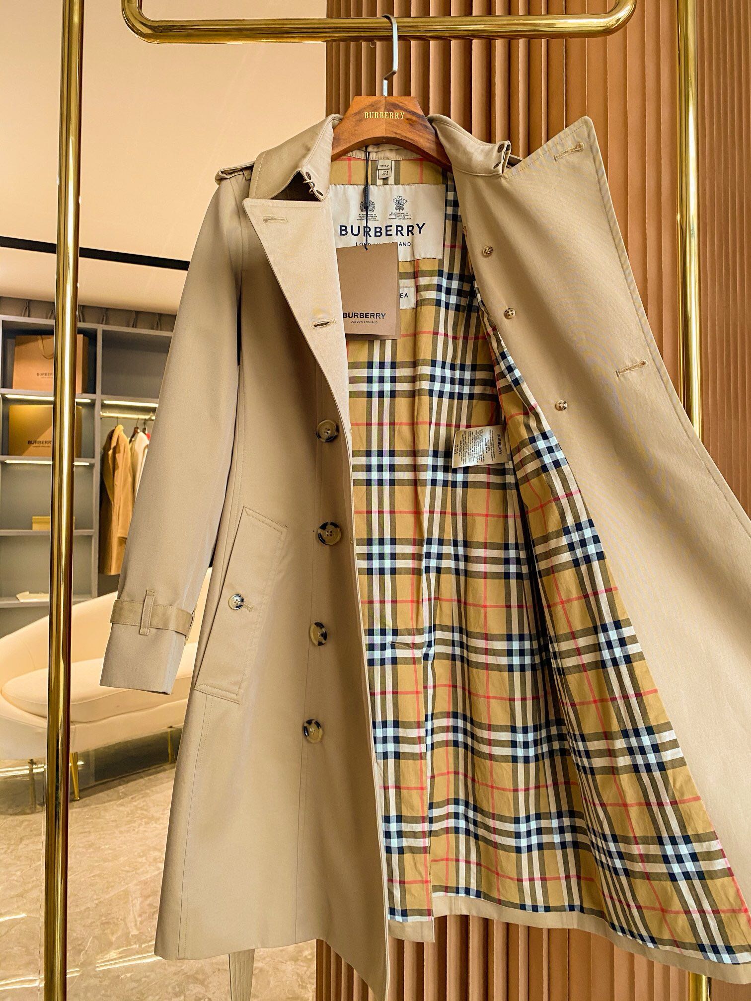 这款衣服是AAAAA 1:1 质量 (非常棒). 使用了和原版一模一样的材料. 商标部分也保持了和巴宝莉/Burberry一样. 图片拍摄是实物衣服拍摄, 您所收到的实物保证和我们图片一模一样.