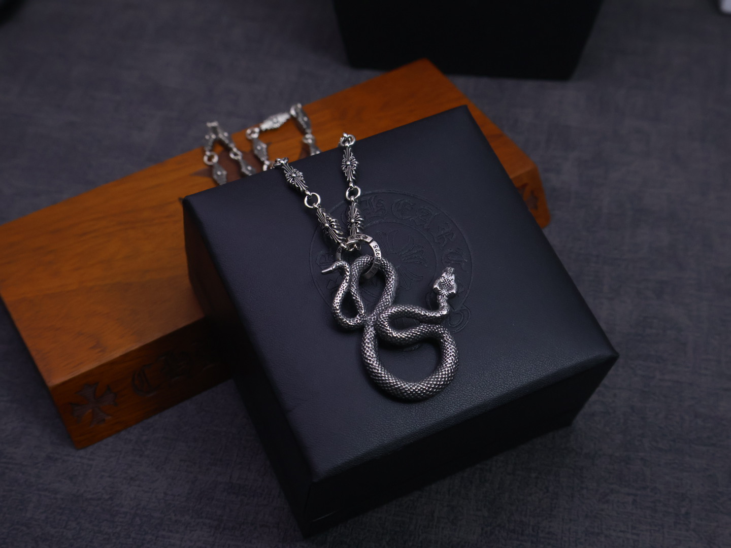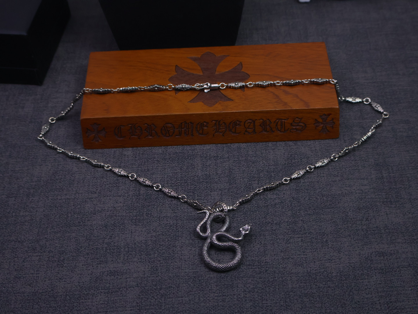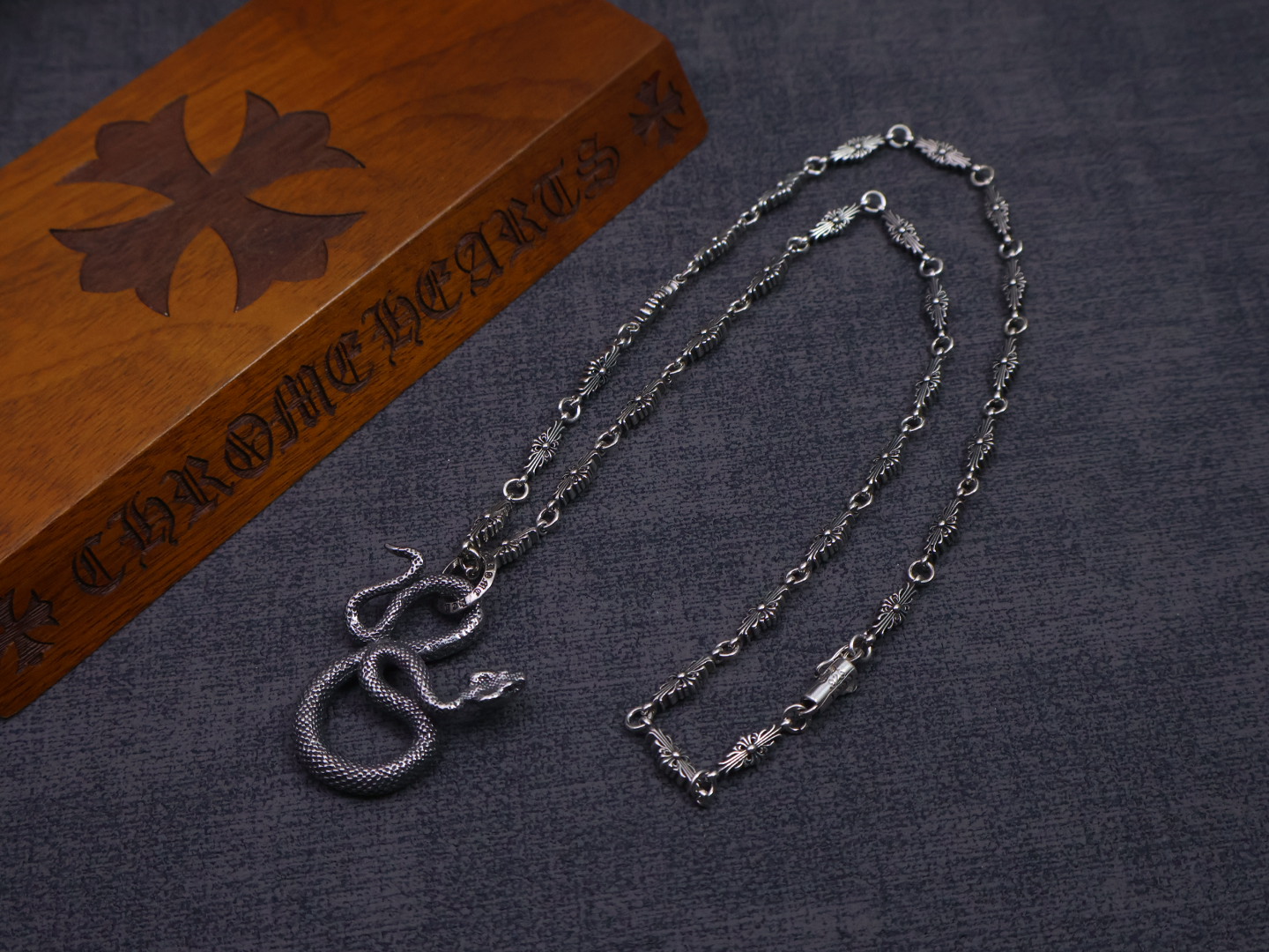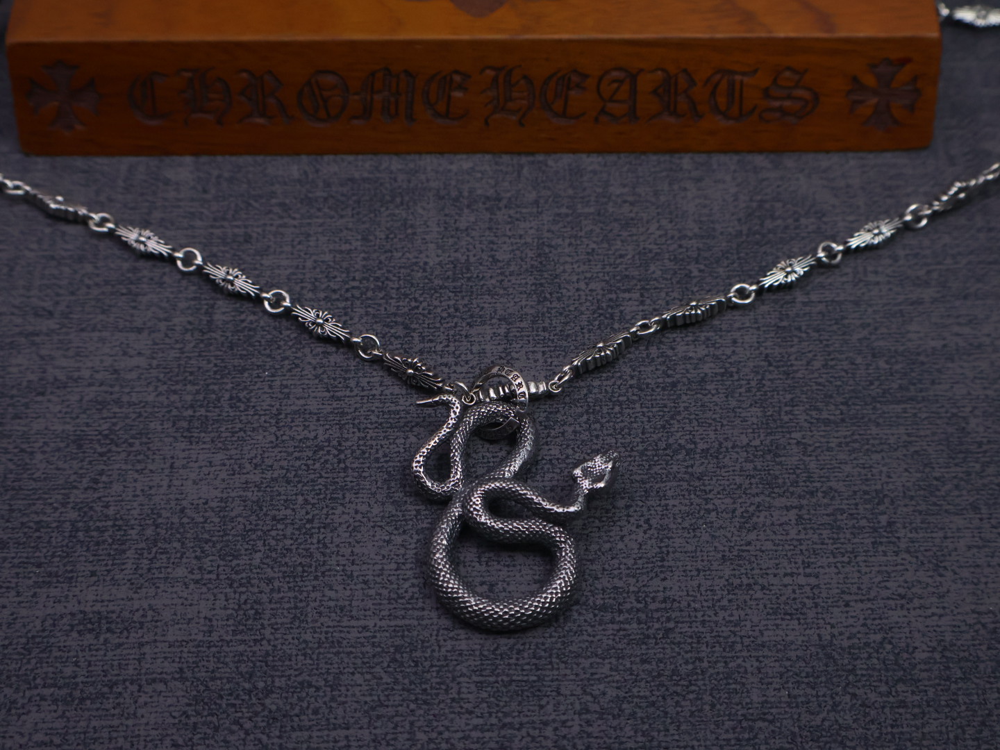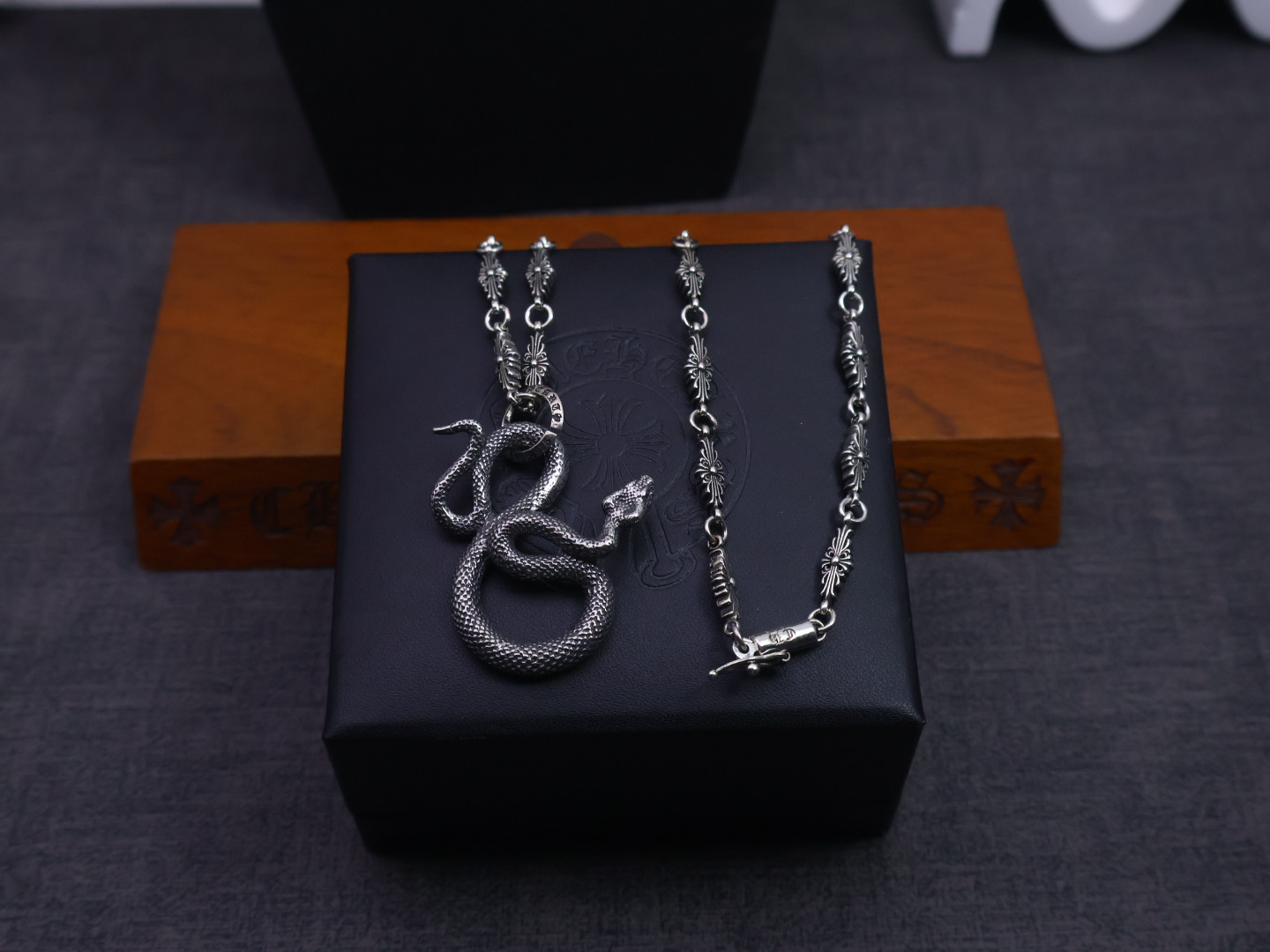 这款首饰是AAAAA 1:1 质量 (非常棒). 使用了和原版一模一样的材料. 商标部分也保持了和克罗心/Chrome Hearts一样. 图片拍摄是实物首饰拍摄, 您所收到的实物保证和我们图片一模一样.