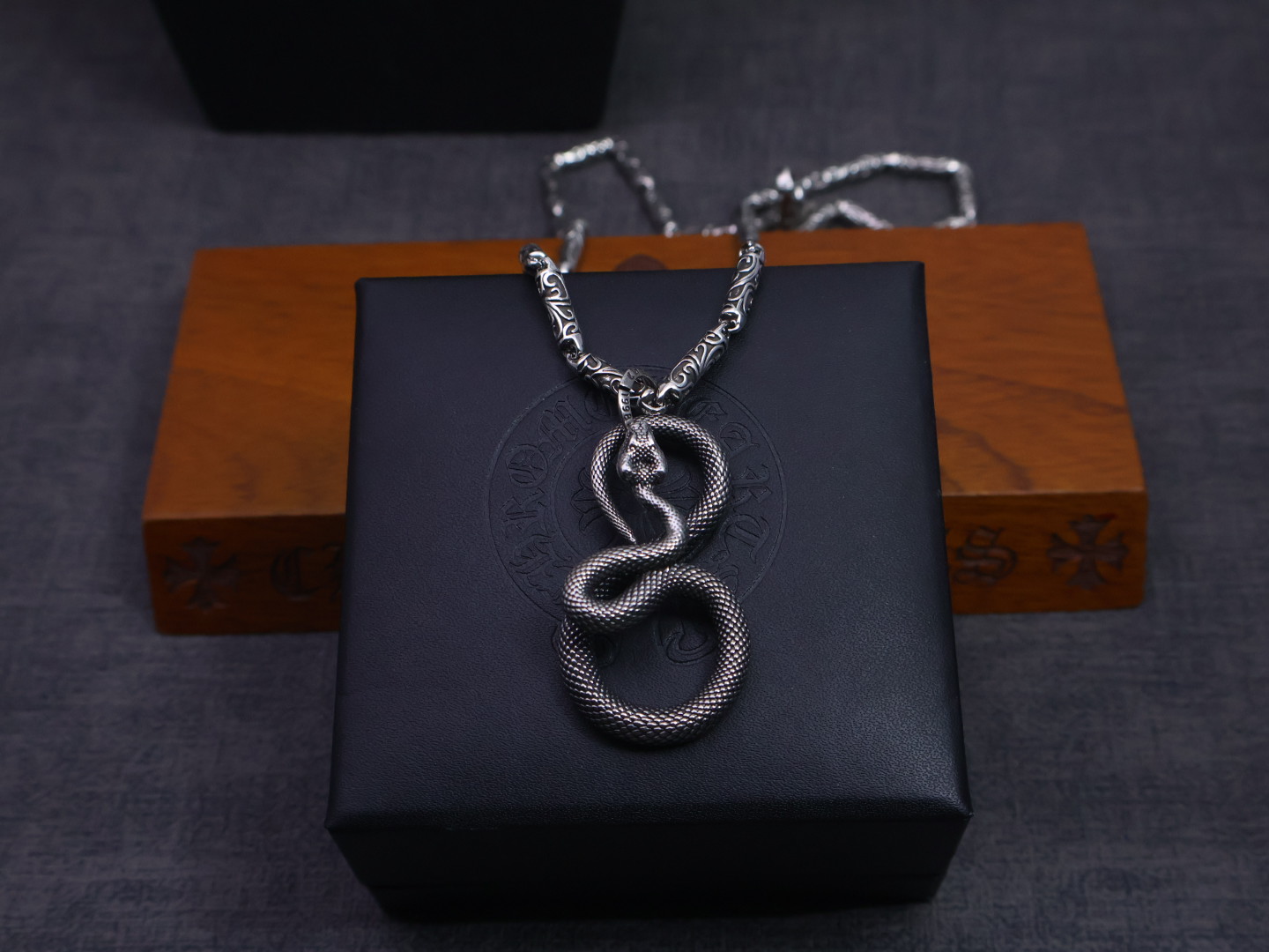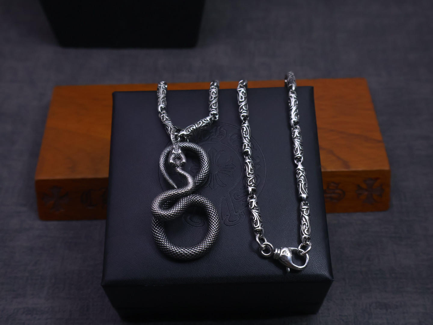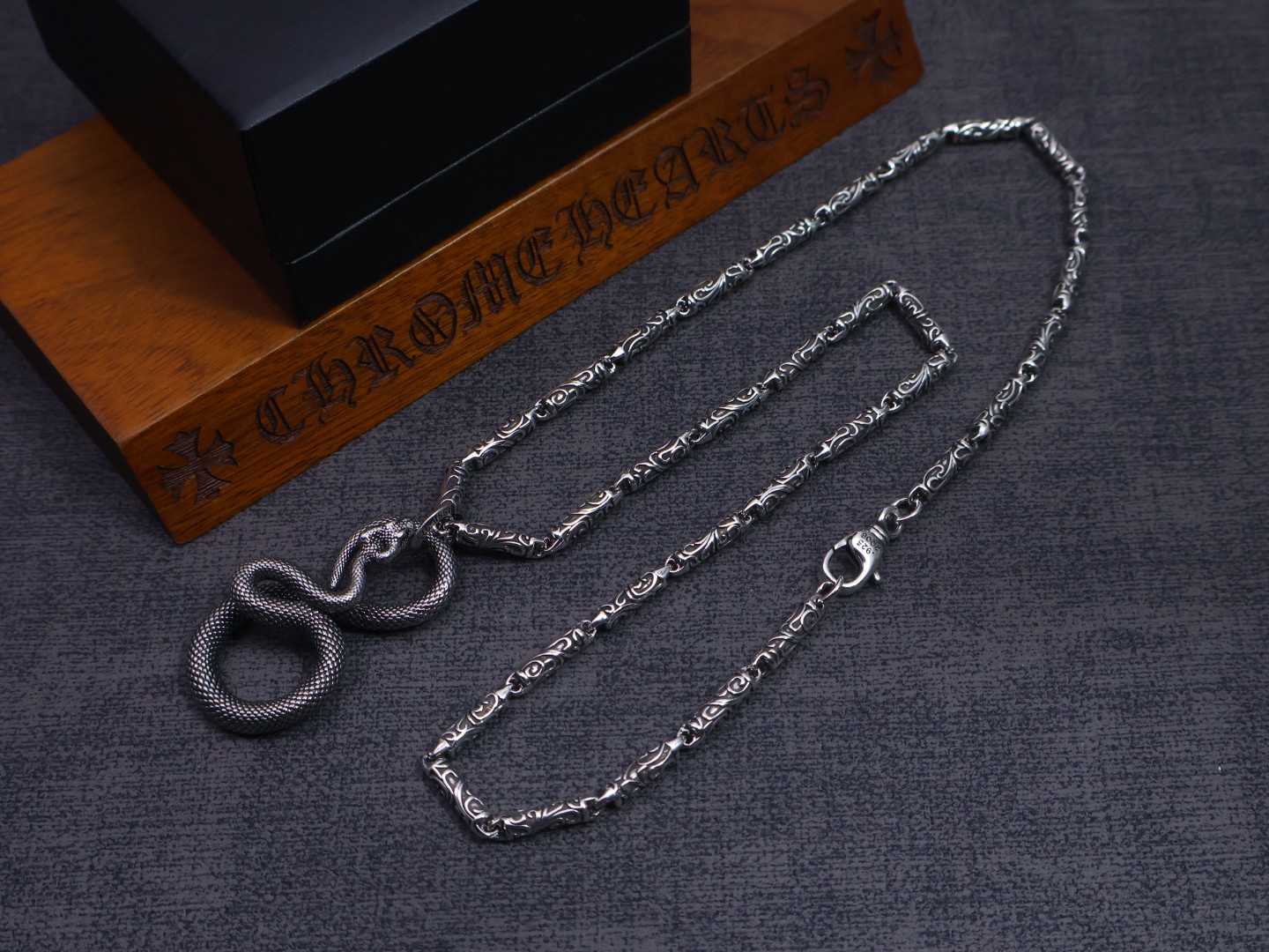 这款首饰是AAAAA 1:1 质量 (非常棒). 使用了和原版一模一样的材料. 商标部分也保持了和克罗心/Chrome Hearts一样. 图片拍摄是实物首饰拍摄, 您所收到的实物保证和我们图片一模一样.