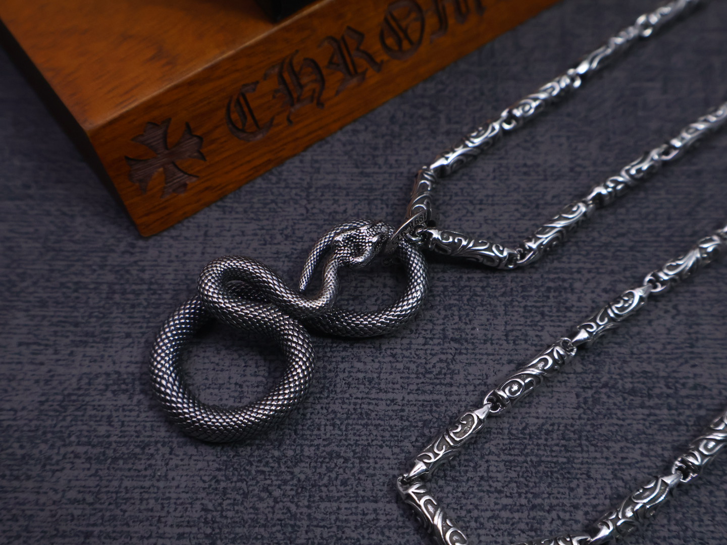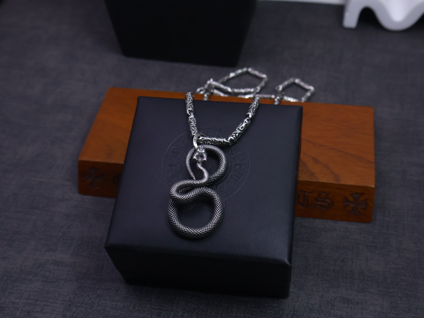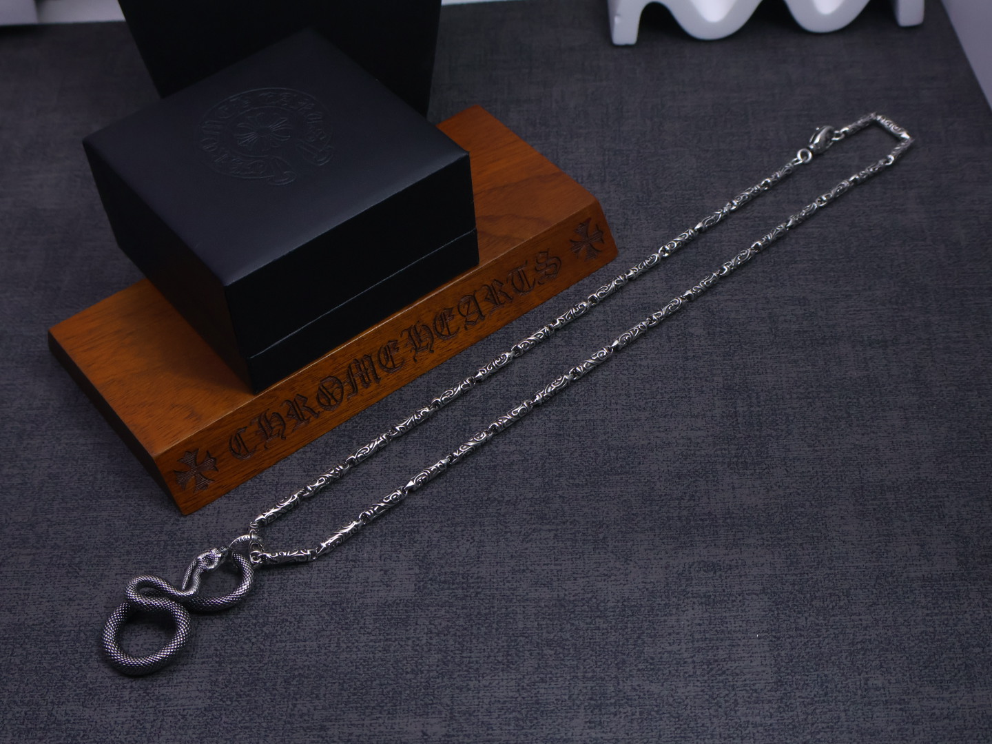 这款首饰是AAAAA 1:1 质量 (非常棒). 使用了和原版一模一样的材料. 商标部分也保持了和克罗心/Chrome Hearts一样. 图片拍摄是实物首饰拍摄, 您所收到的实物保证和我们图片一模一样.